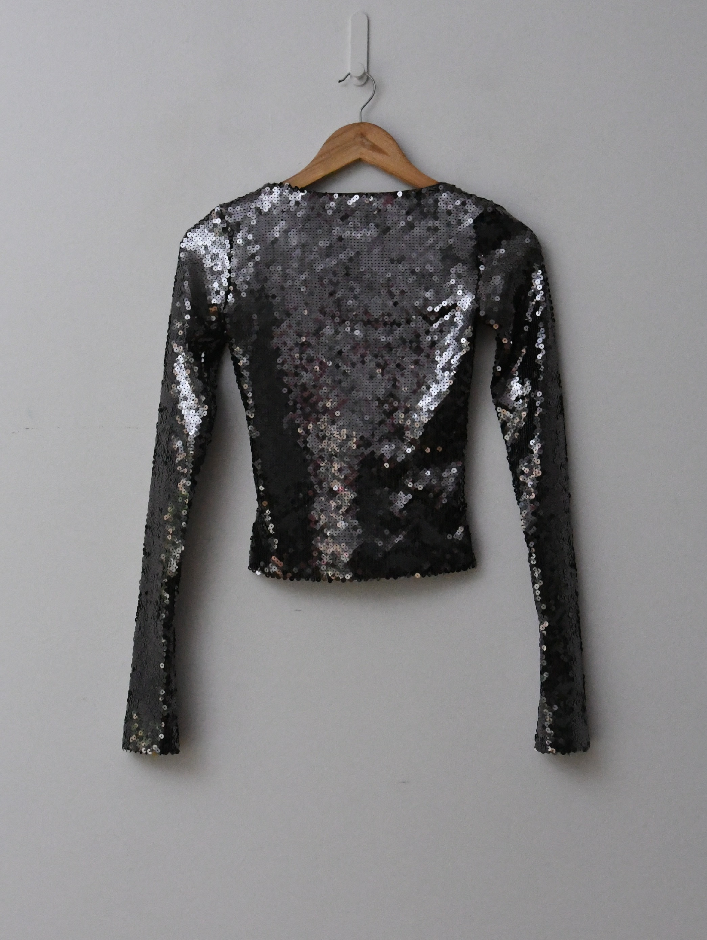 Ray Solare Long Sleeve T-Shirt.Sequinned polyester mesh T-shirt.Boat neck. Cord-lock drawstring at keyhole cutout. Vented cuffs.