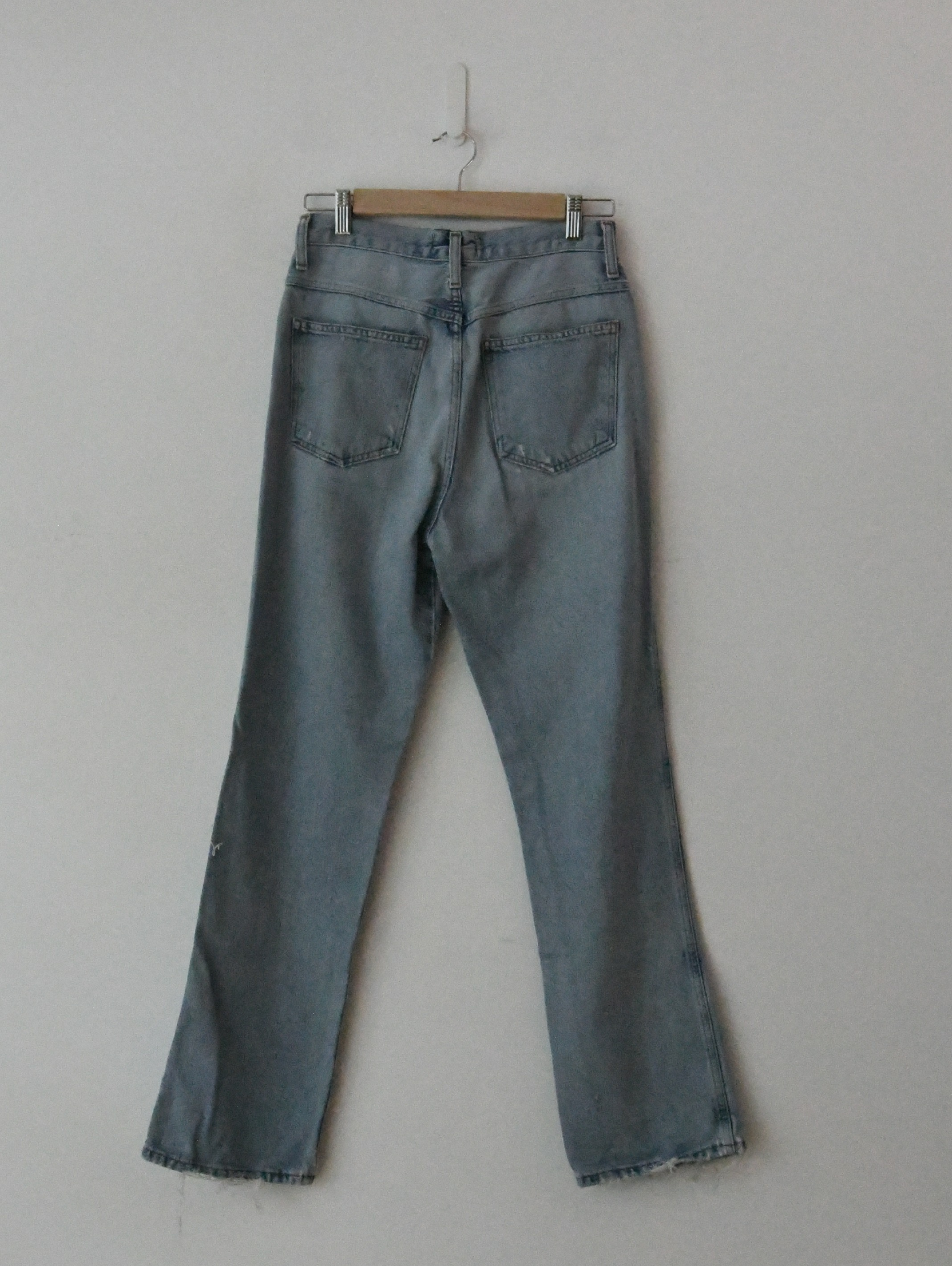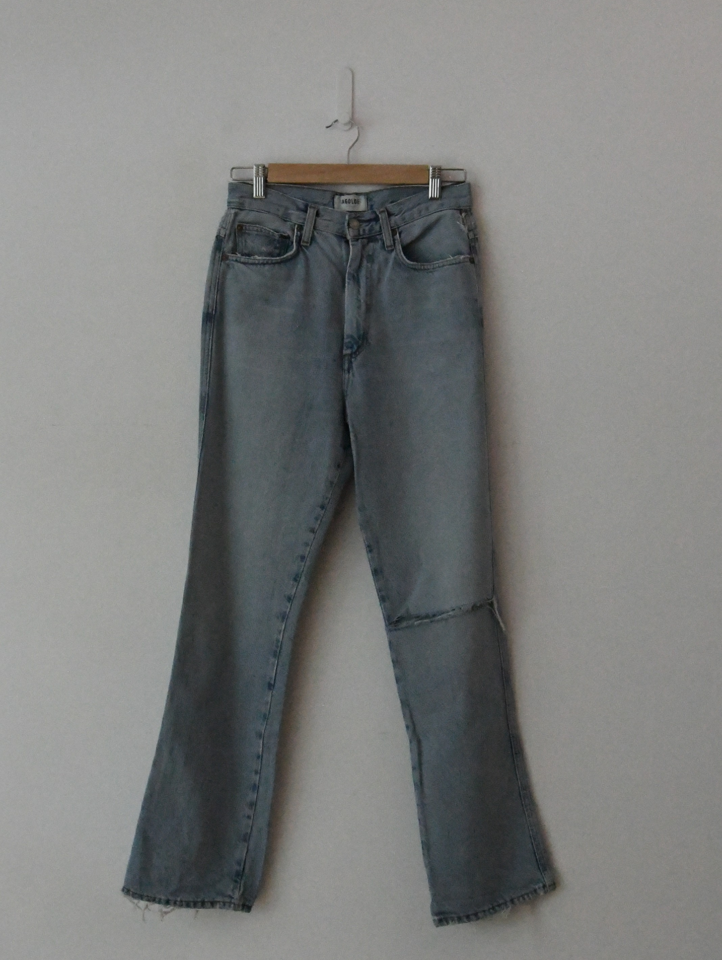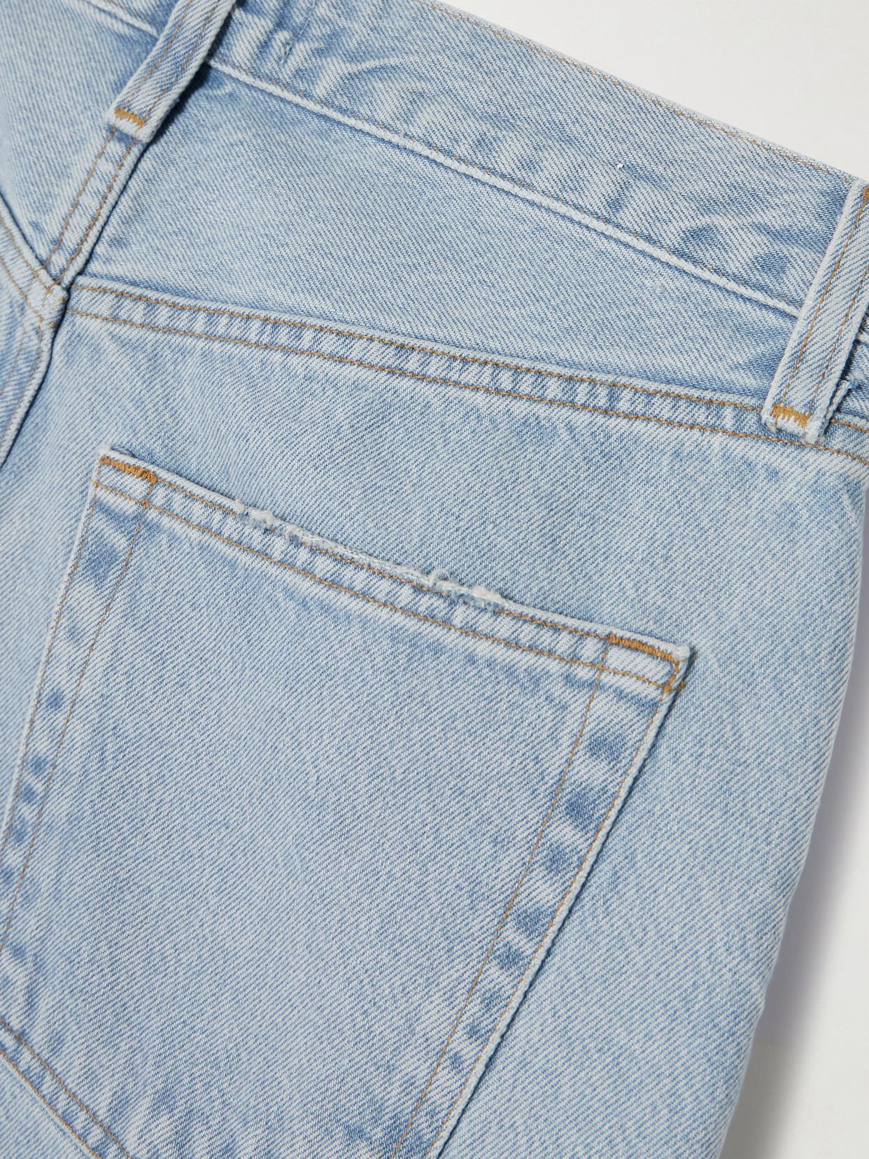 From the specific fit to the strategic fading and distressing, AGOLDE's 'Kelly' jeans are meant to look like a lived-in vintage favorite. They're cut from denim that appears authentically whiskered and have a high-rise waist and straight legs. Light-blue denim.