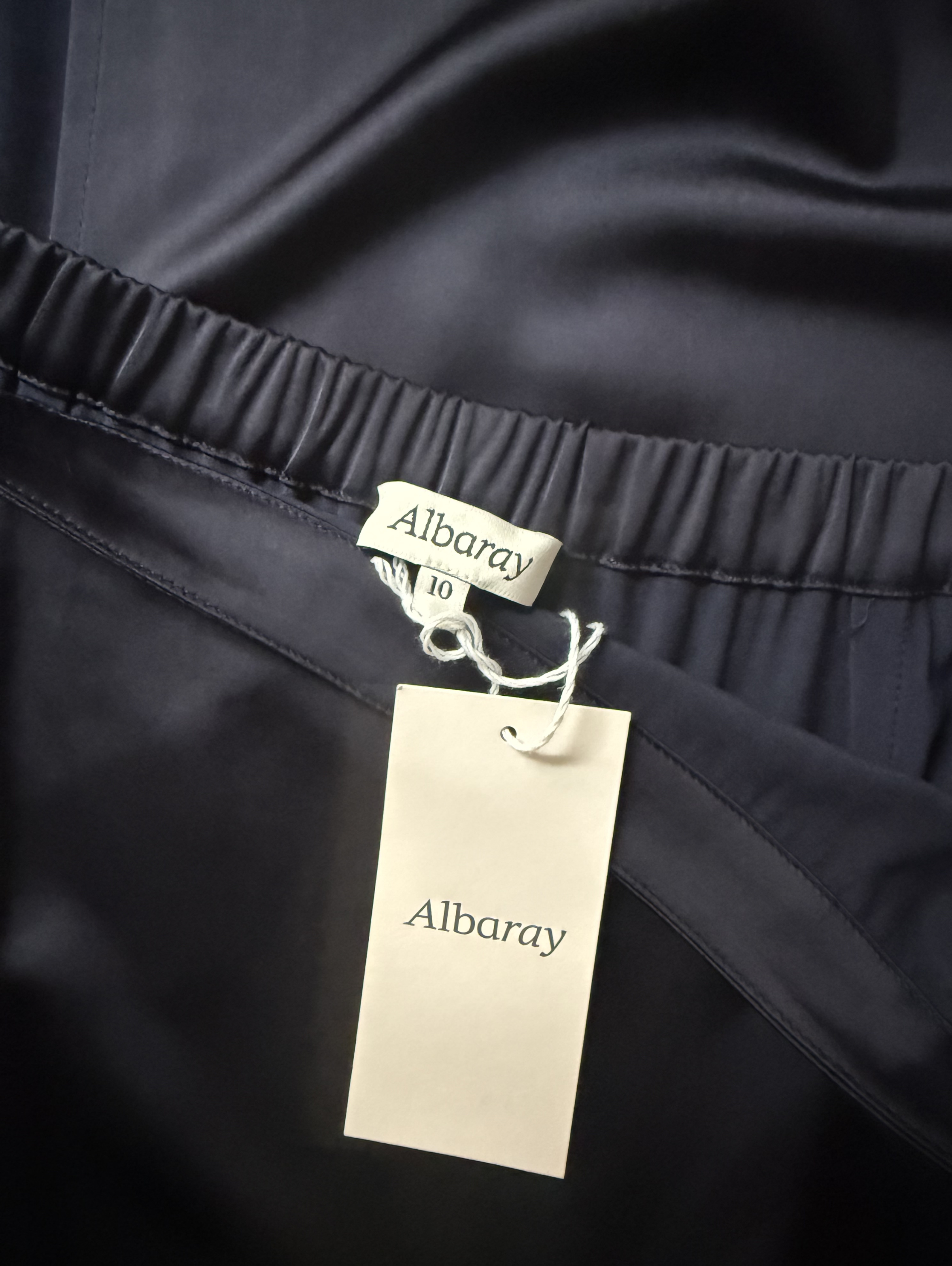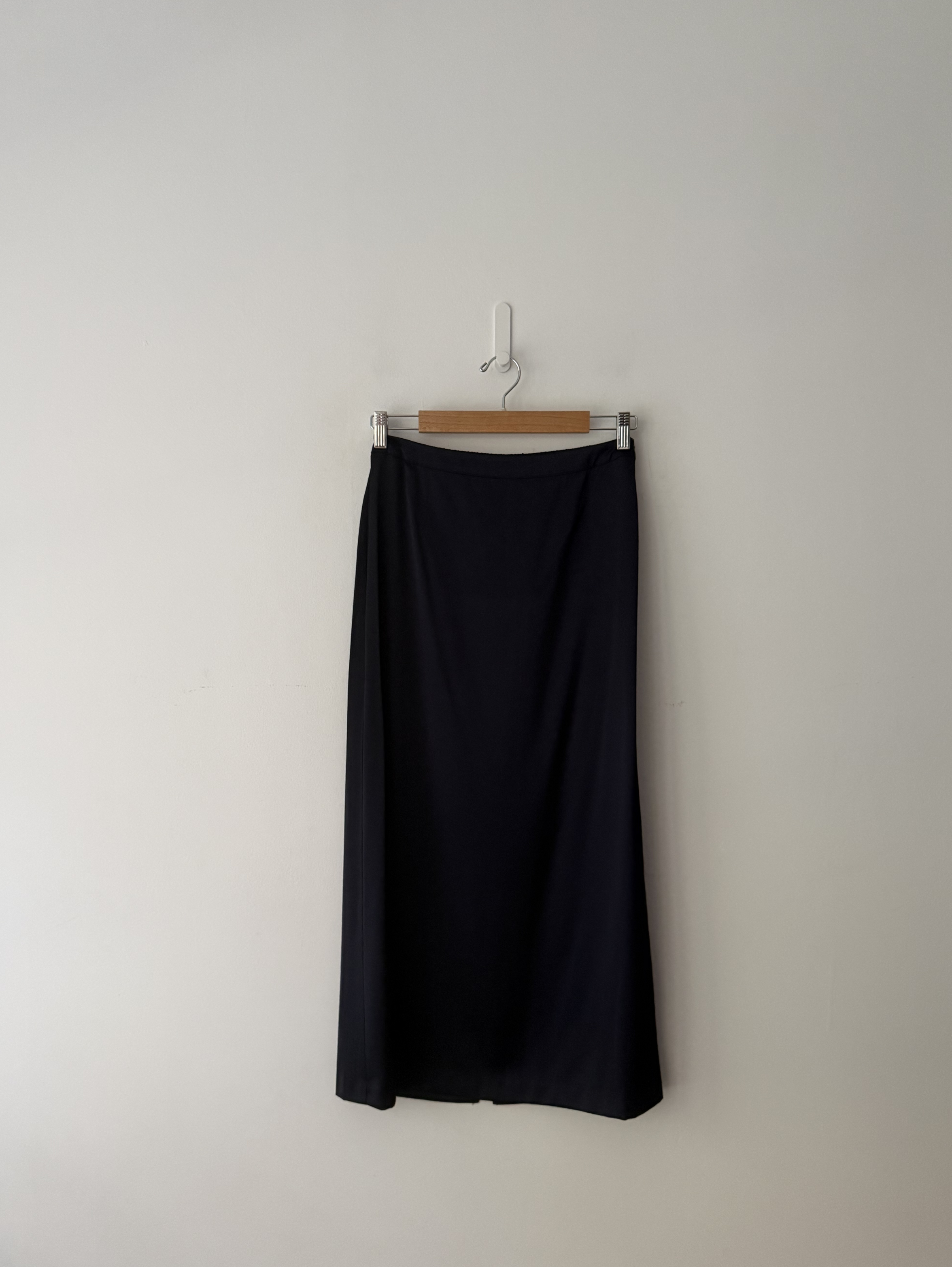 Elevate your style with our Navy Satin Skirt. Made with a sleek pencil silhouette and luxurious satin material, this skirt is perfect for any occasion. Dress it up with our waistcoat or keep it casual with a jersey vest. Versatile and chic, this skirt is a must-have for your wardrobe.