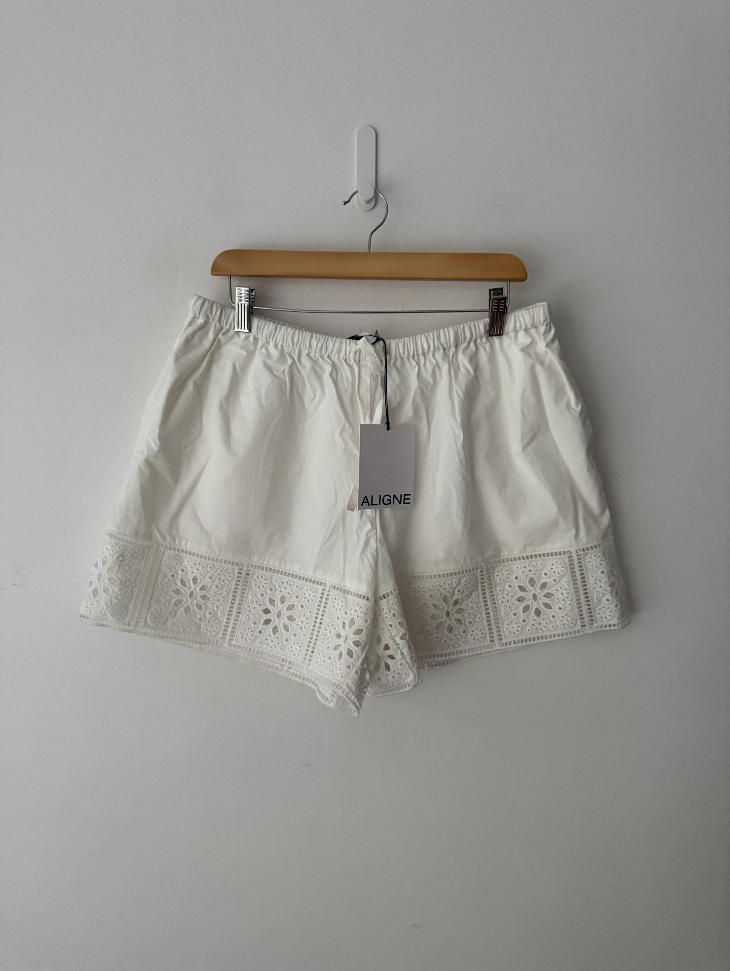 The Chelsea broderie eyelet shorts with a delicate cutwork-detailed hem.