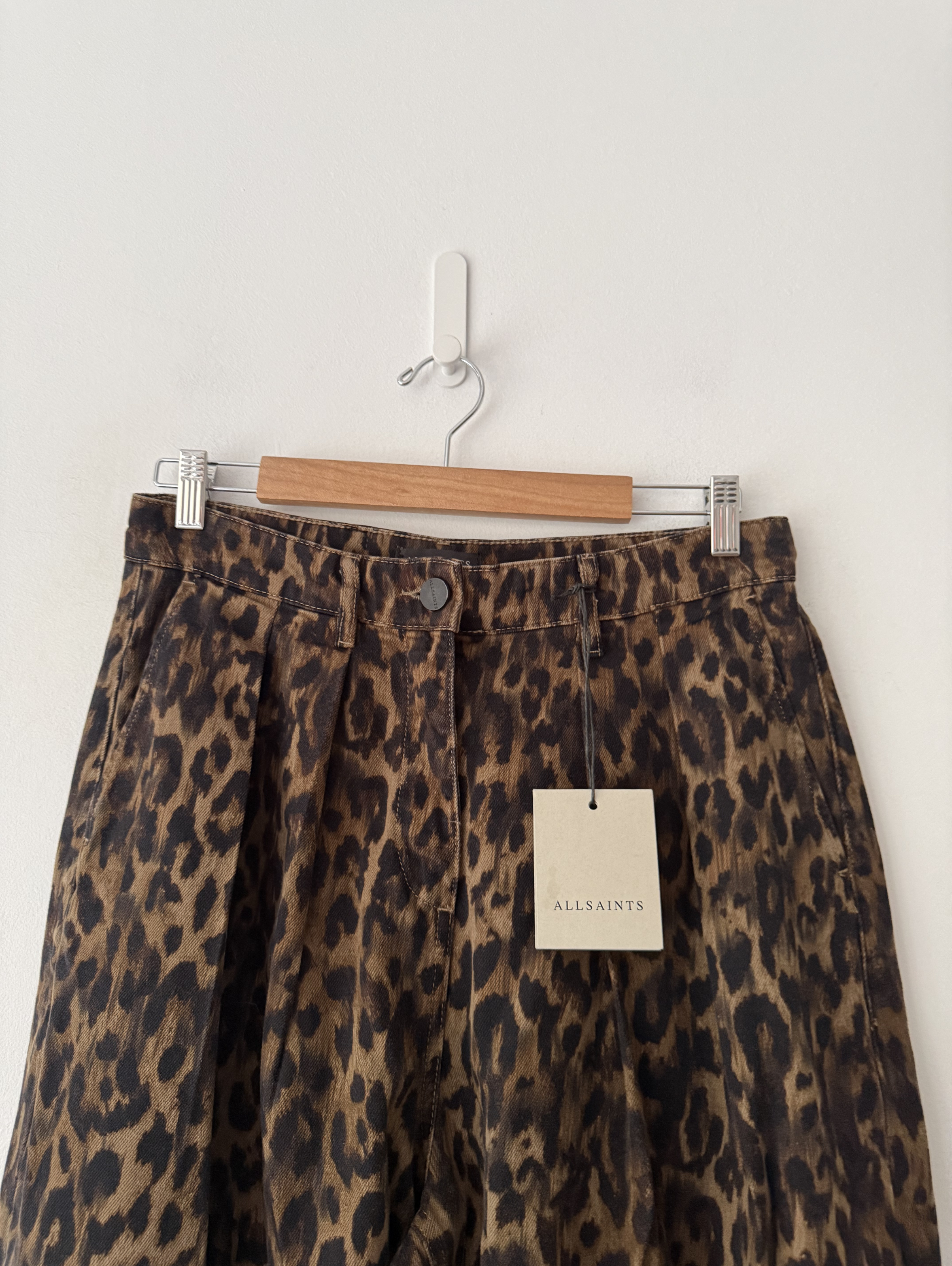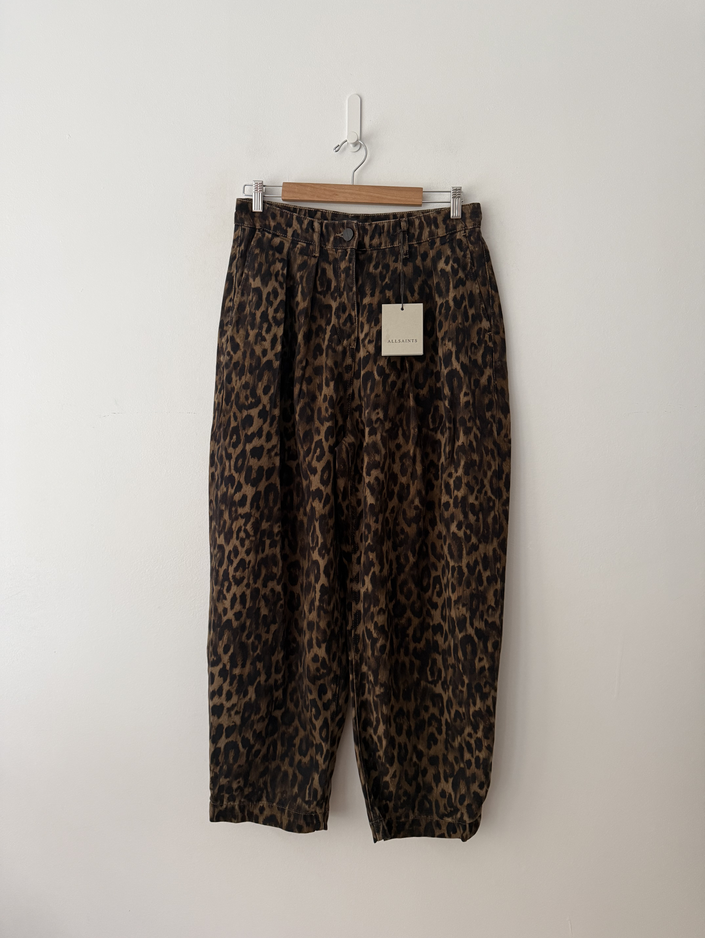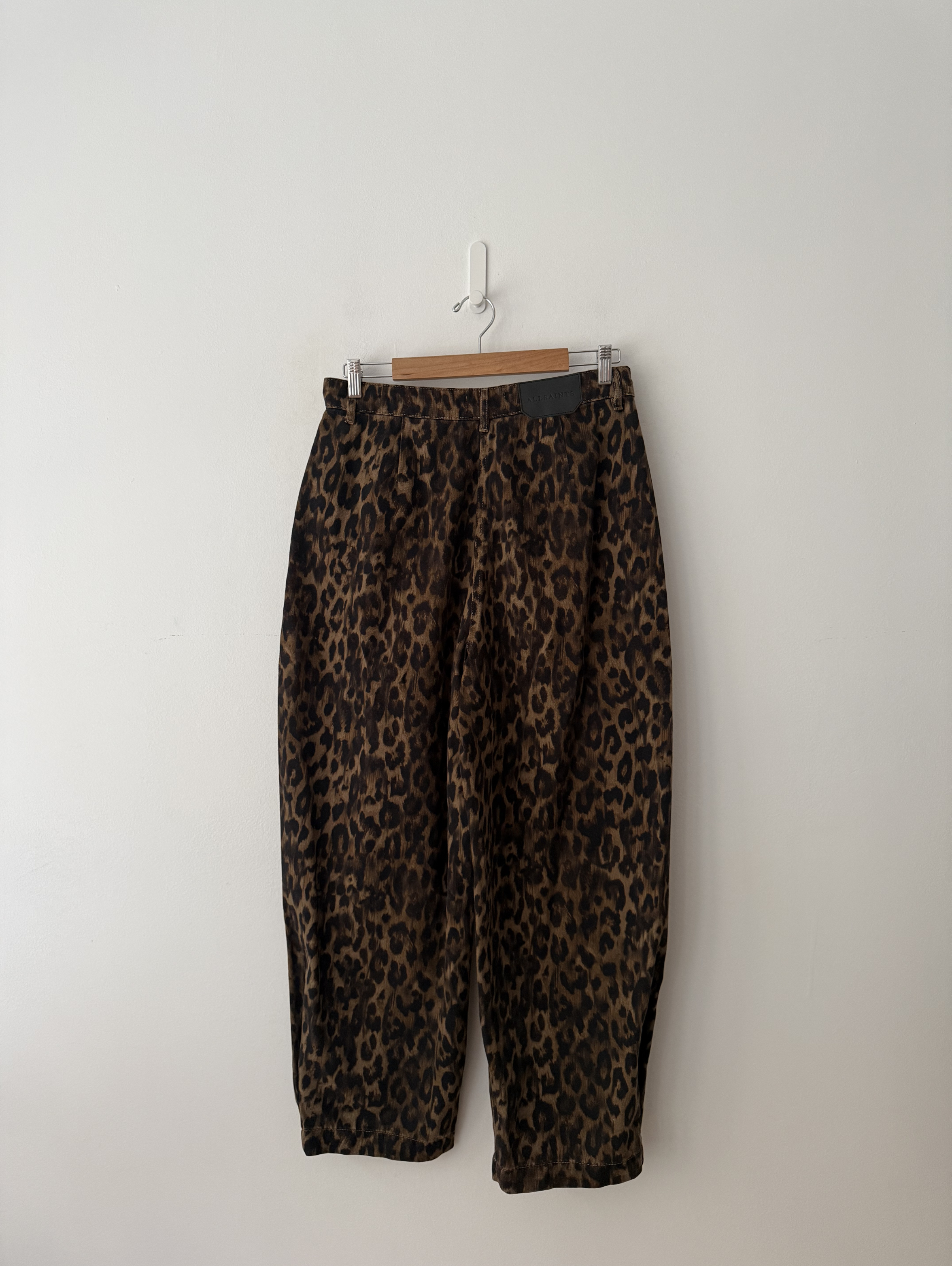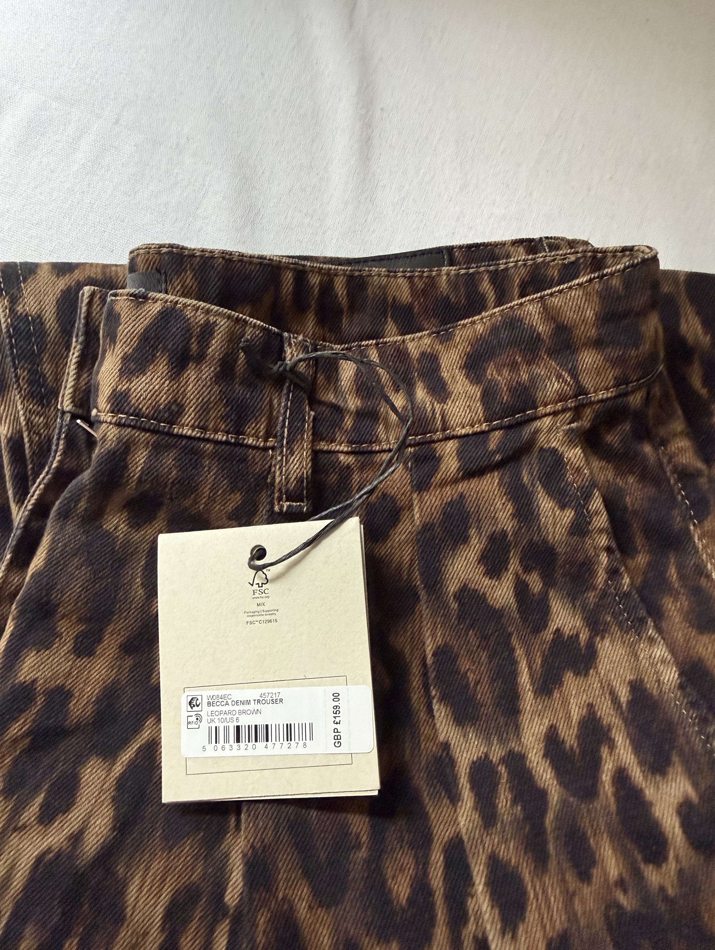 Becca Denim Leopard Print Wide-Legged Trousers.