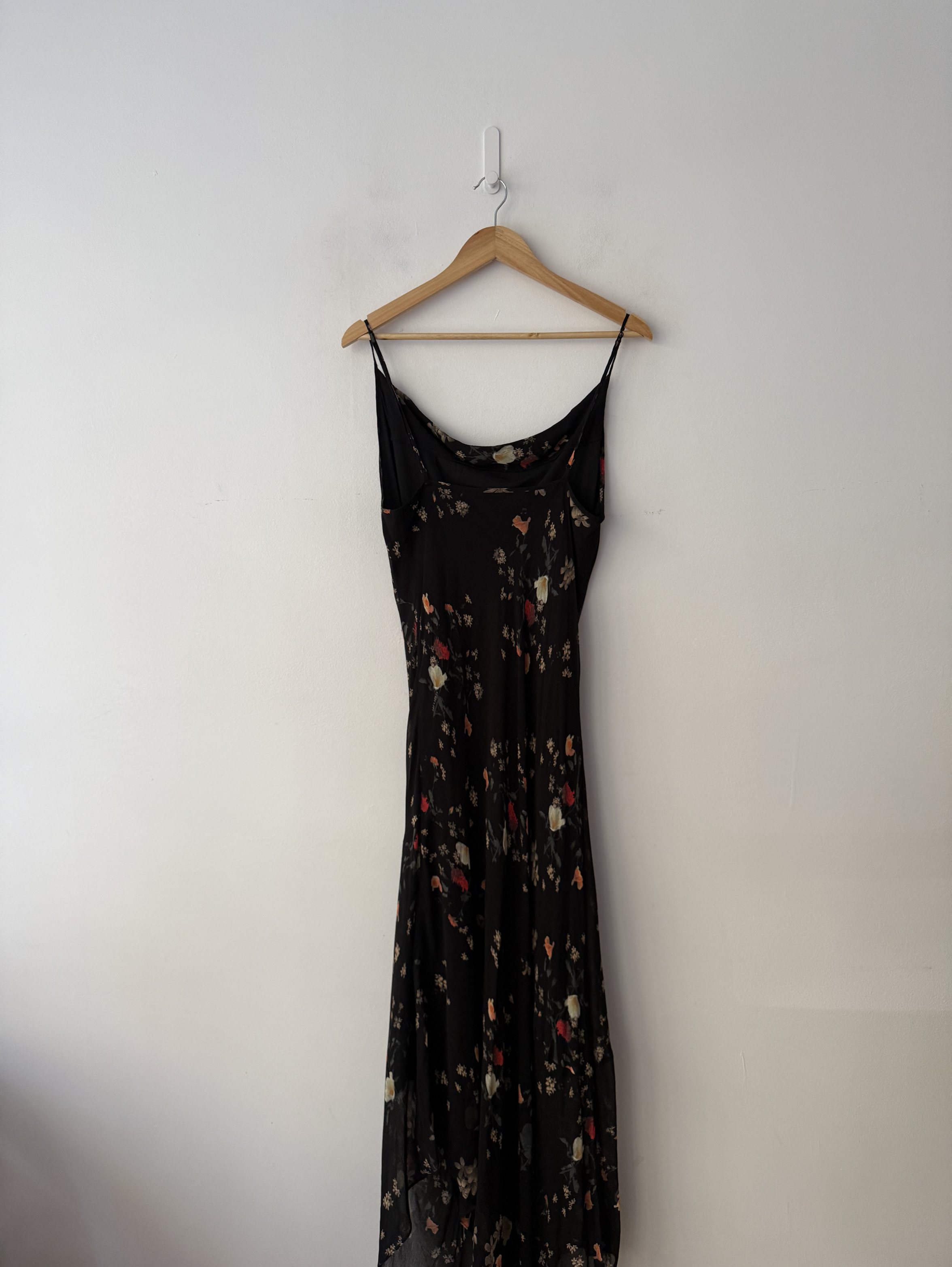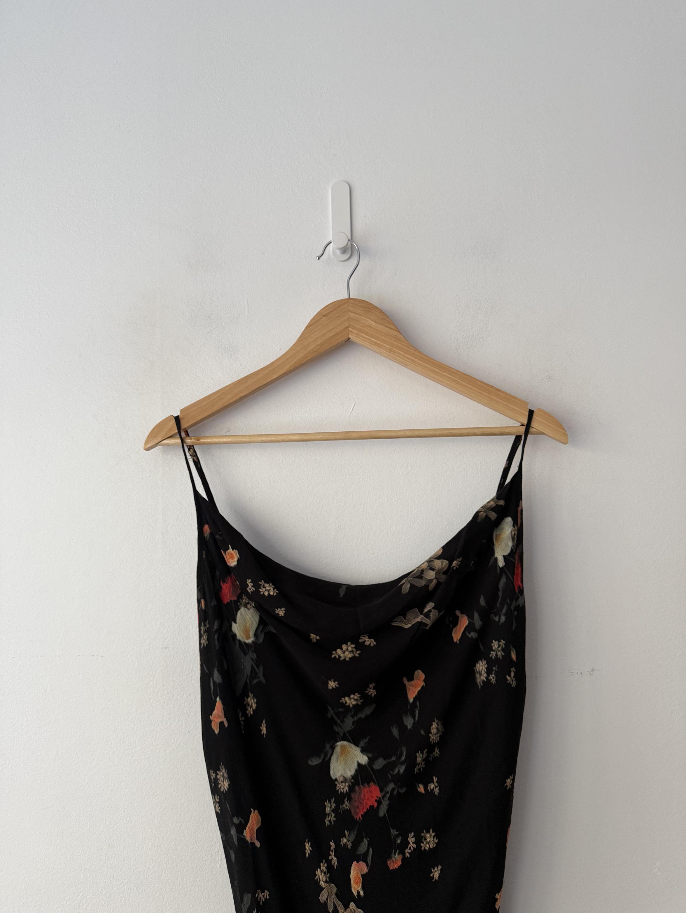 Charlotte Kora, Black Floral, Spaghetti Strap Midi Dress.