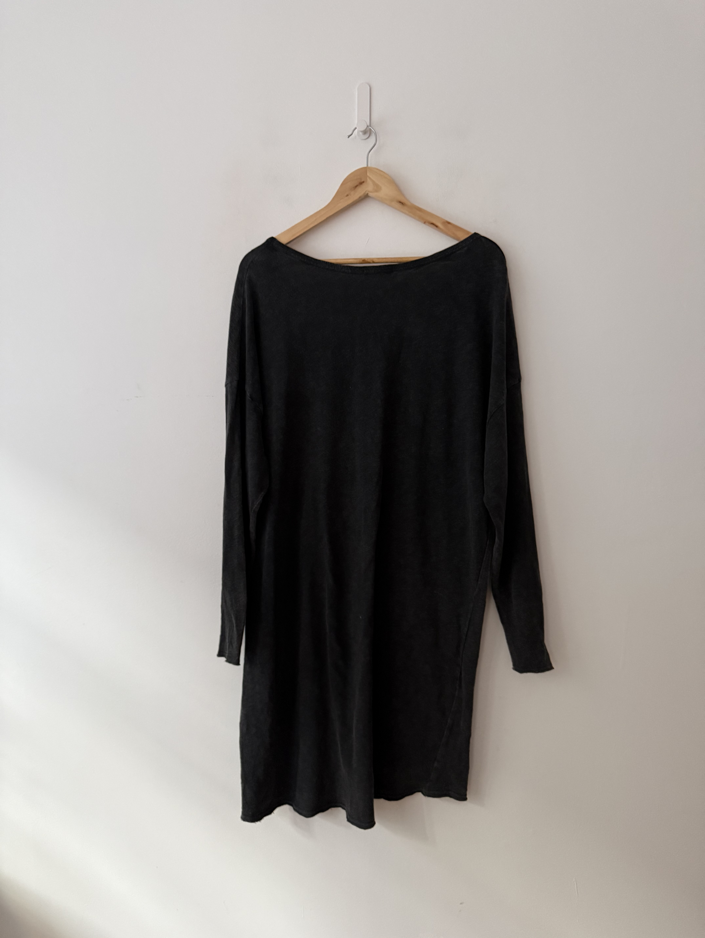 Black wash, oversized long sleeve t-shirt dress.