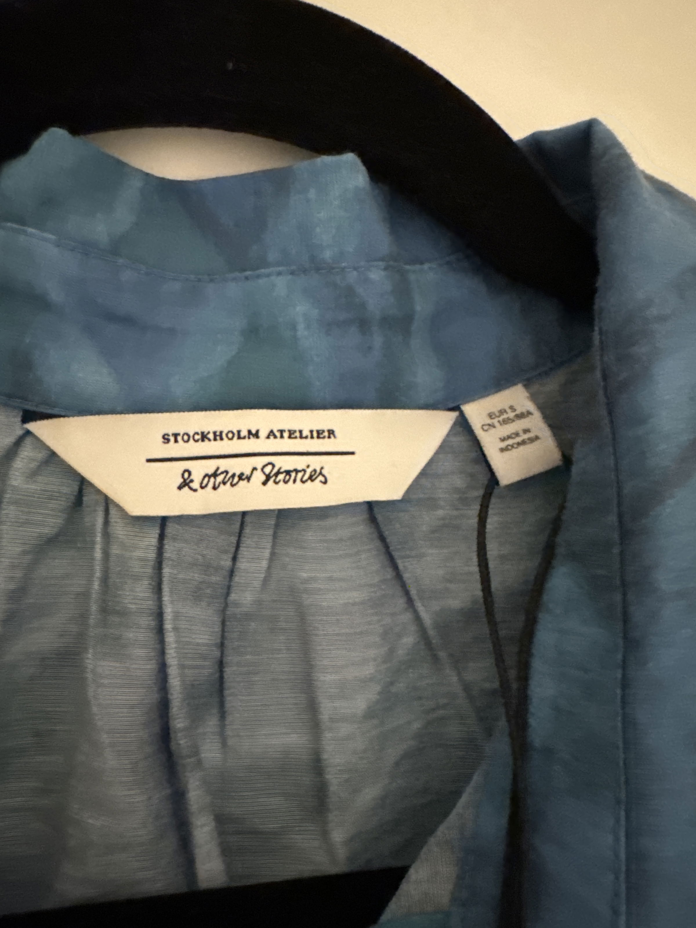 &other stories short sleeve oversized shirt dress. Measurements: Armpit to armpit - 54 cm. Shoulder to shoulder - 43 cm. Length - 123cm. Shipped via Royal Mail 48h tracked delivery with signature.