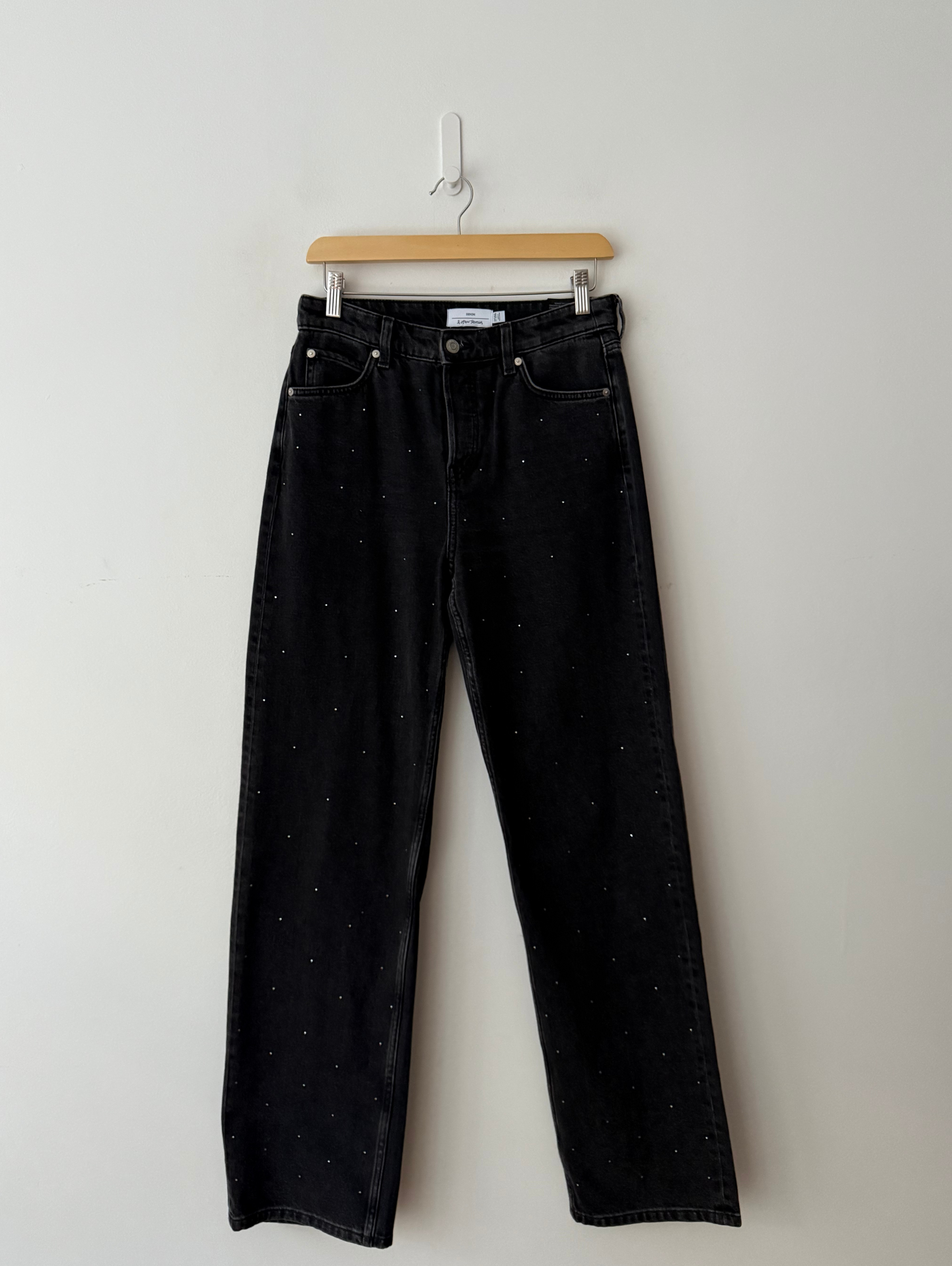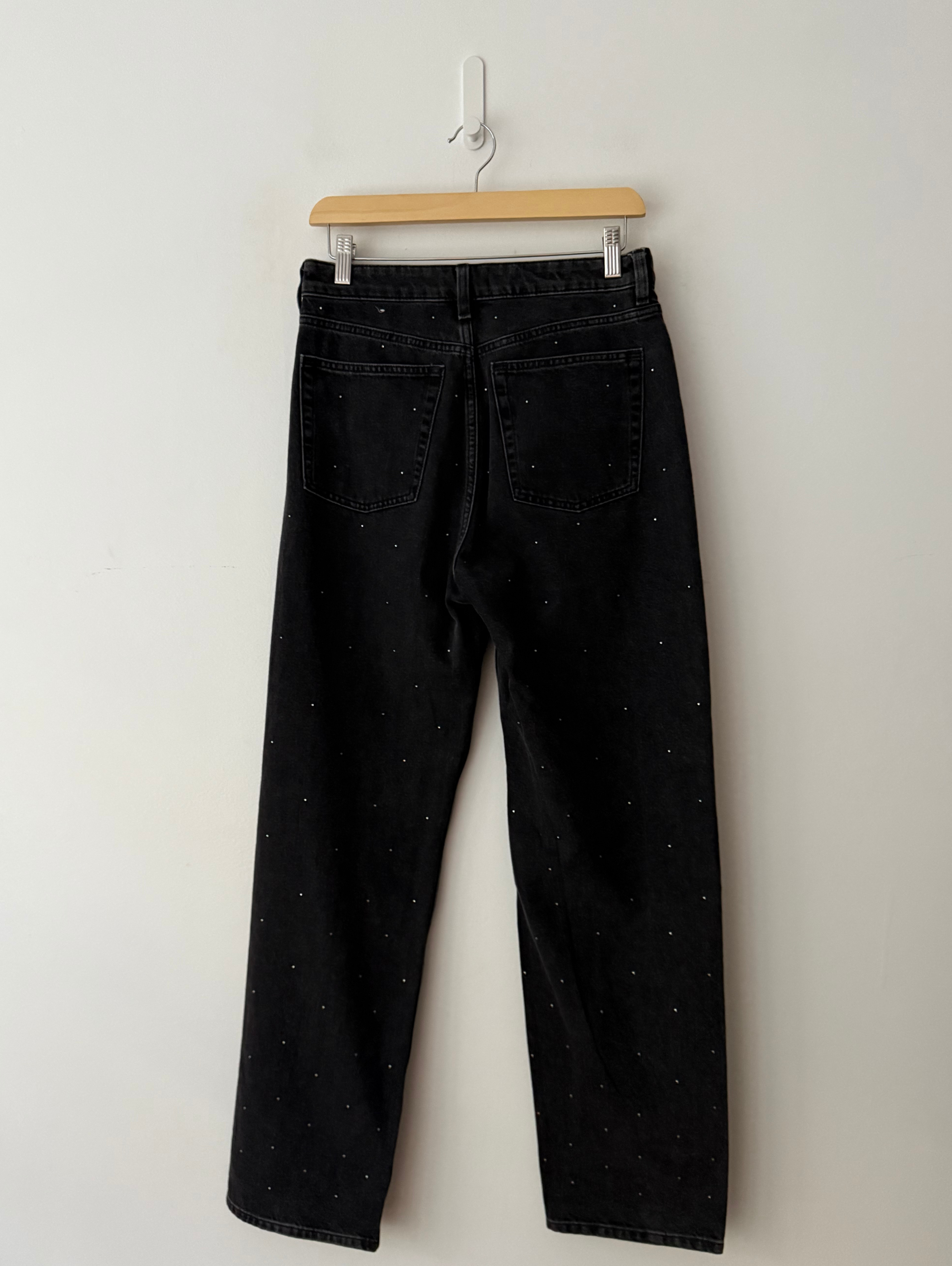 Faded black, low waist, straight leg, washed black diamante jeans in perfect, never worn condition. Composition: 100% cotton.