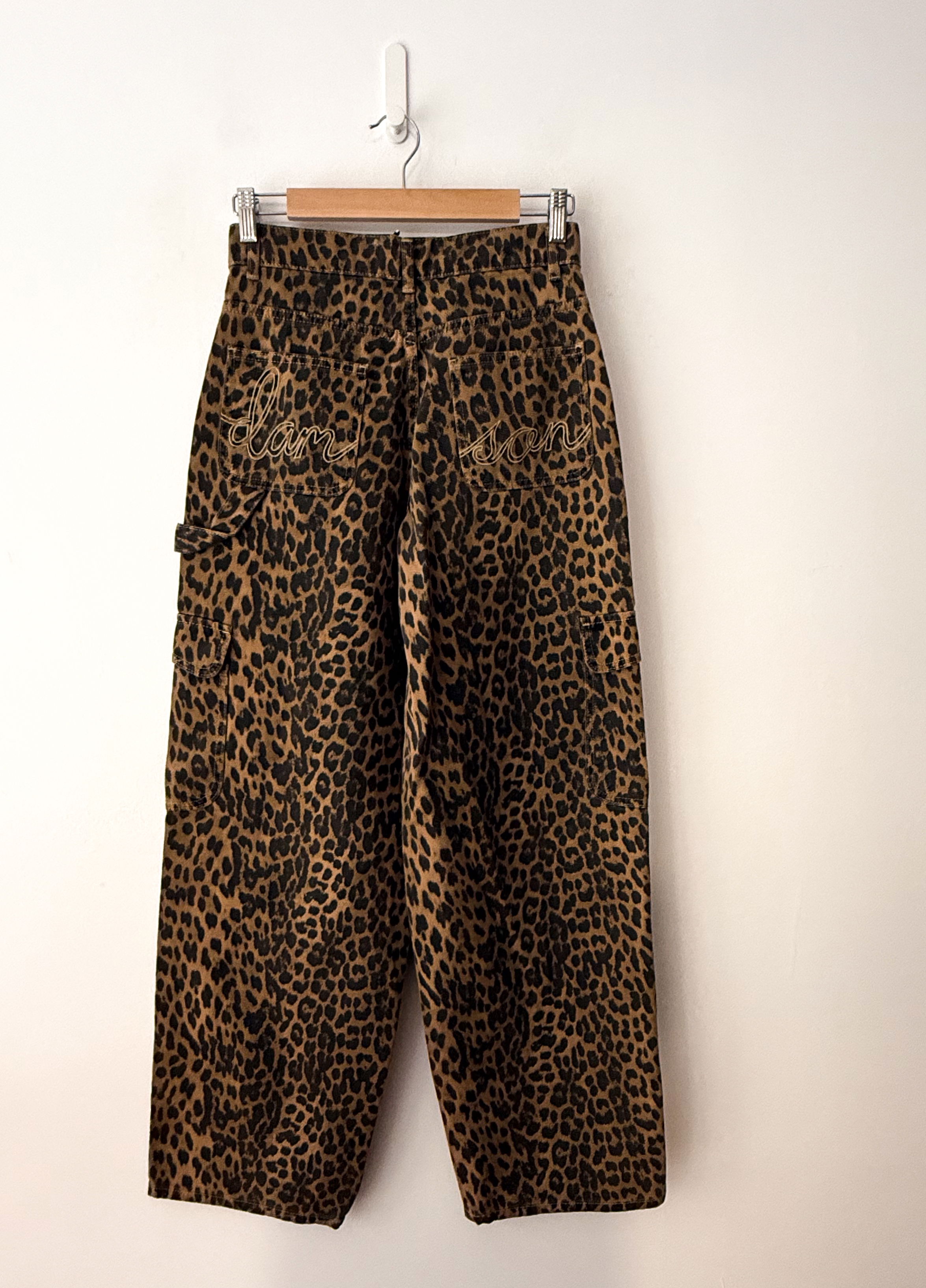 Our Leopard denim cargo jeans feature an all over leopard print design. These high rise cargos also have a classic cargo fit, cargo pockets with wave top and "Damson" embroidered back pocket detail.