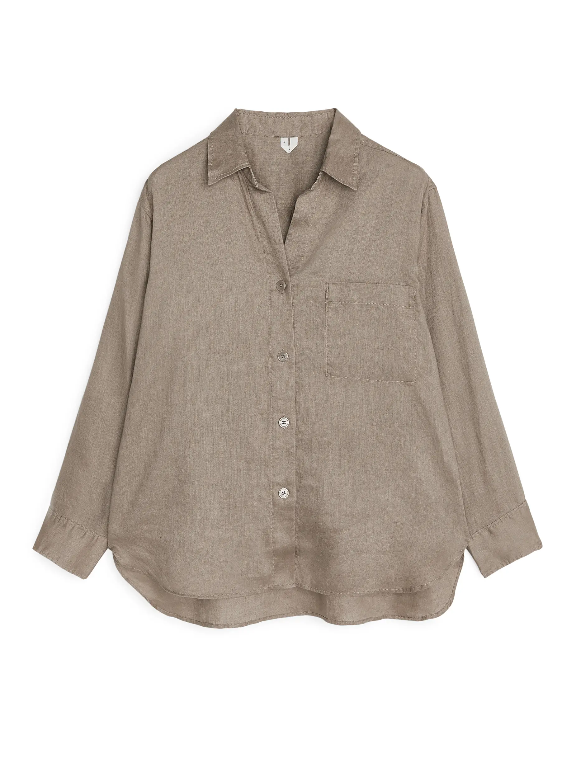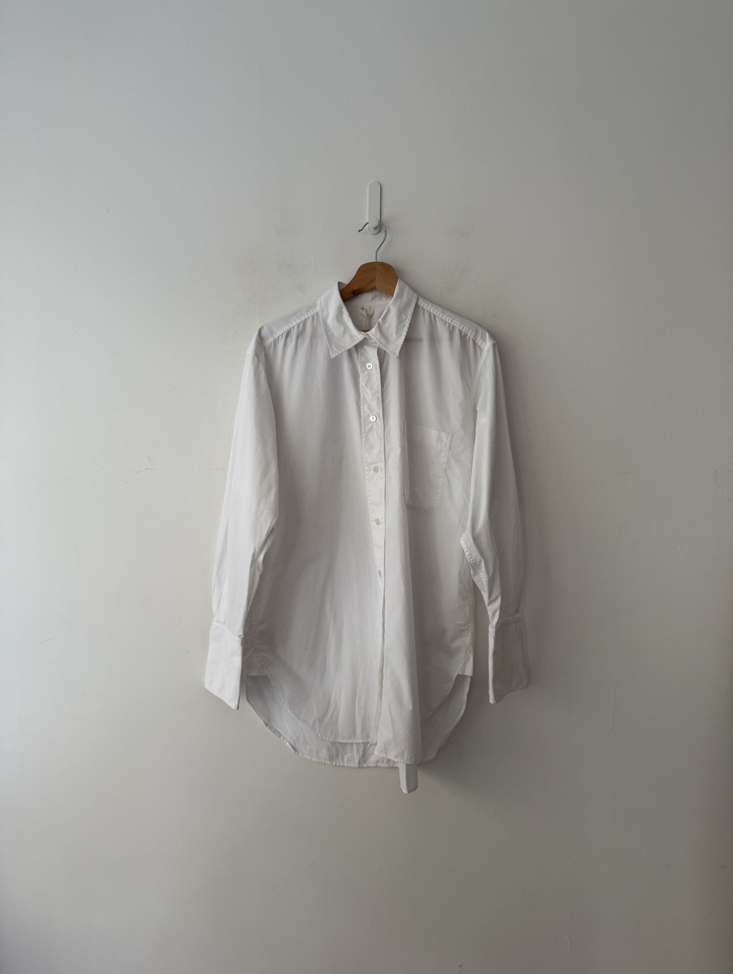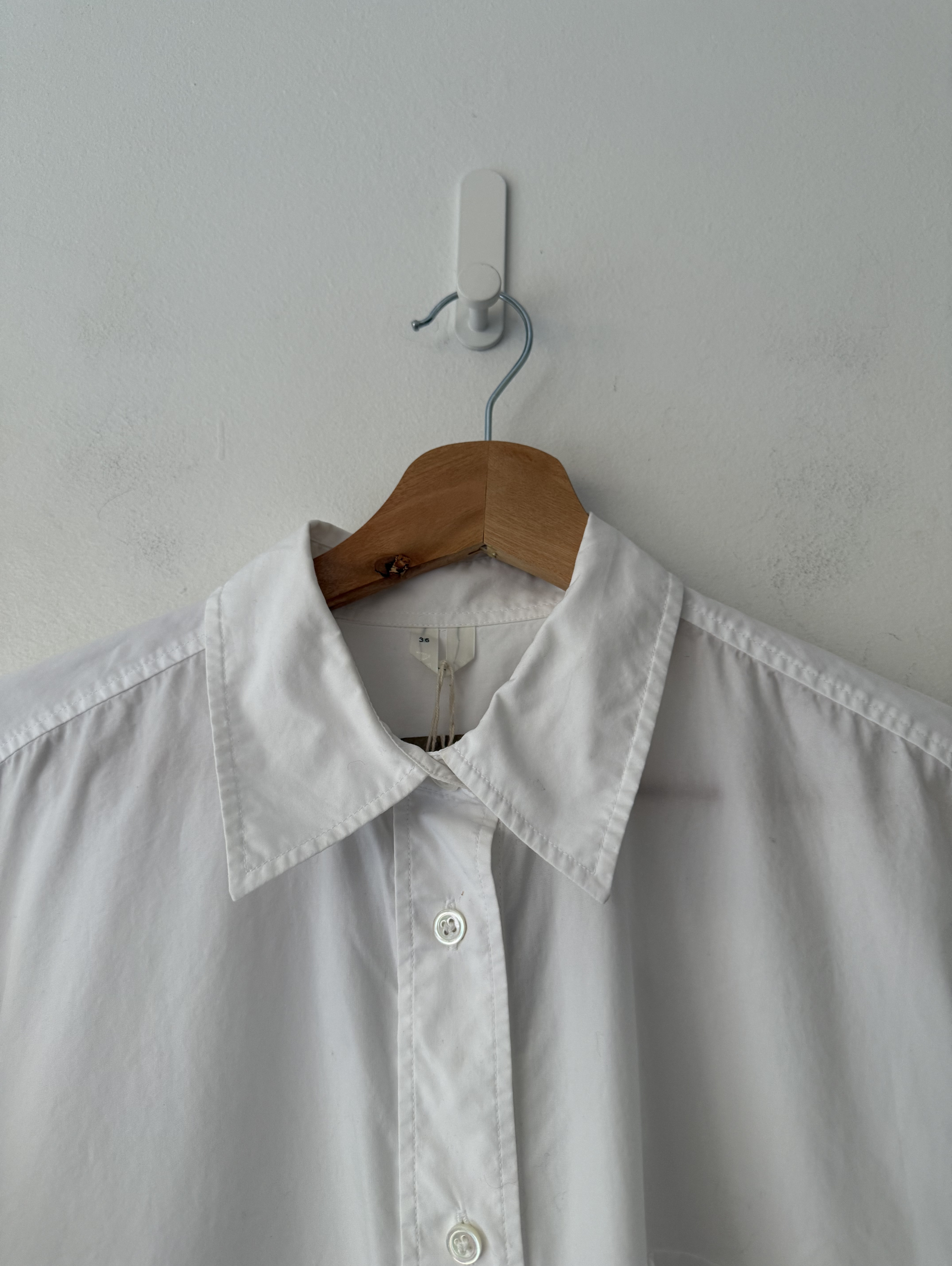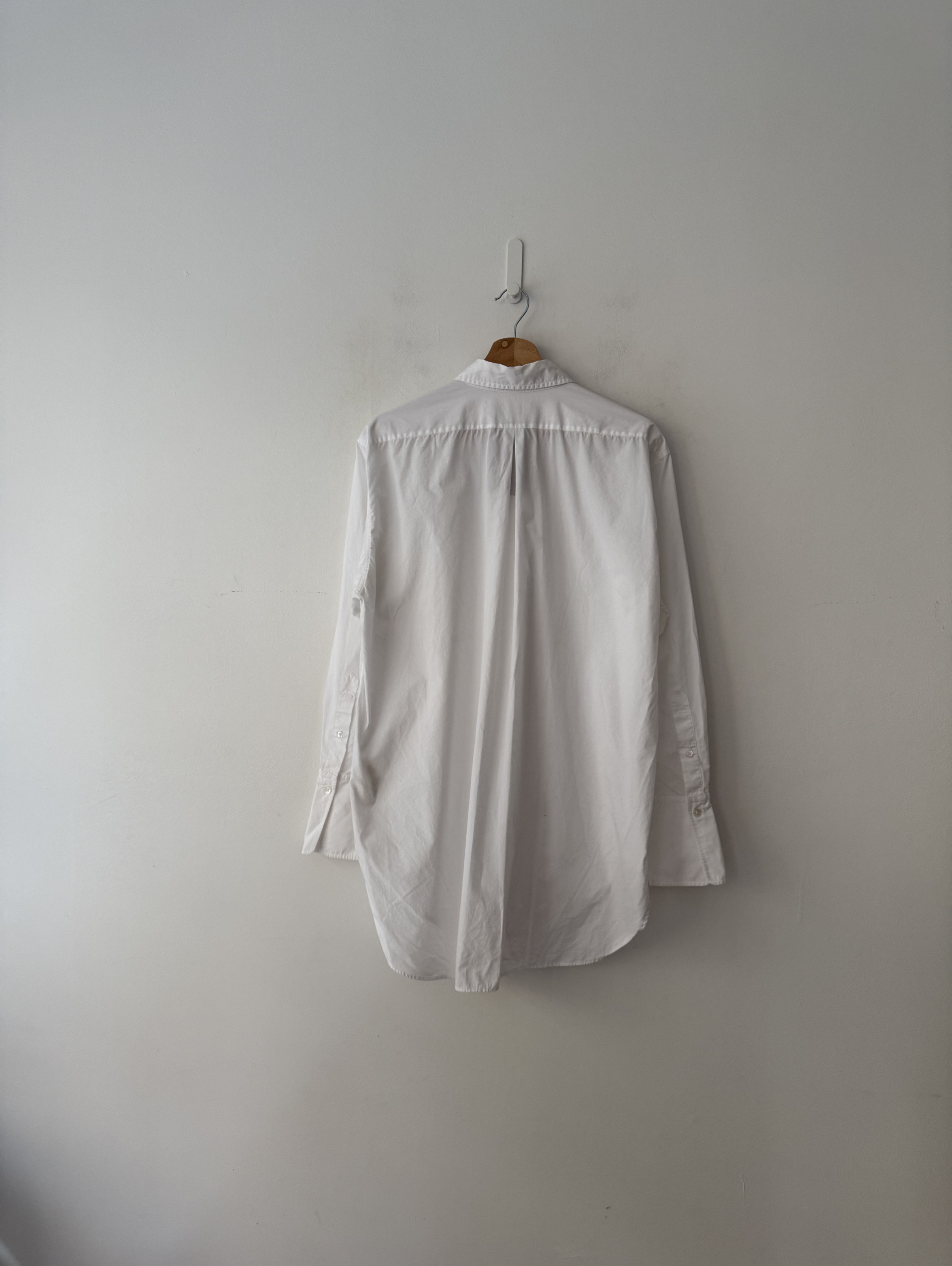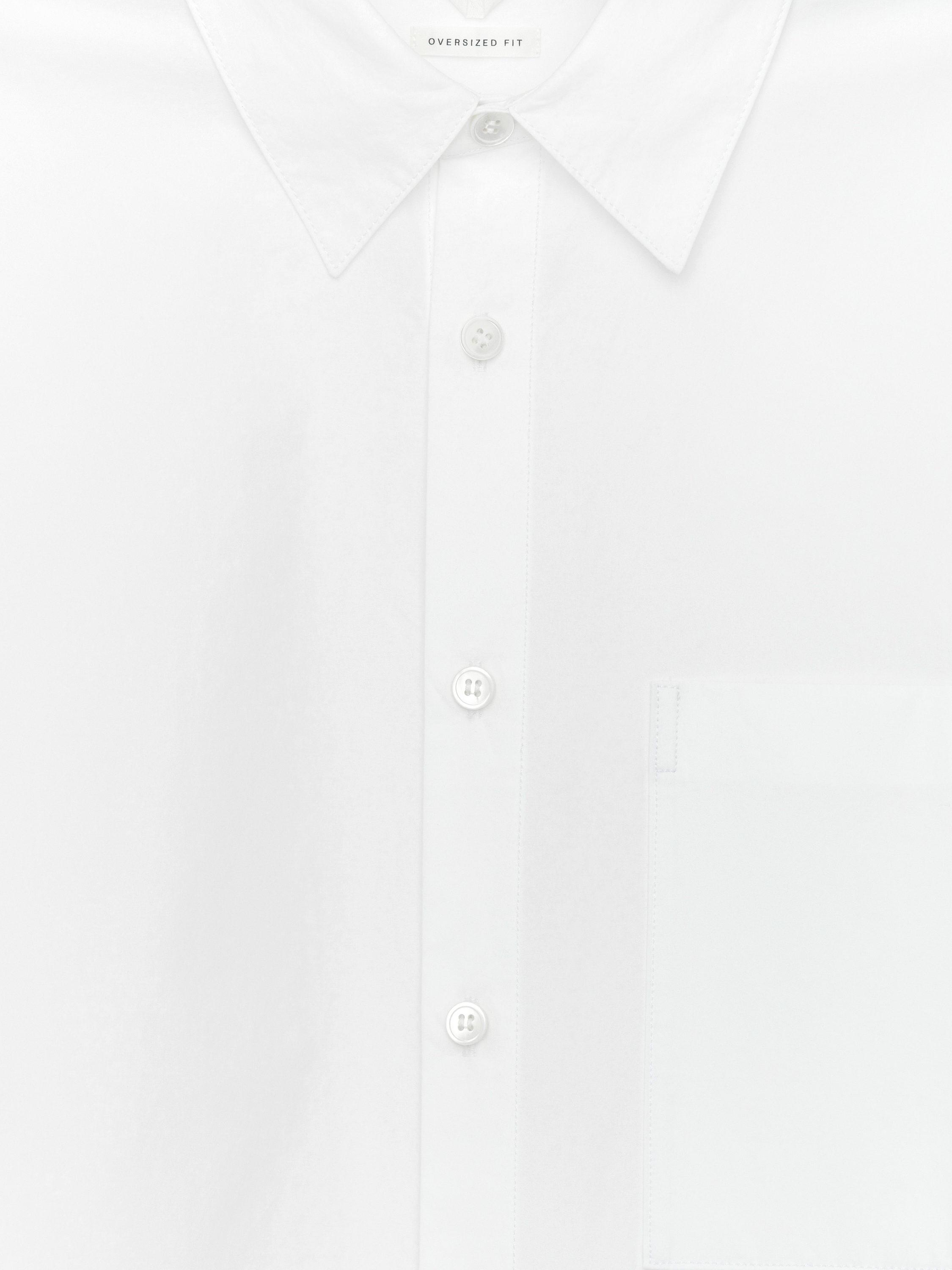 Long-sleeve shirt crafted from cotton poplin. Cut for an oversized fit with a pointy collar, front buttoning, chest pocket and buttoned cuffs. Curved hemline.