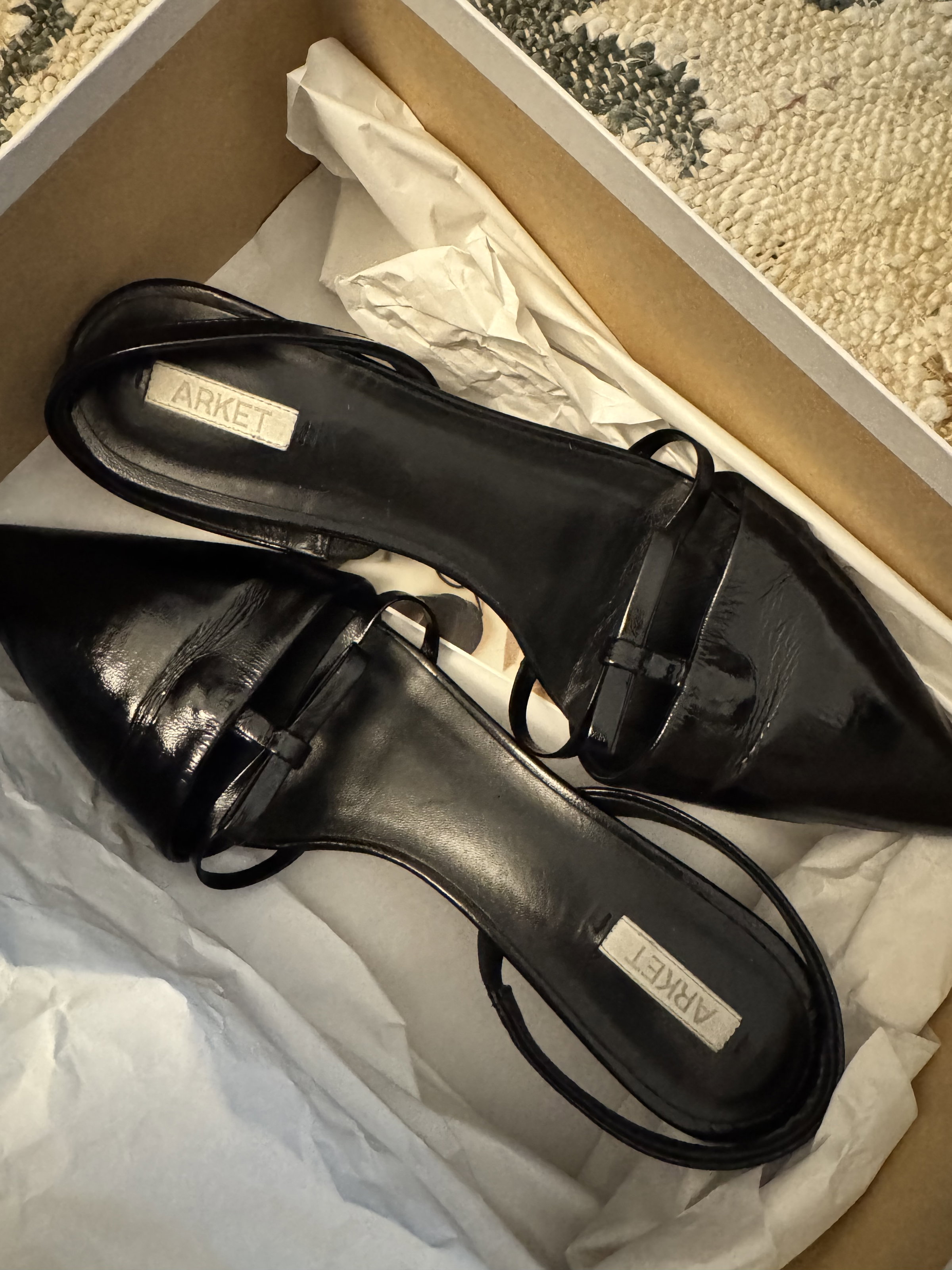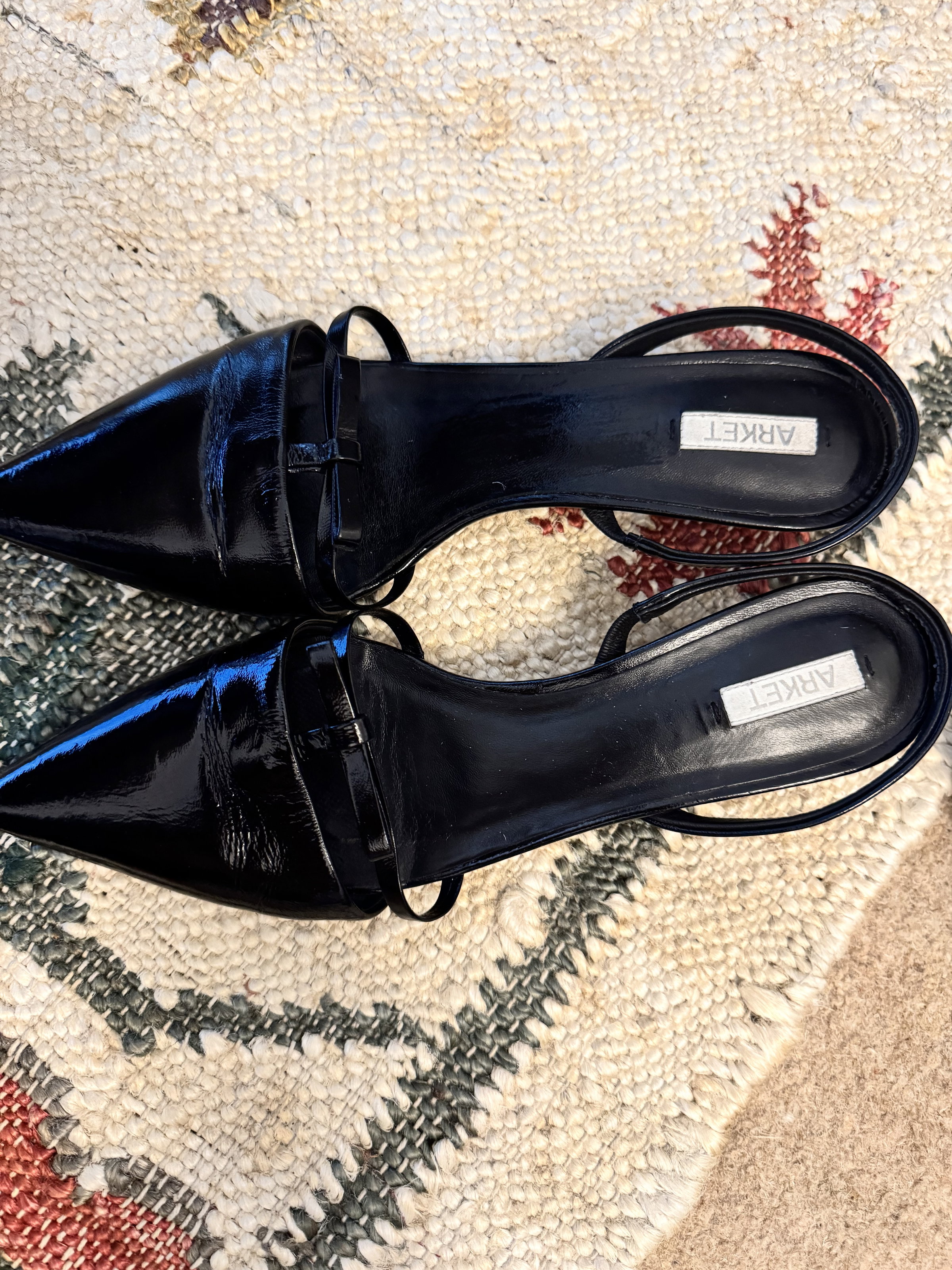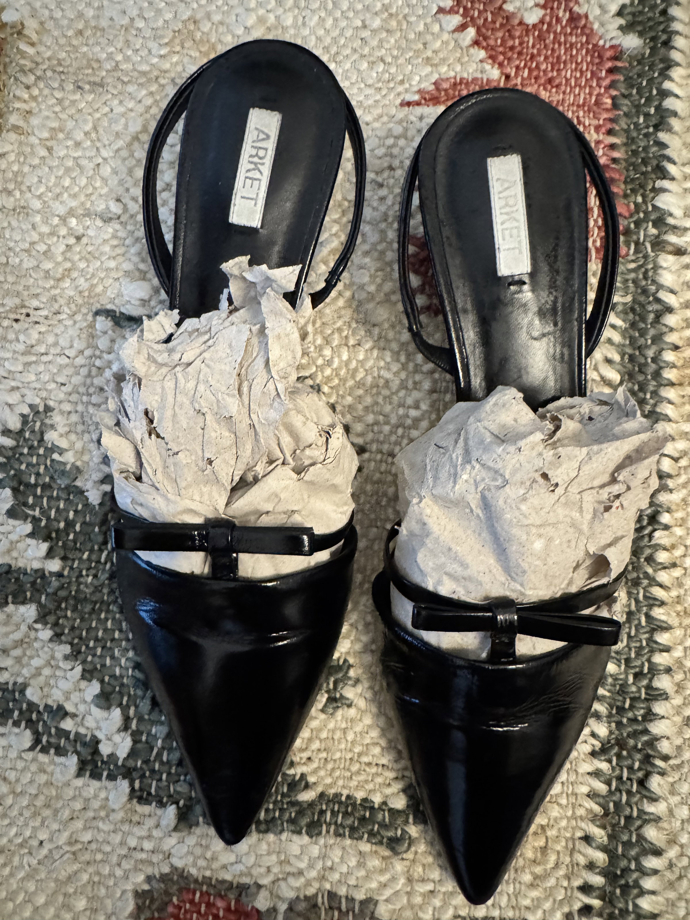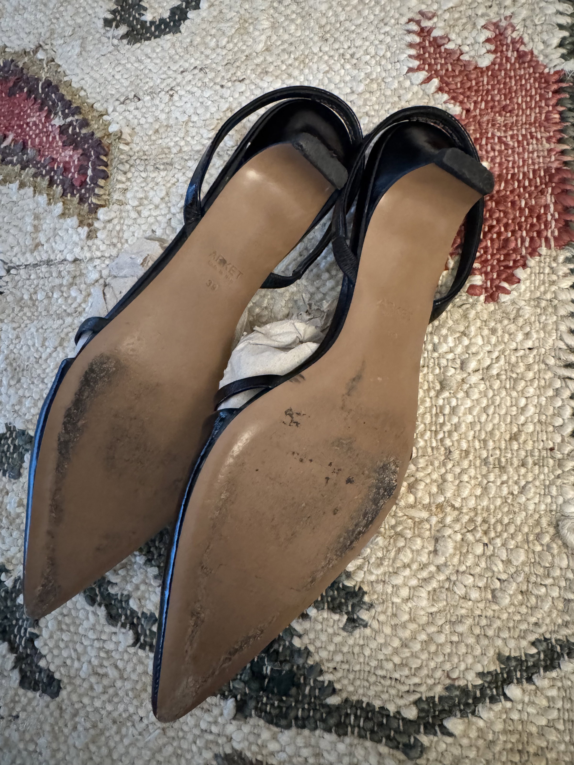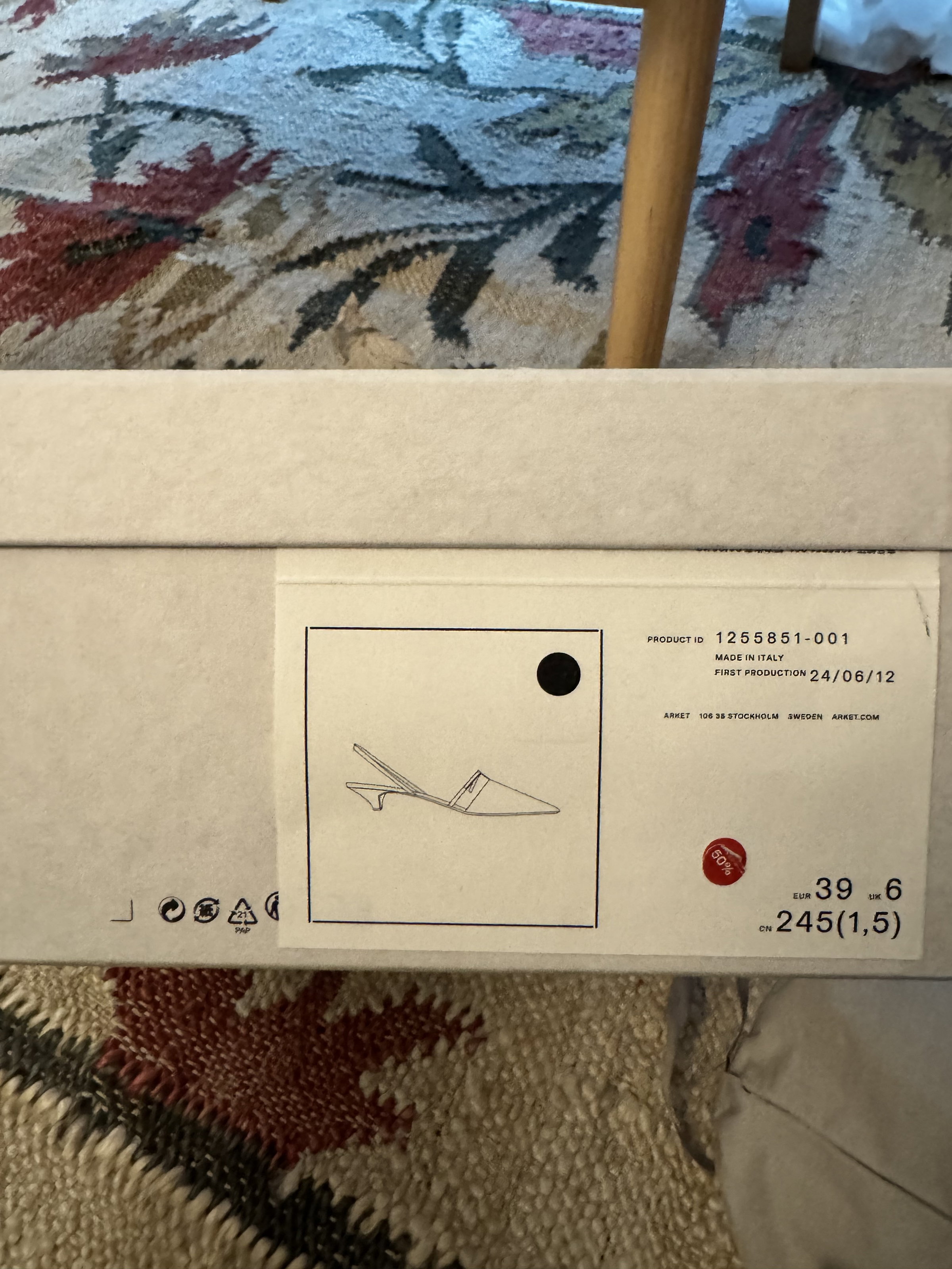 Very good condition, sling back shoes with baby heels & front bow, it has the original box if needed.