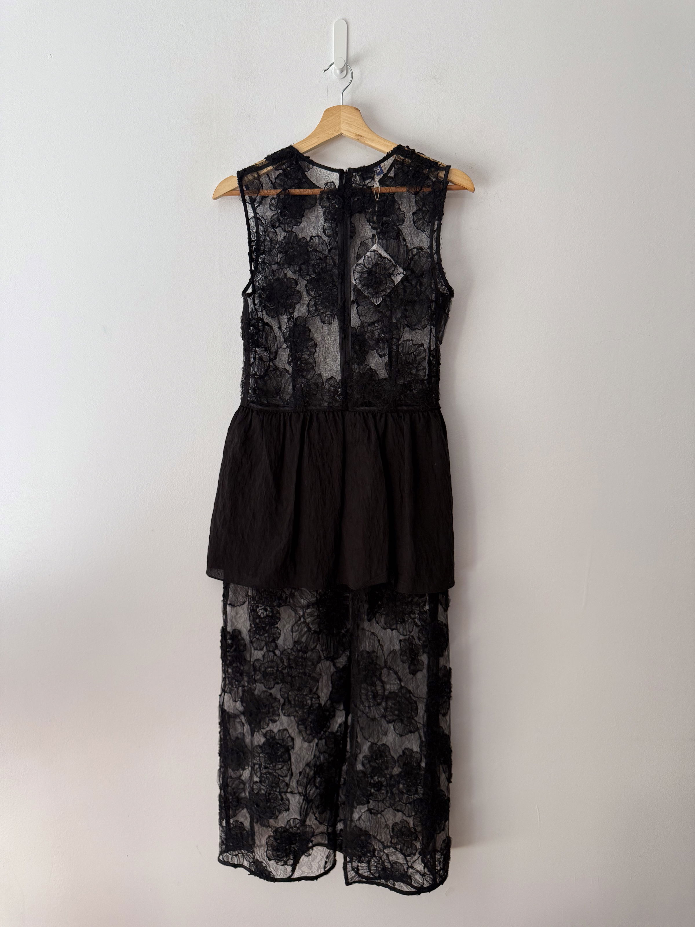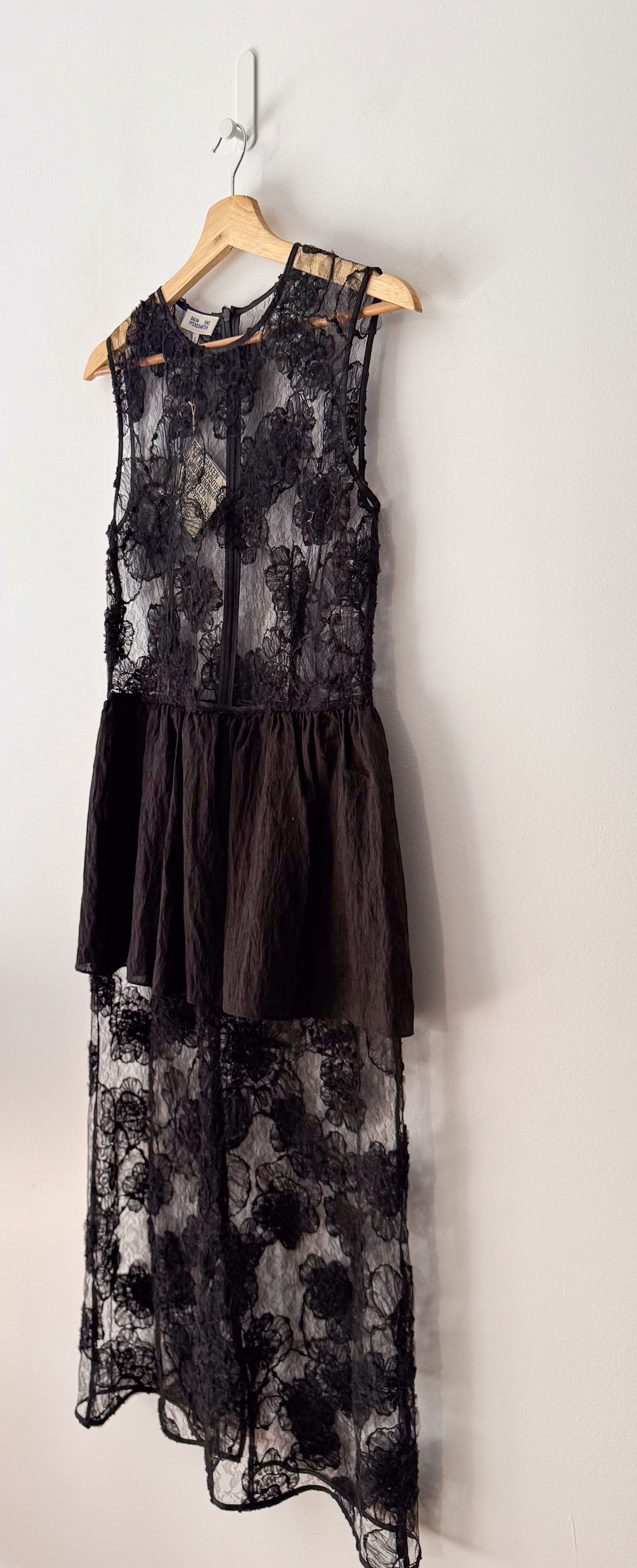 The Antonie Dress is an elegant piece made in a refined sheer floral lace. The sleeveless dress has a timeless silhouette with a fabric detail at the waist to make it more versatile. Style it with a pair of heels to complete the evening look.