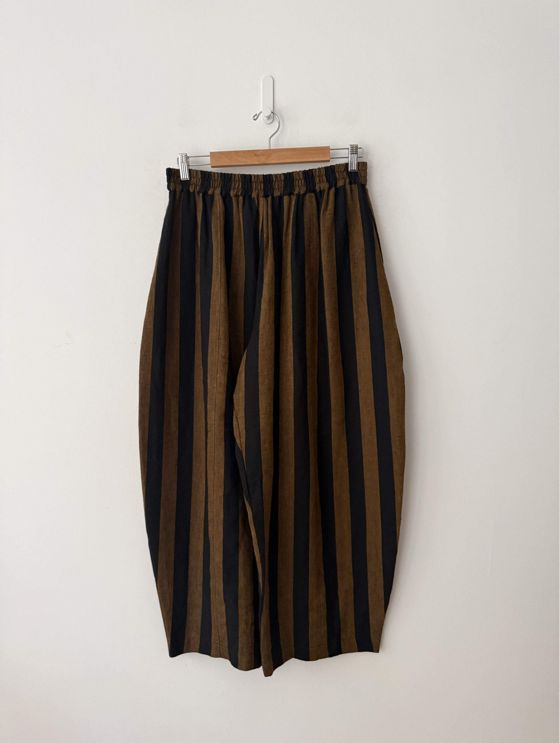 Meet our famous Mabel in a new rust and black stripe Linen, a classic trouser to see you through the seasons. Our bestselling Mabel has an elasticated waistband, she's comfy if you've got a bump or just some bloat. Size down.