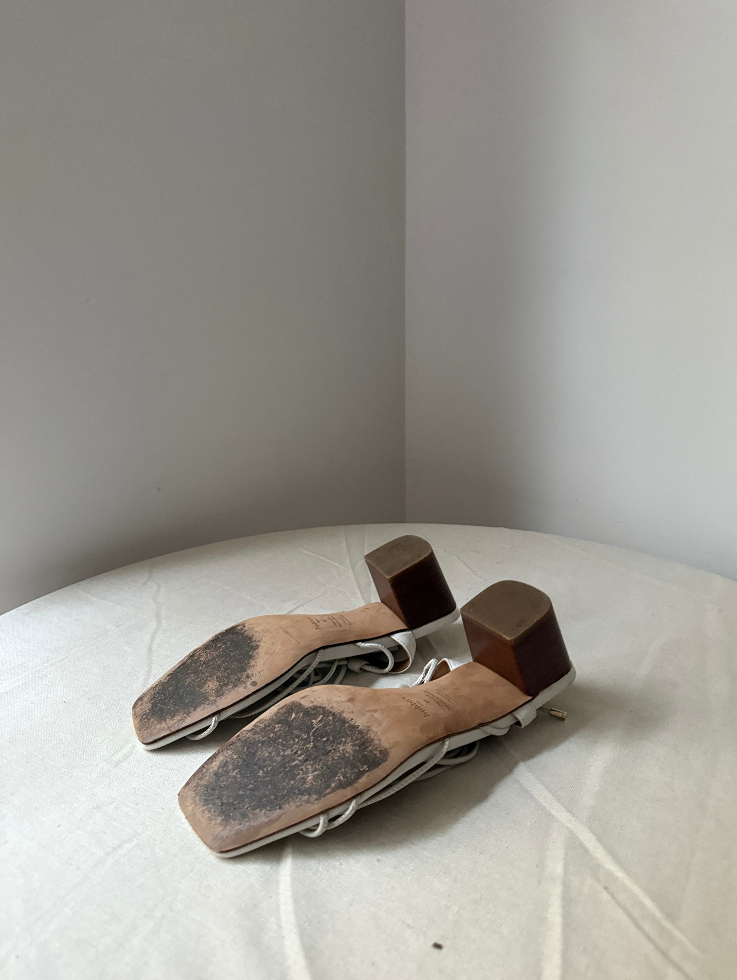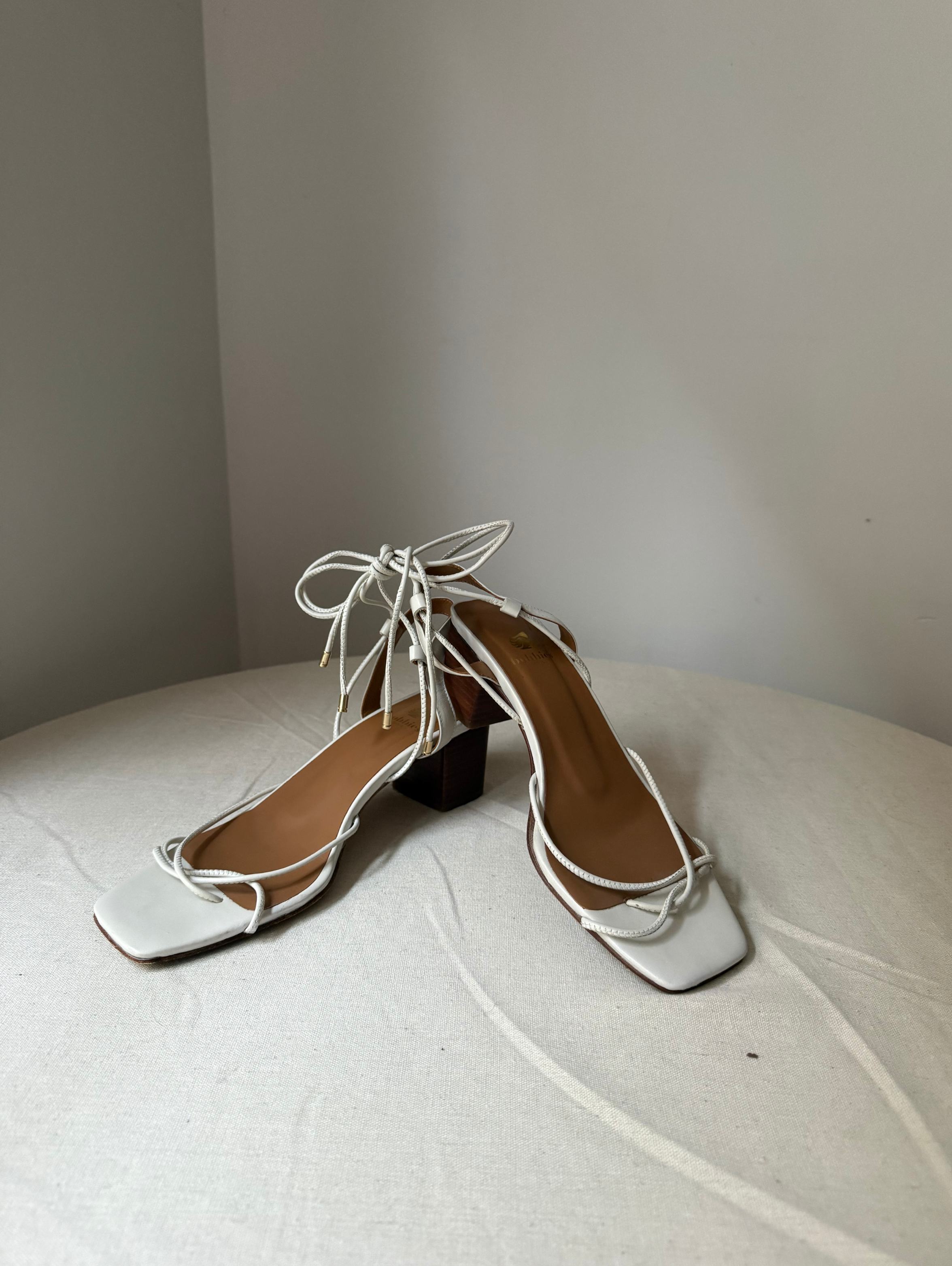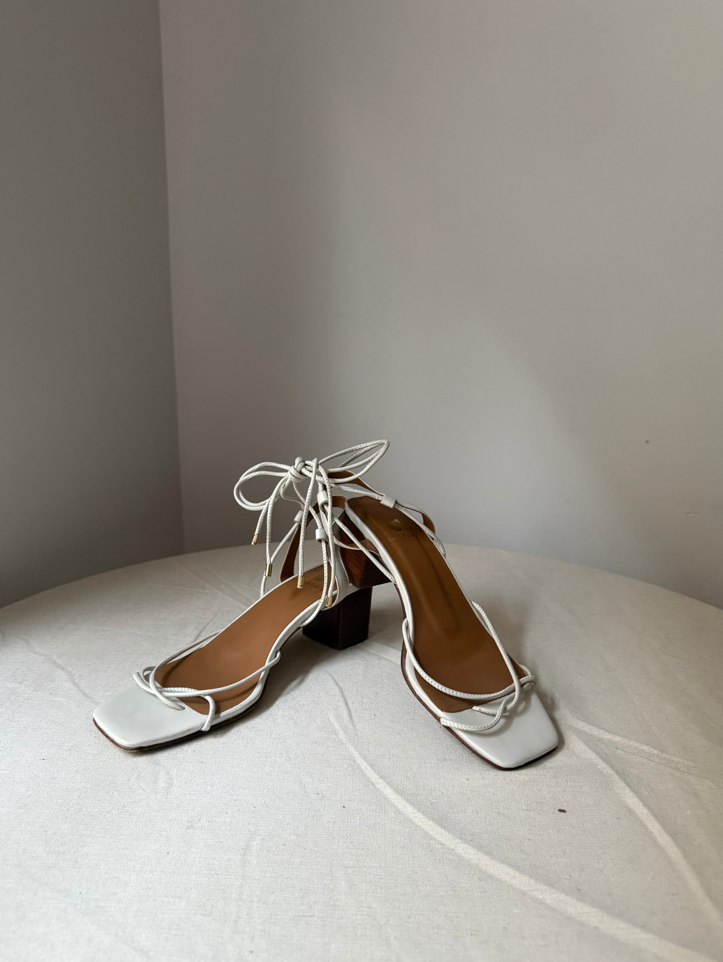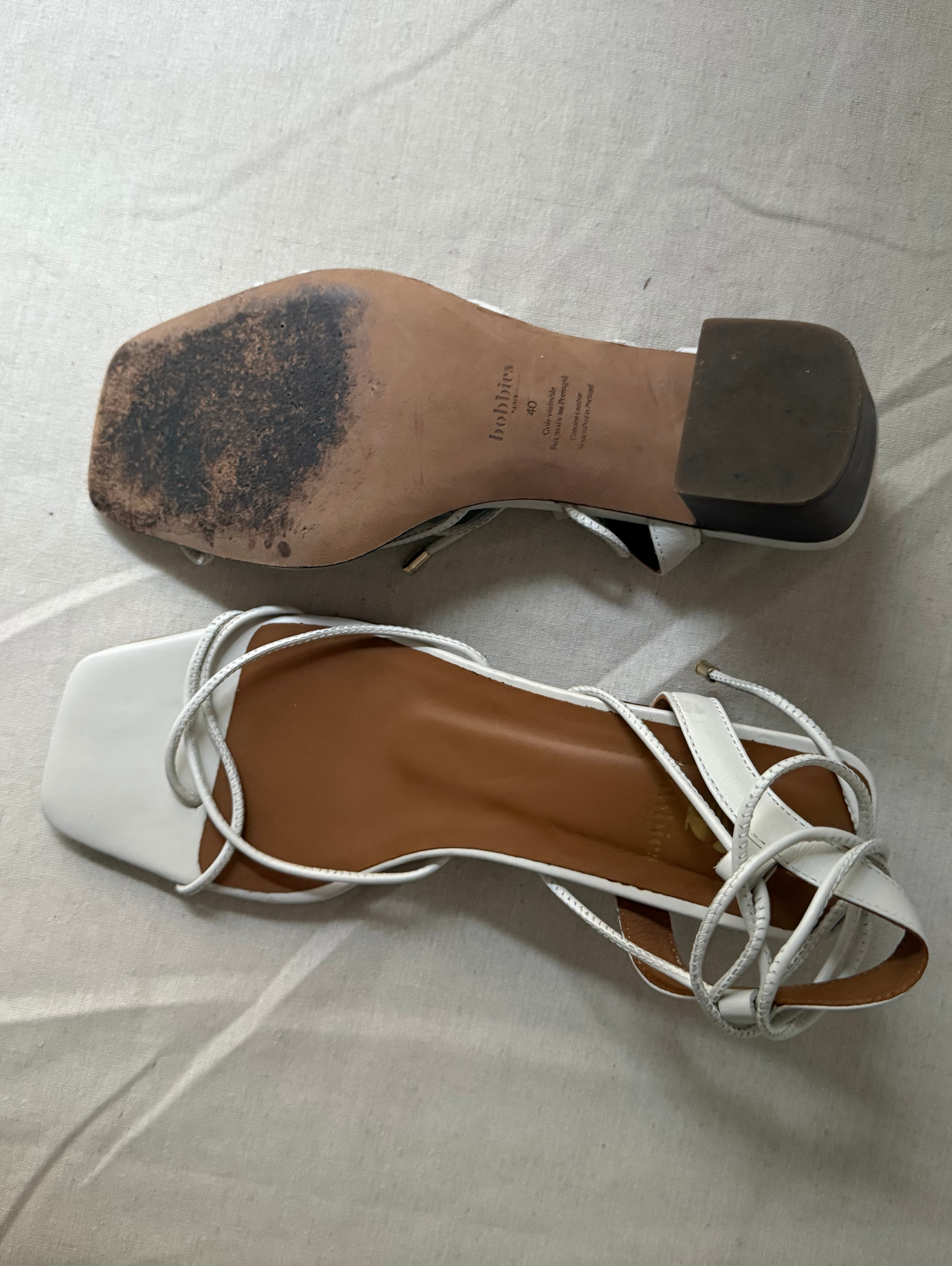 Heeled sandals, hand-made in Portugal. Leather from Italy. Leather lining. Leather outersole. Heel covered in wood-effect leather: 5 cm