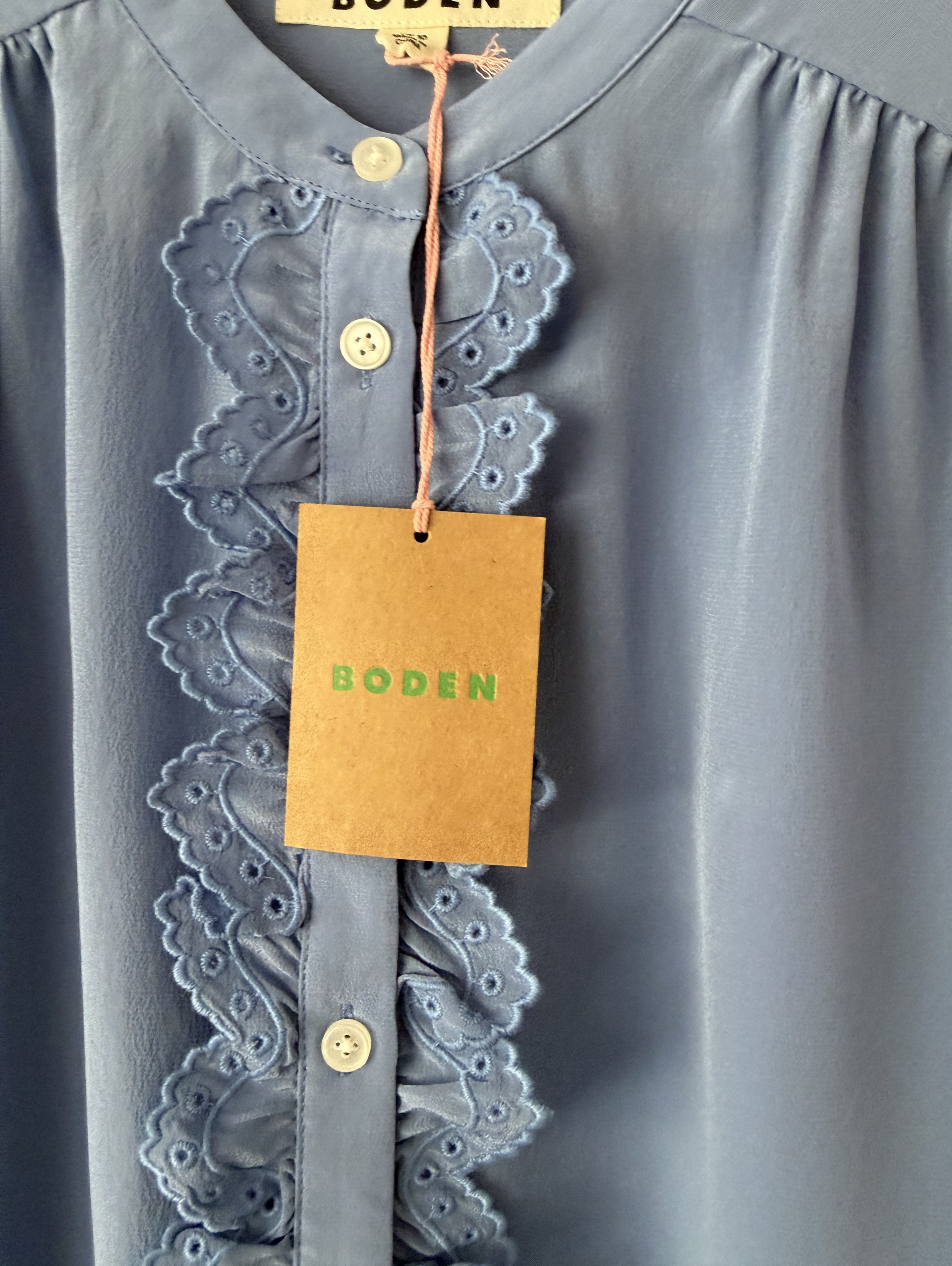 - Model is 5'6 wearing a size 2 - This is a clearance item - 100% silk, Embroidery 100% polyester - Dry clean only - Relaxed - Easy shape but not too loose - Designed to fall between the waist and hip