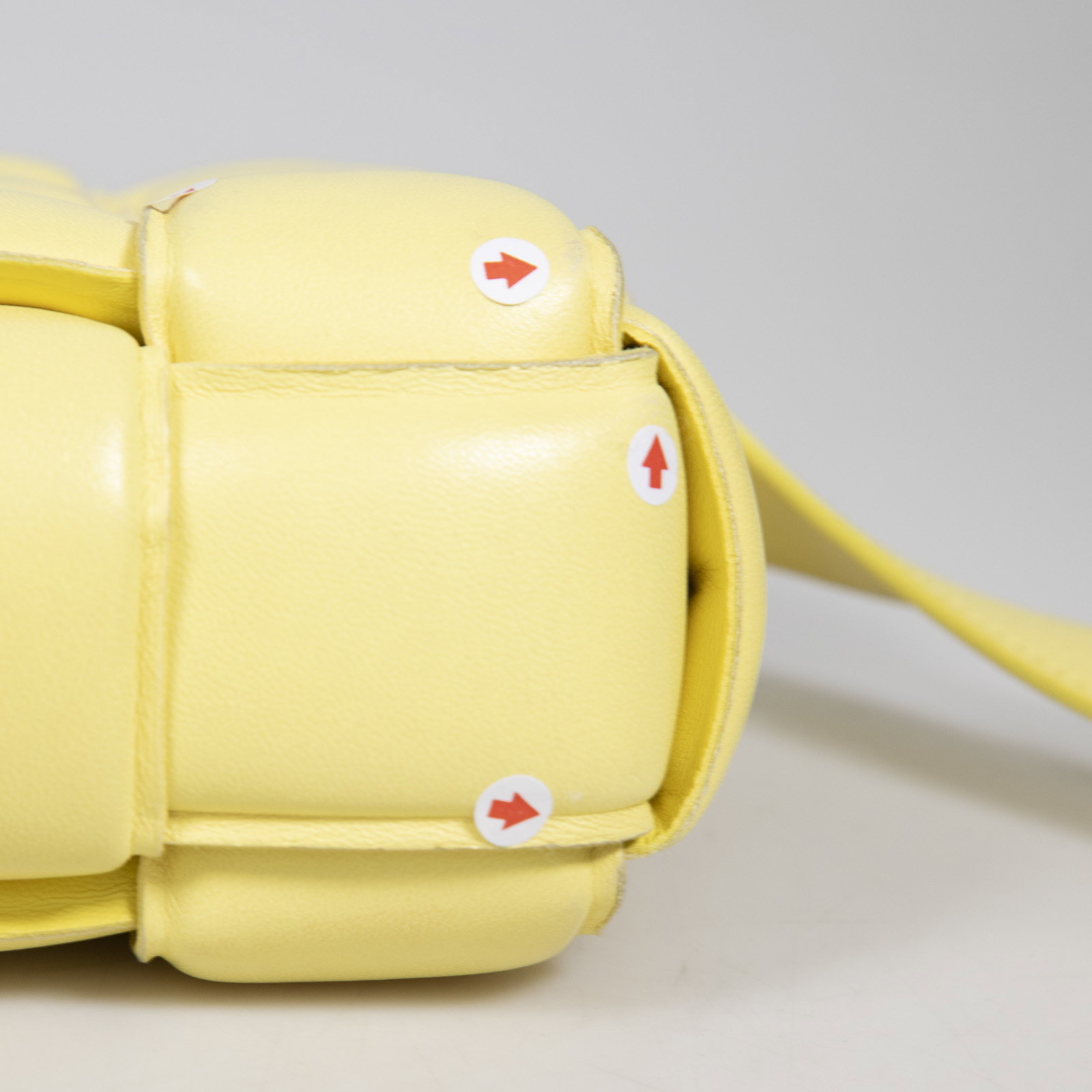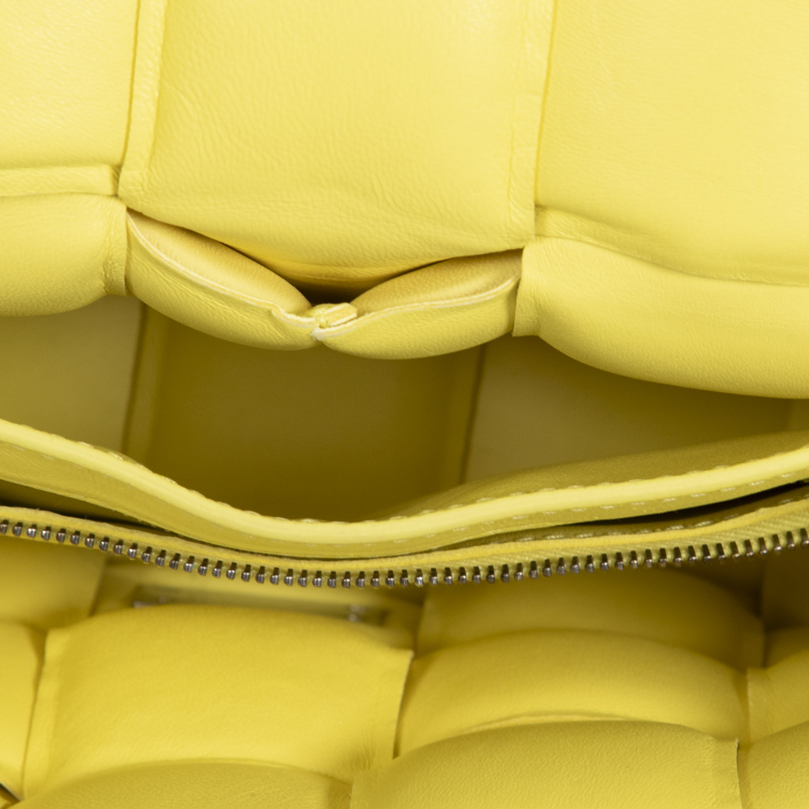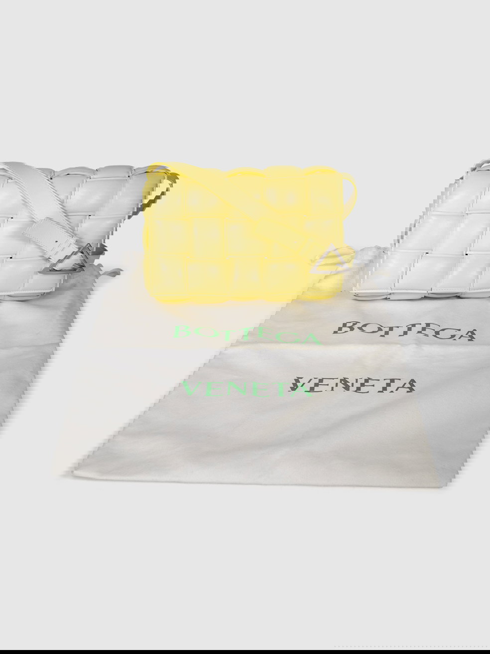 Bottega Veneta’s yellow leather Cassette cross-body bag is woven with the Iconic Intrecciato weave, originally developed in the 1960s to reinforce the house’s first tote.
