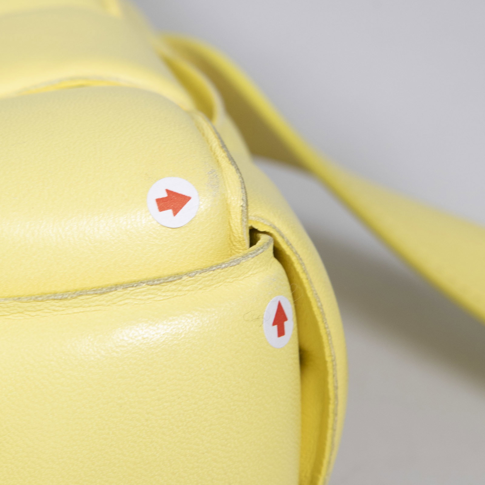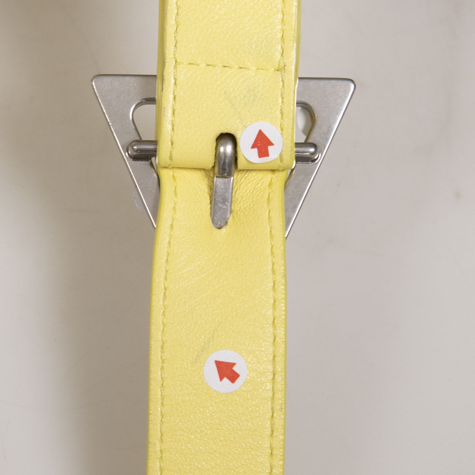 Yellow leather padded crossbody bag in excellent, pre-worn condition. See images for signs of wear. Comes with original dust bag. Flap with clasp fastening, adjustable shoulder strap, main compartment has internal zip pocket. Composition: 100% leather. Height 16cm, width 26cm, depth 6cm.