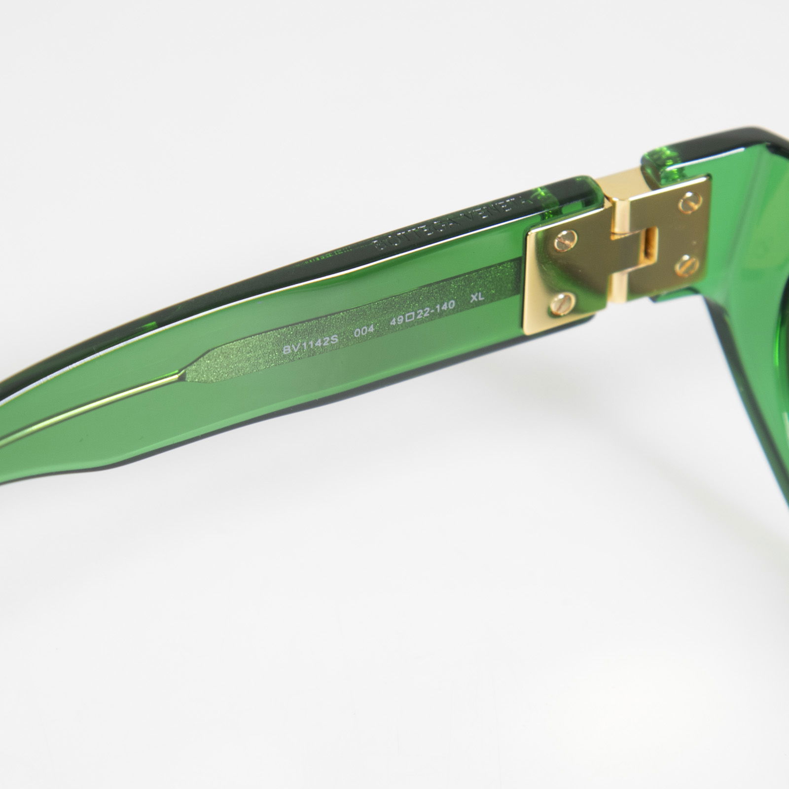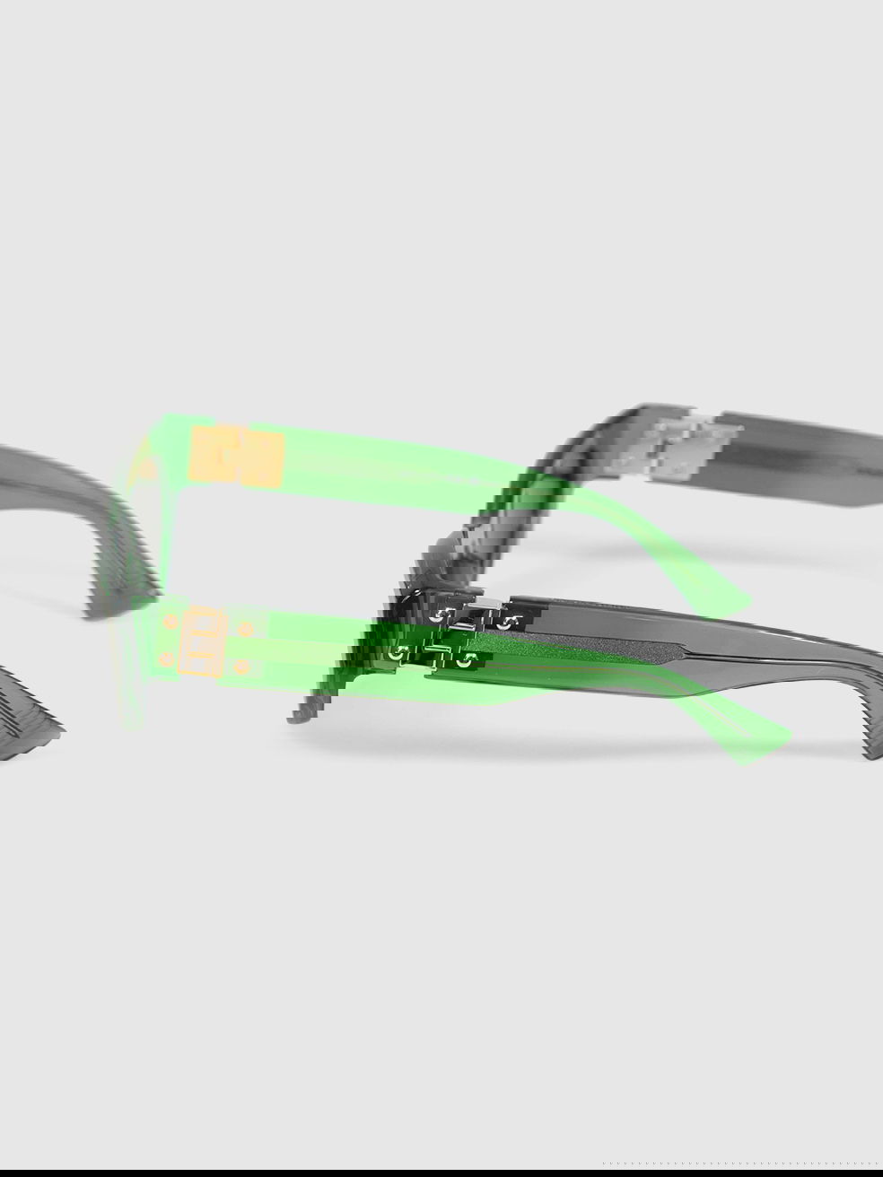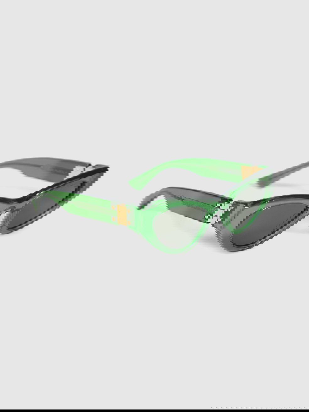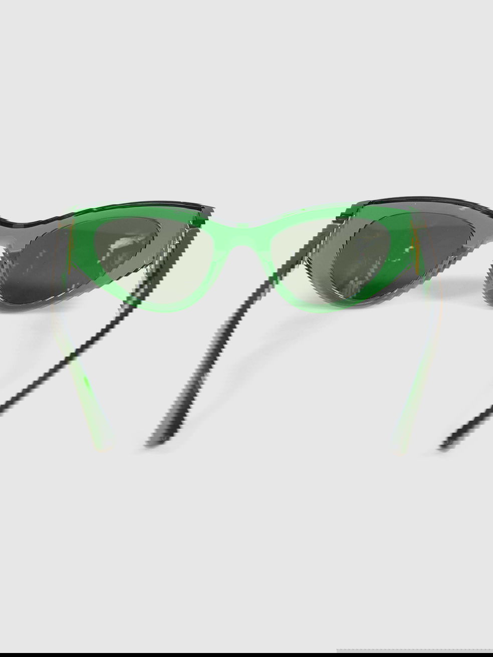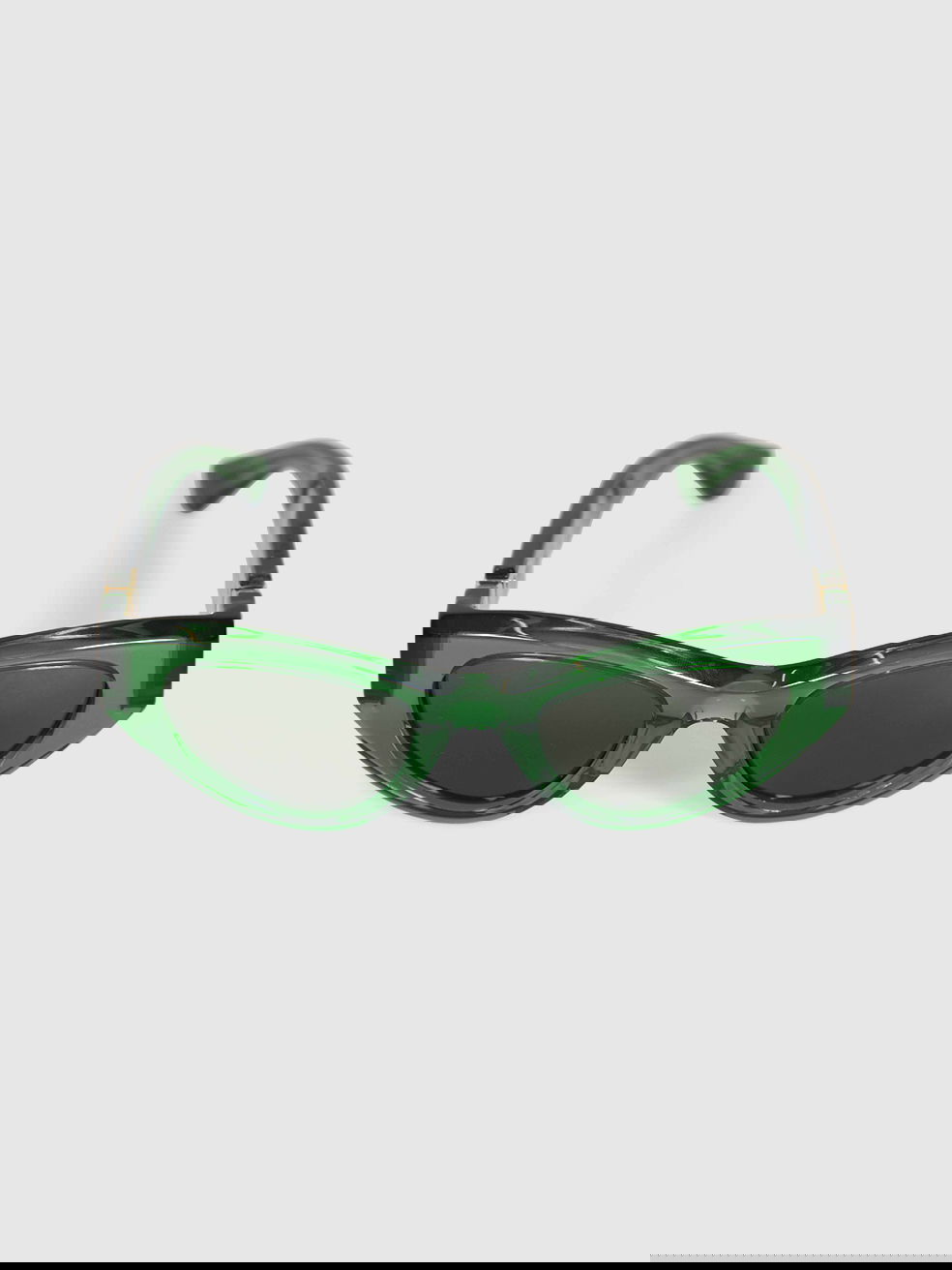 Bottega Veneta's shamrock-green sunglasses are crafted from smooth acetate with dark-tinted lenses and narrow, cat-eye frames for an athletic mood.