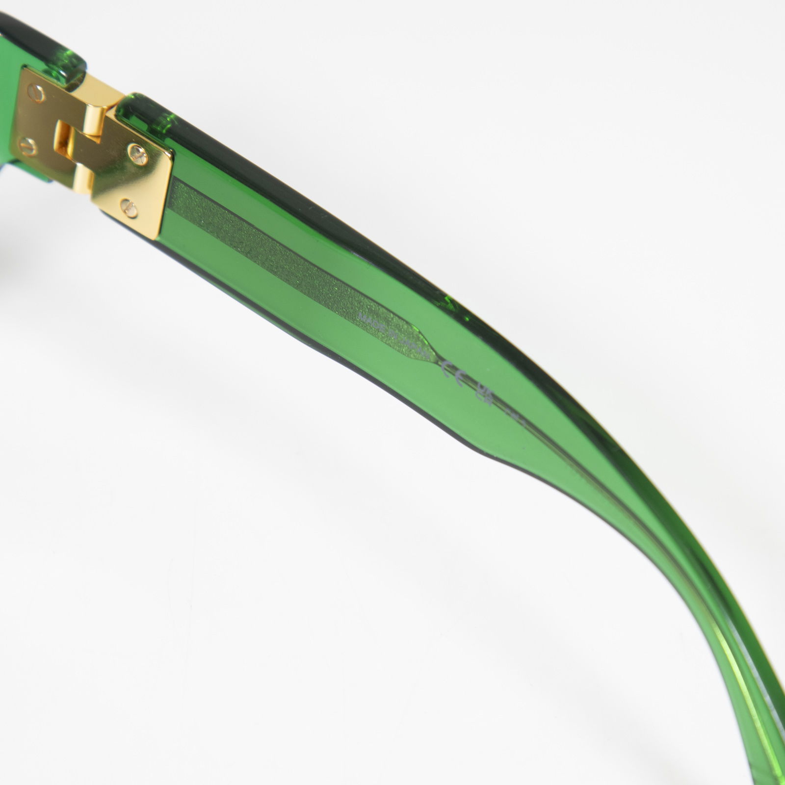 Green cat eye sunglasses in excellent, pre-worn condition. See images for more details. Left arm is slightly loose. Sunglasses come with the original case. Measurements: arm length: 150mm, lens width: 50mm, lens height: 35mm, lens bridge: 20mm.