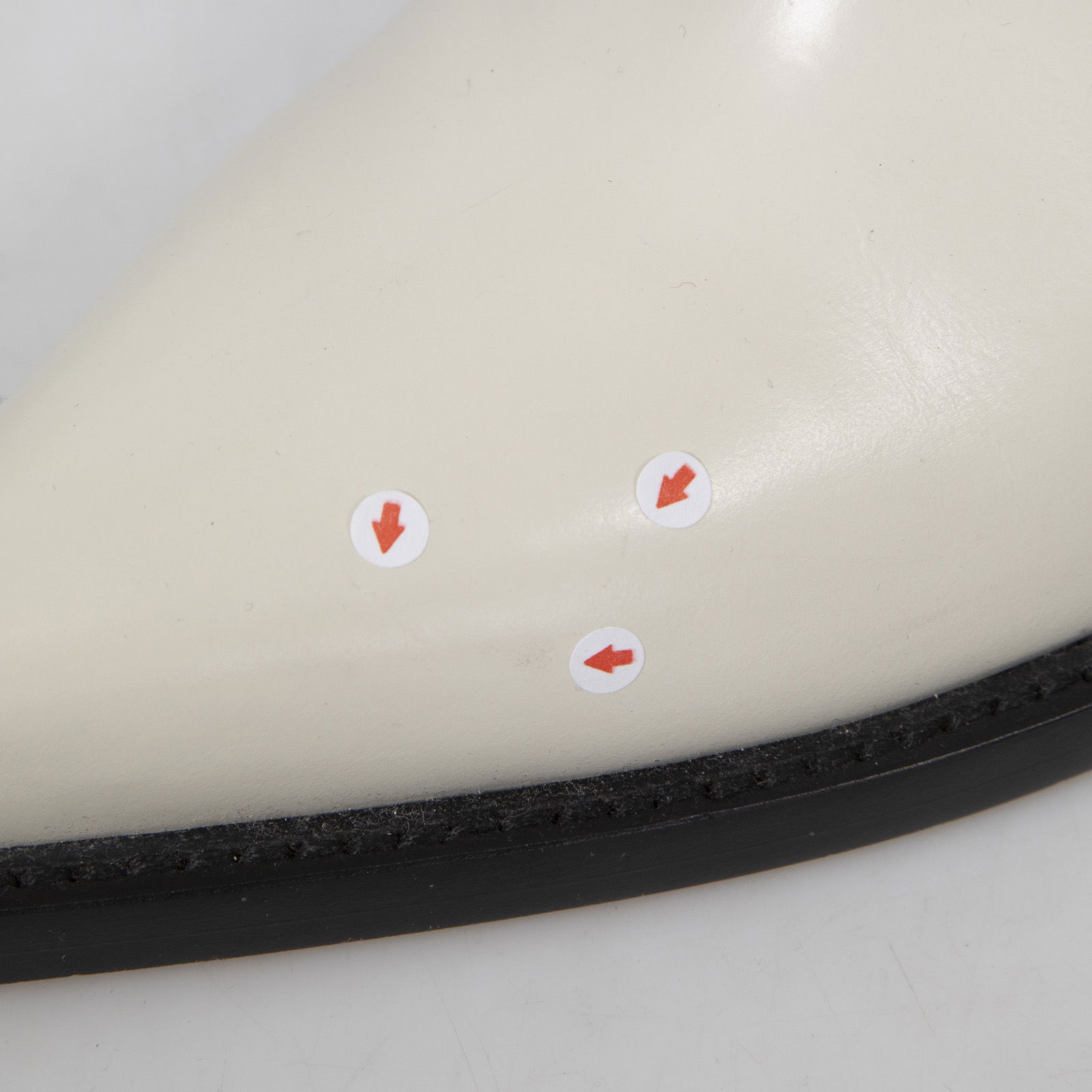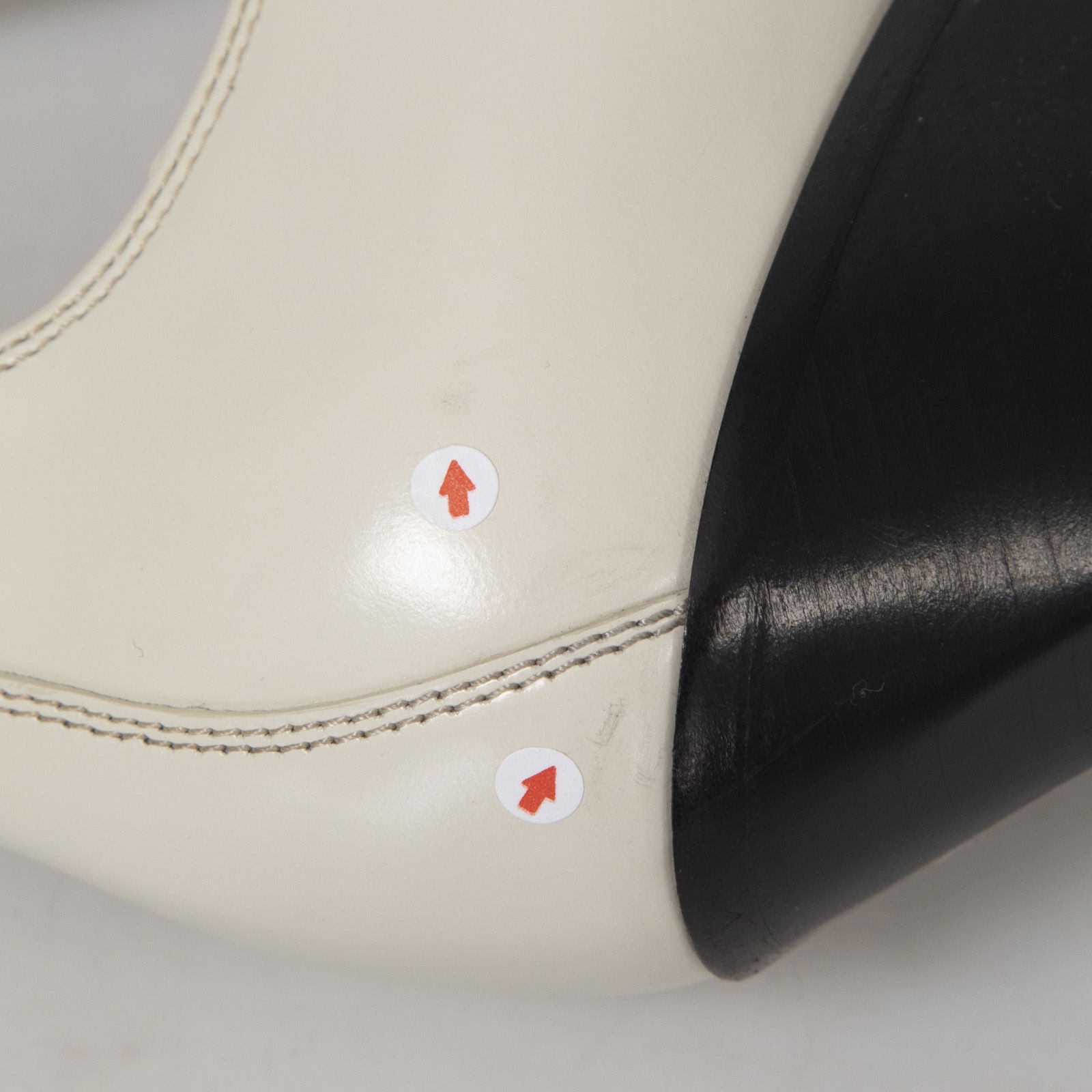 White leather ankle boots in excellent, pre-worn condition. See images for signs of wear. Shoes come with original dust bag. Measurements: heel height: 8.9cm.