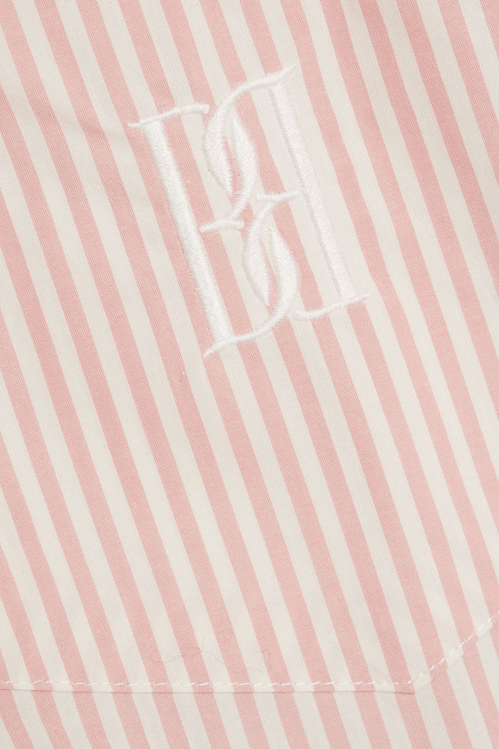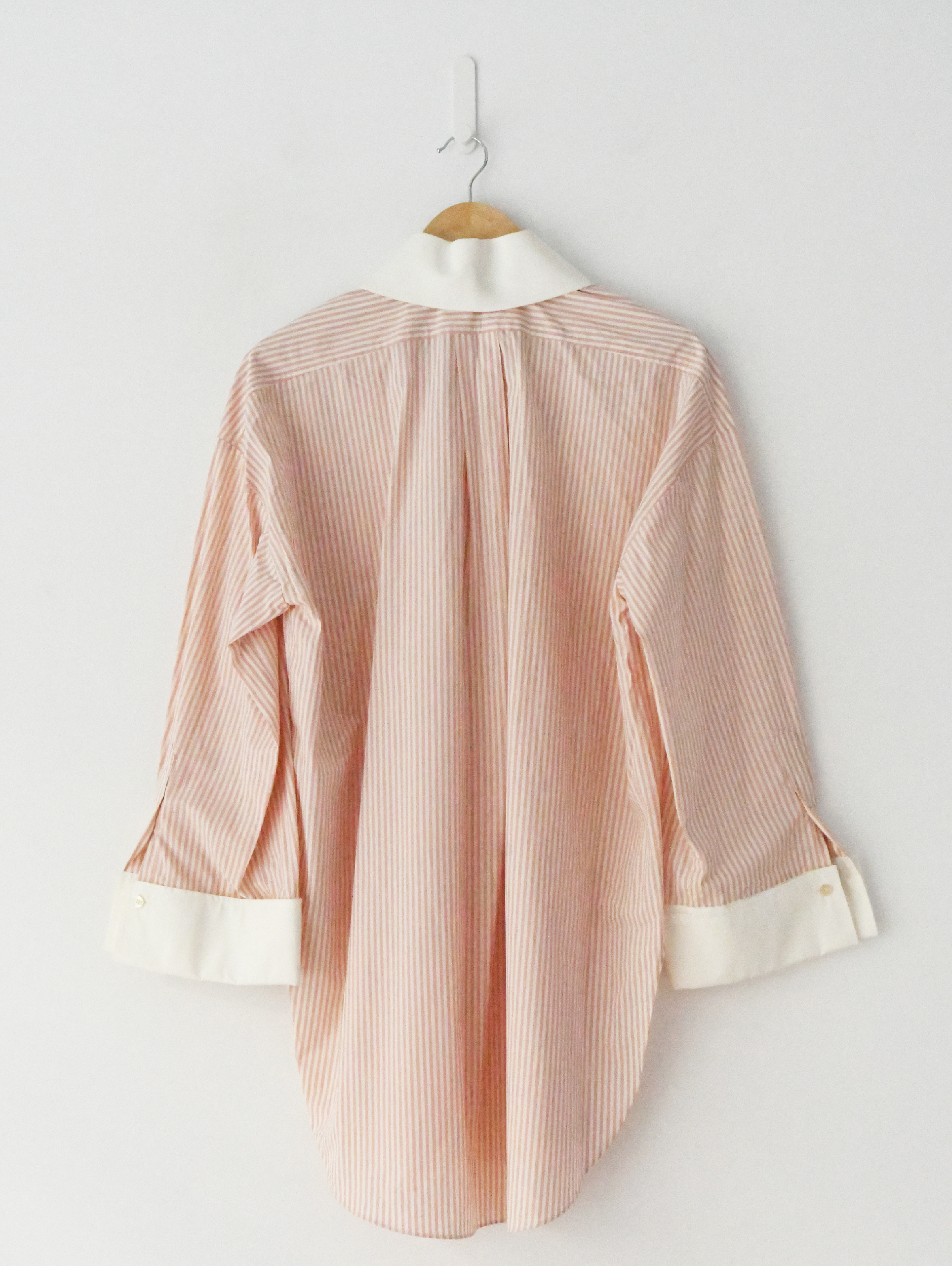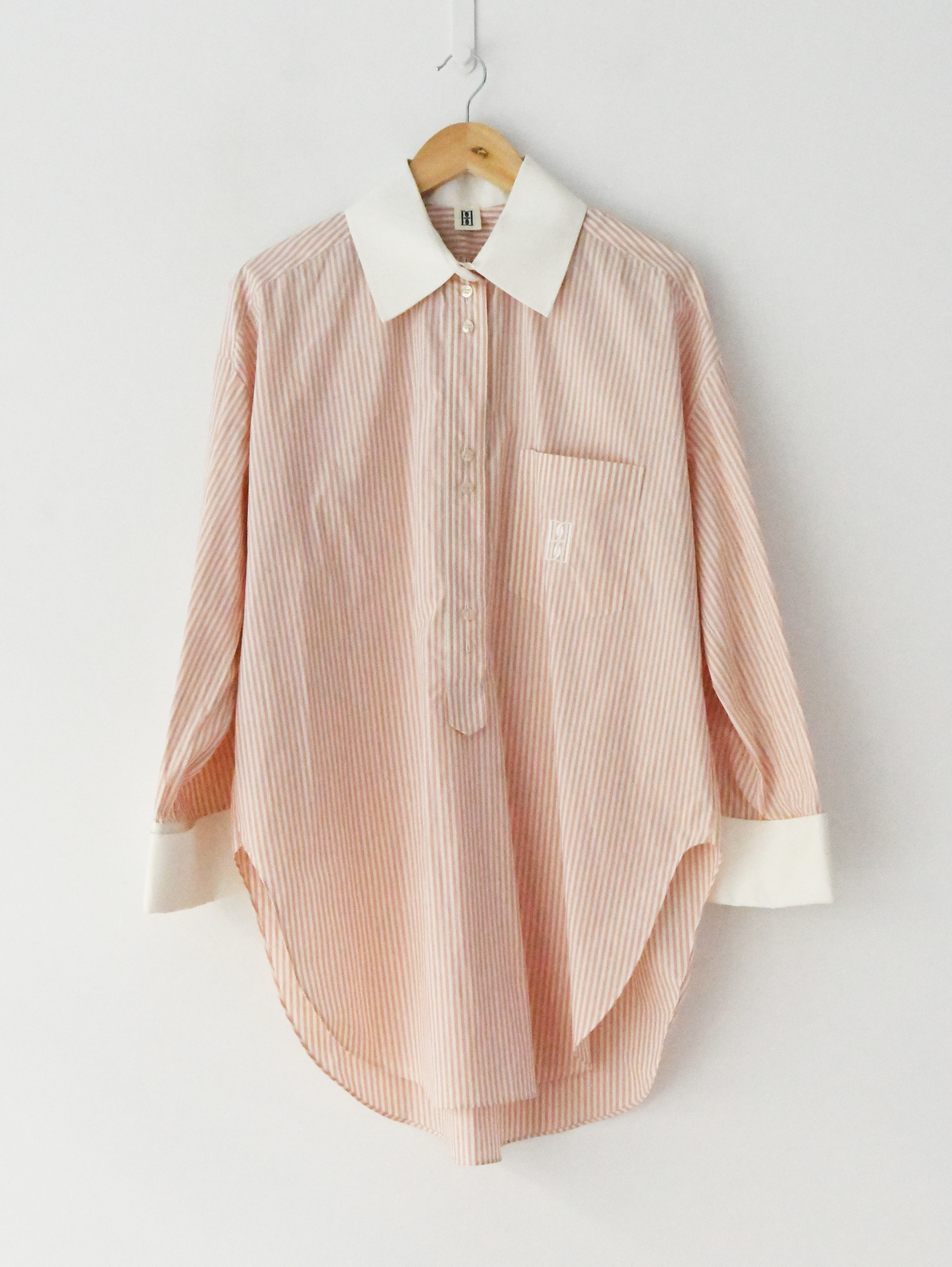 Striped, contrasting collar and button-fastening t cotton-poplin shirt Striped, contrasting collar and button-fastening turn-up cuffs, dropped shoulders, logo embroidery at chest patch pocket, box pleat at back, side splits, curved longer back hem.