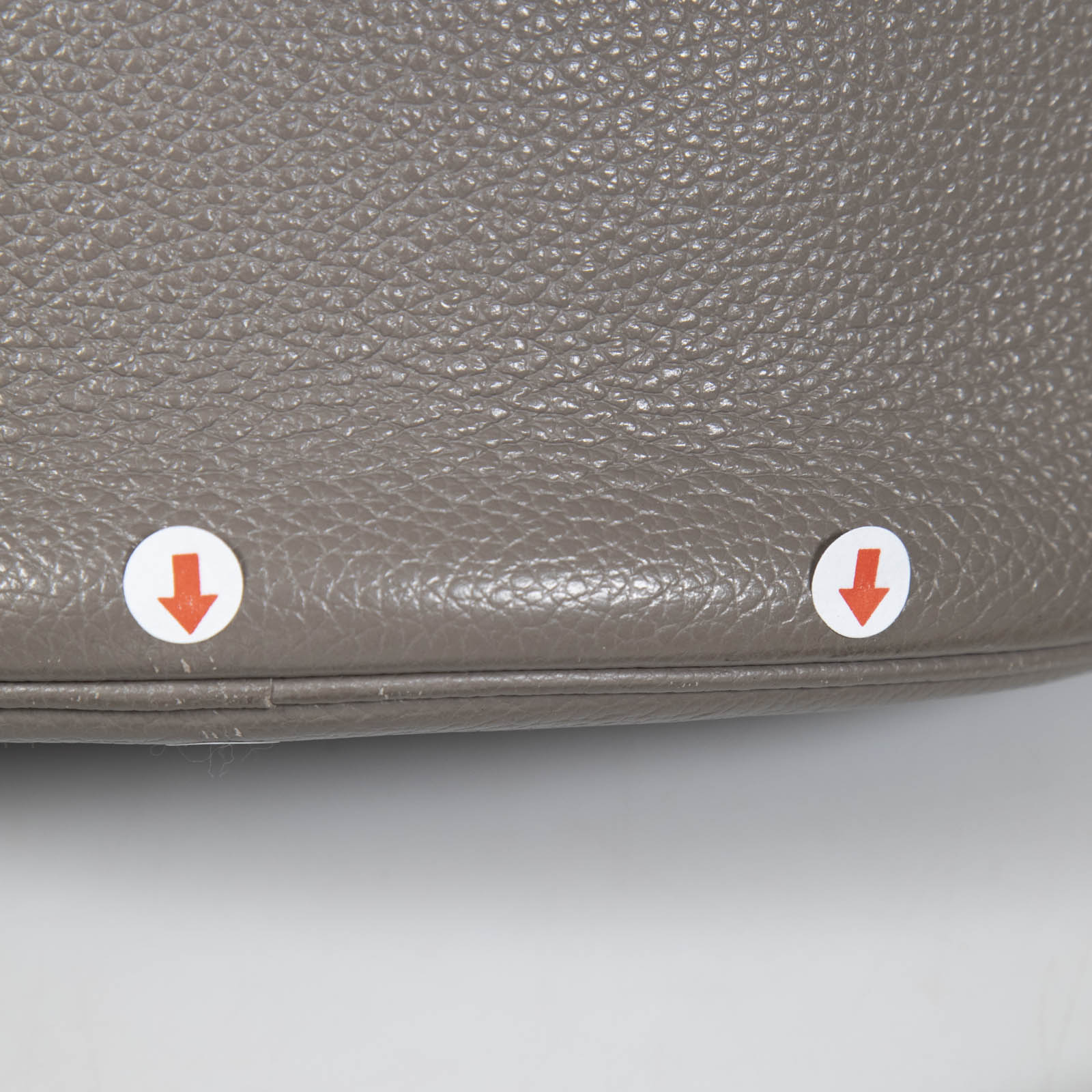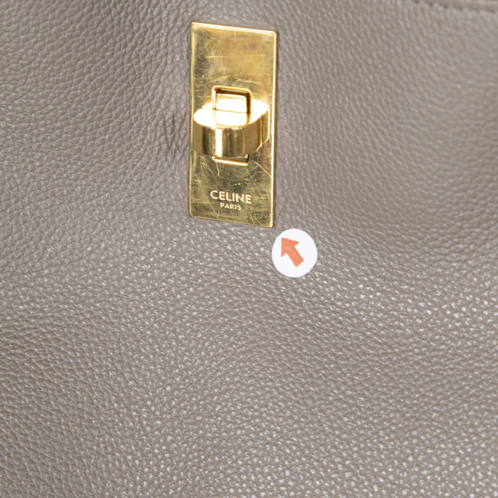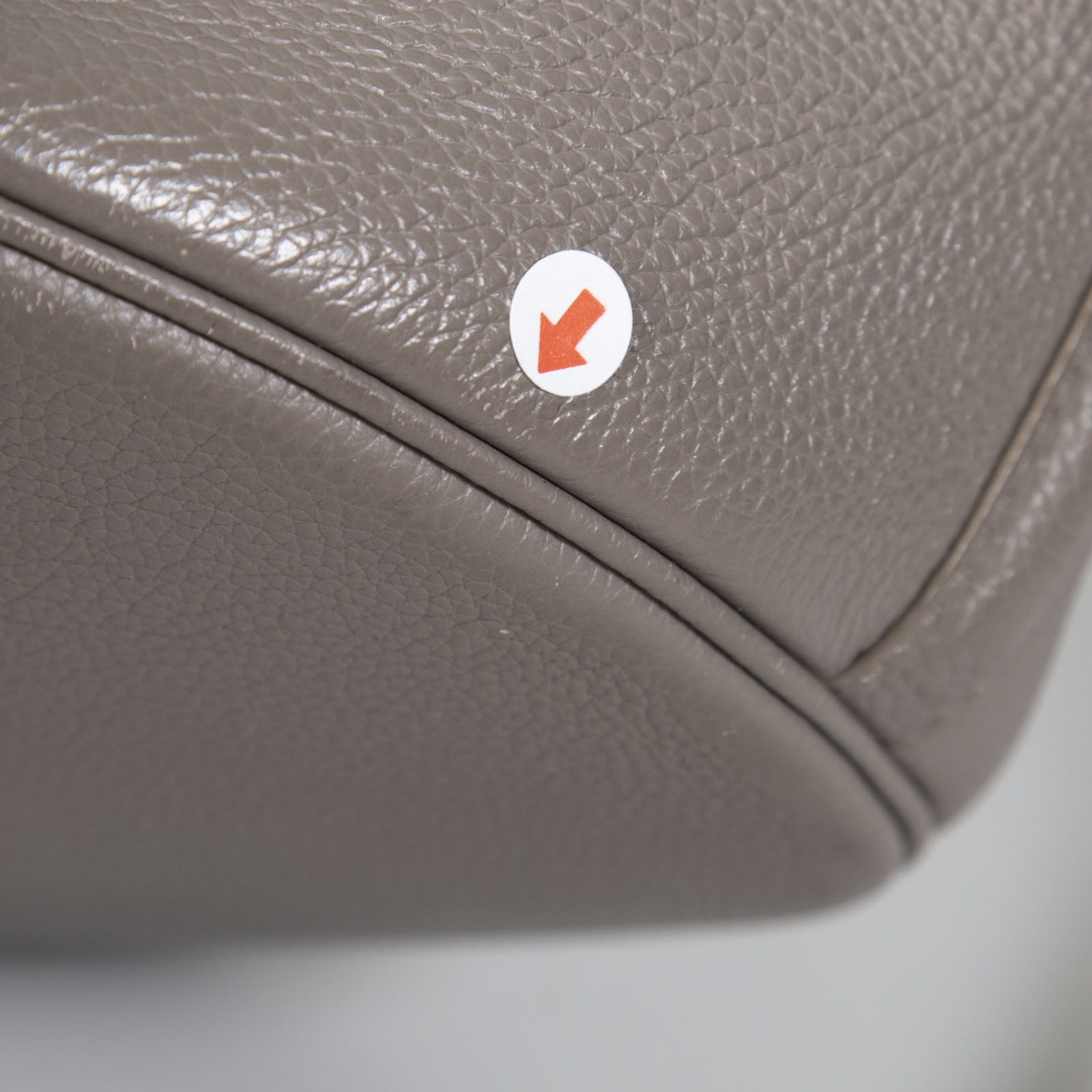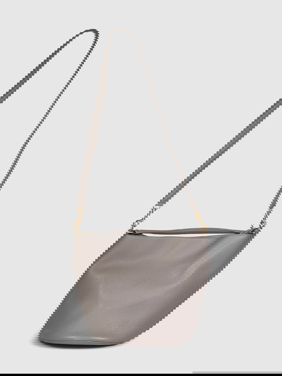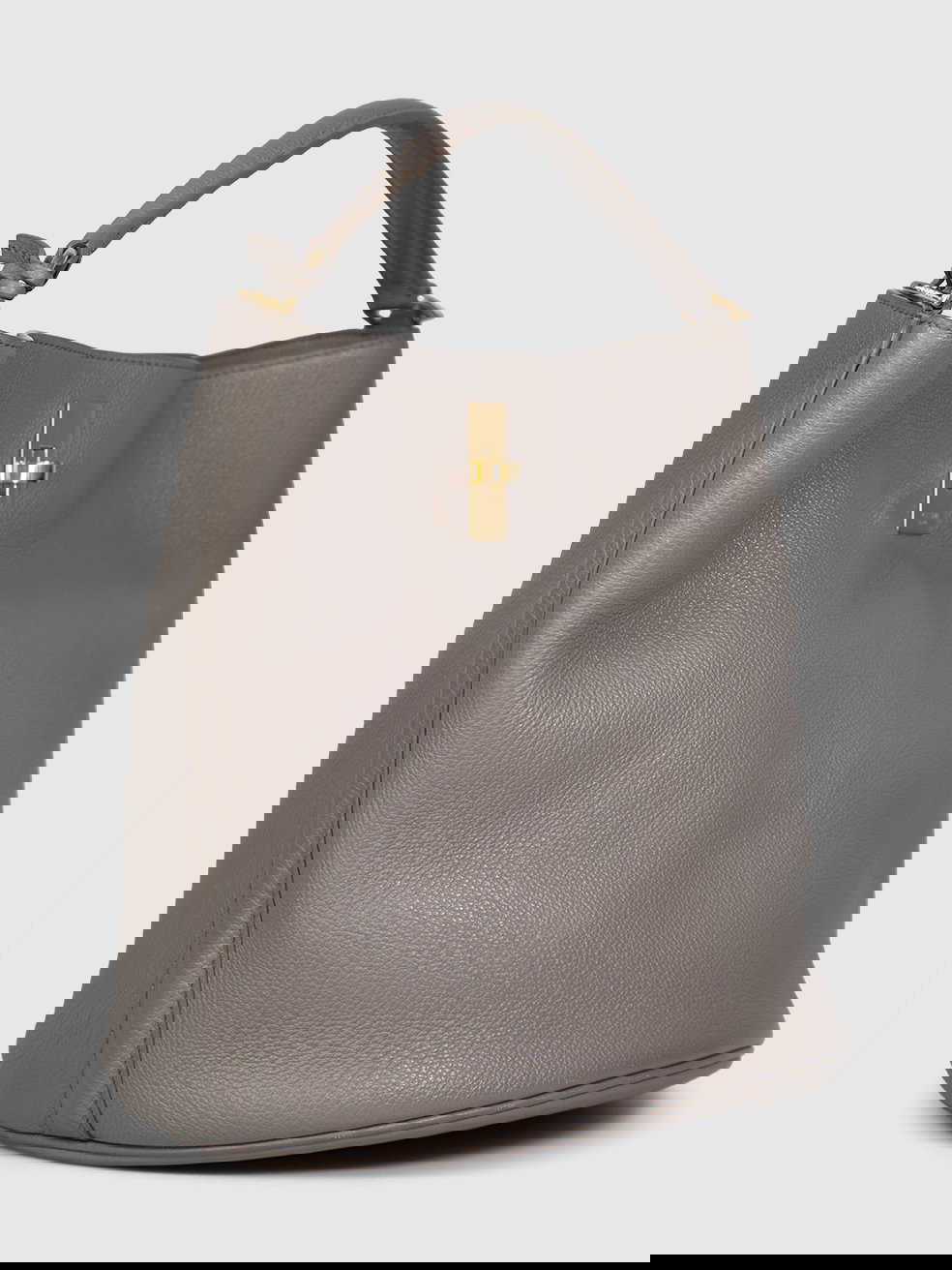 Grey bucket bag in excellent, pre-worn condition. See images for signs of wear. Turn lock fastening. Detachable strap. One main compartment with zip pouch. Composition: leather, interior: suede. Measurements: height 25cm, width 23cm, depth 23cm, handle 8cm, shoulder strap 48cm.