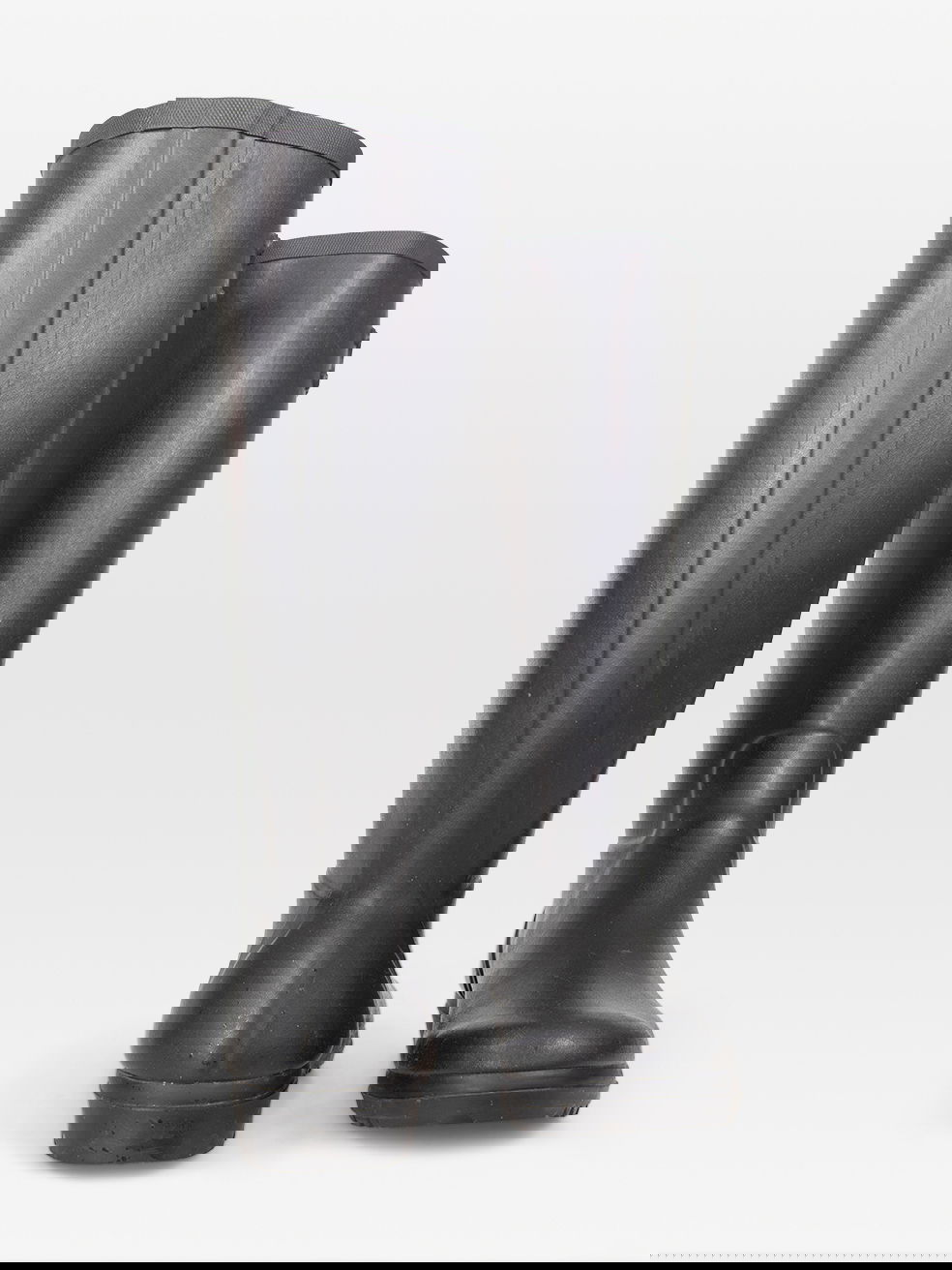 Black rubber wellington boots in excellent, pre-worn condition. See images for signs of wear. Composition: rubber, interior: cloth. Measurements: soles 280mm, sole width: 100mm, leg height (heel up) 410, calf circumference: 390mm.