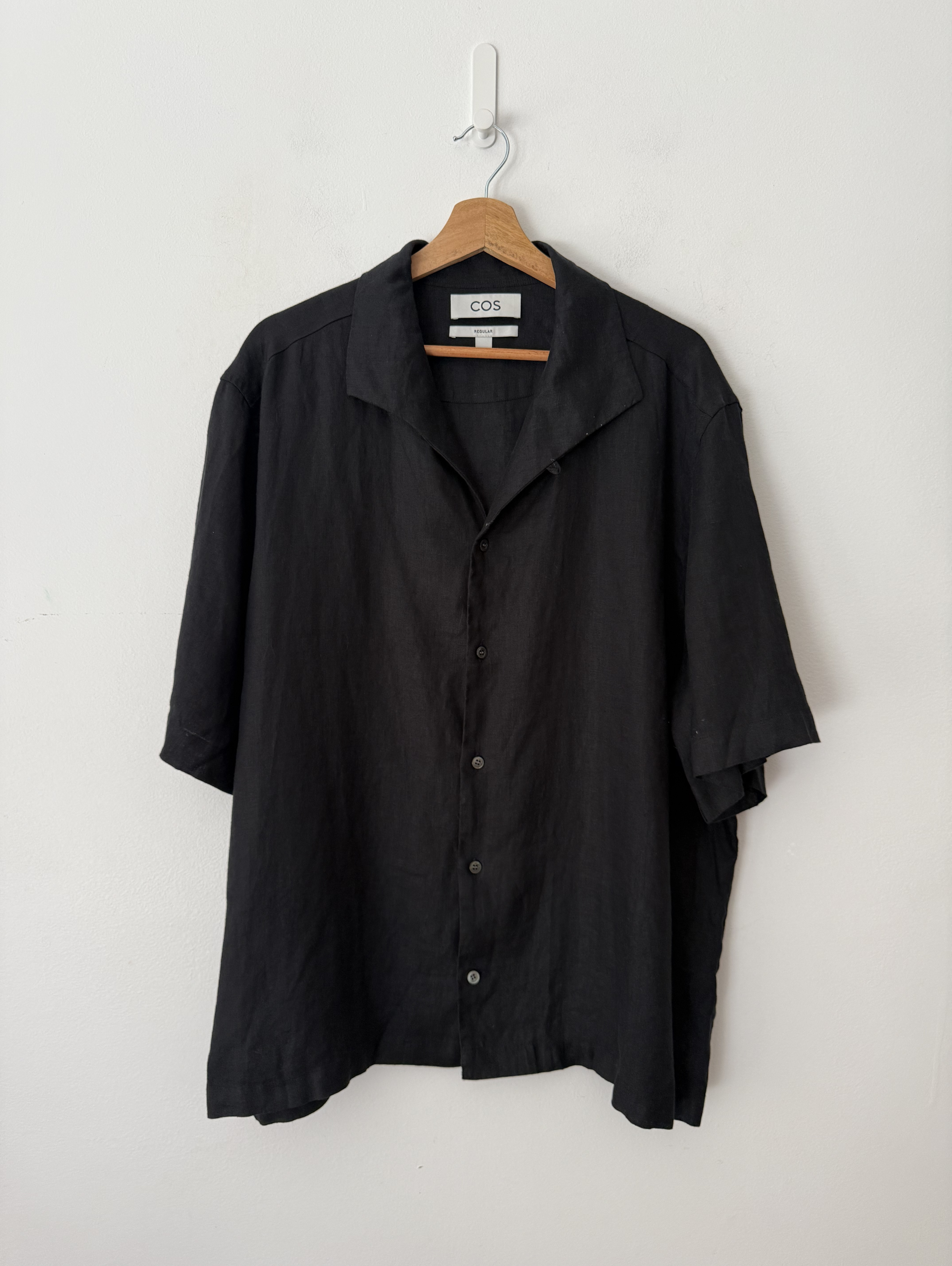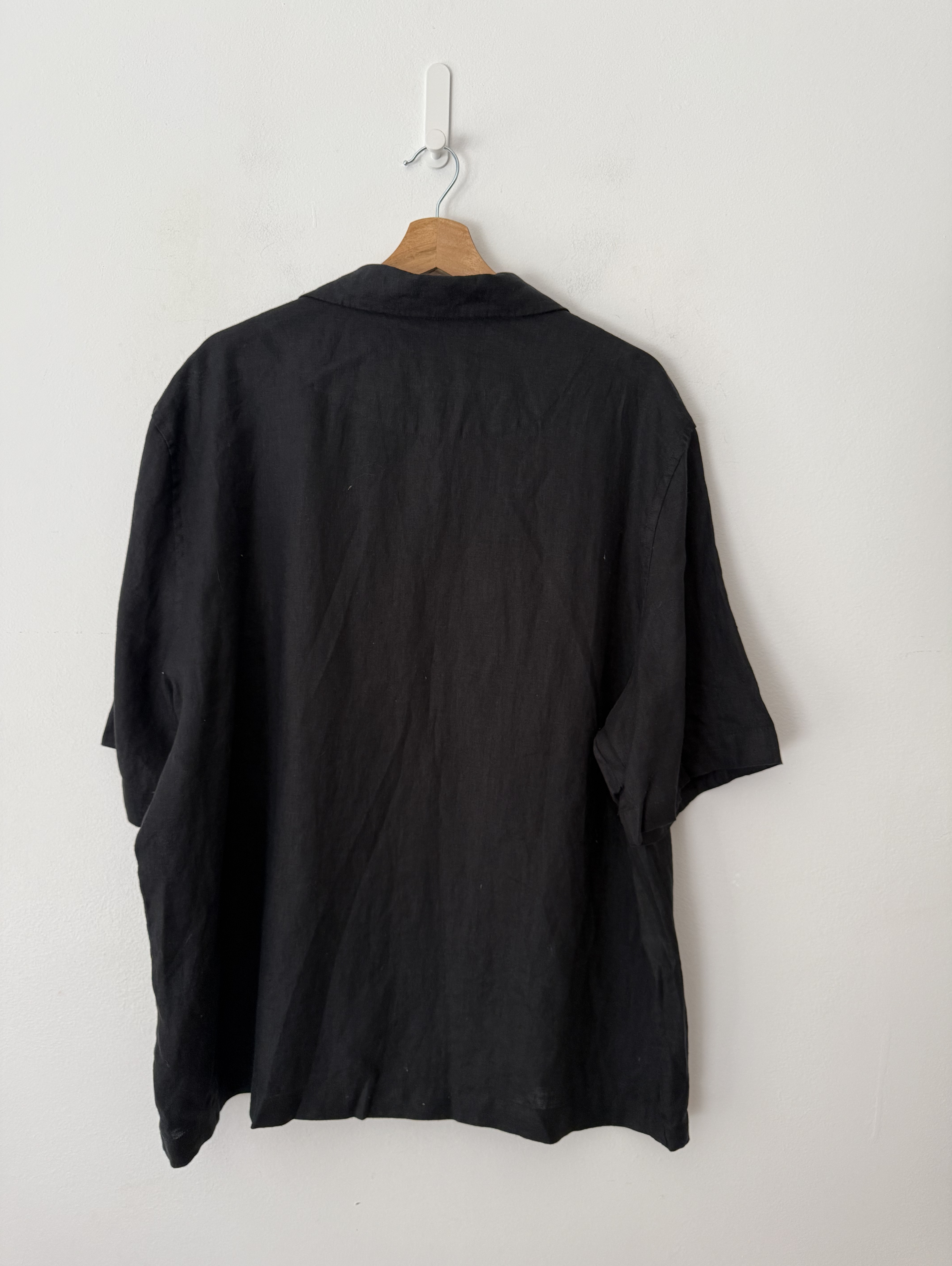 The linen shirt is a pillar of the menswear wardrobe. This short-sleeved piece is designed with an angular camp collar and closes with mother-of-pearl buttons. Style it for summer with shorts or trousers in a similar fabric.