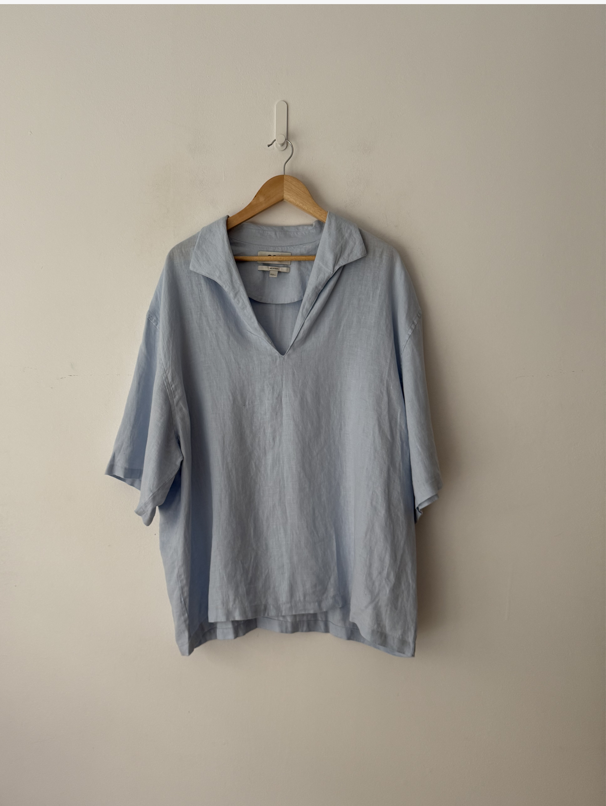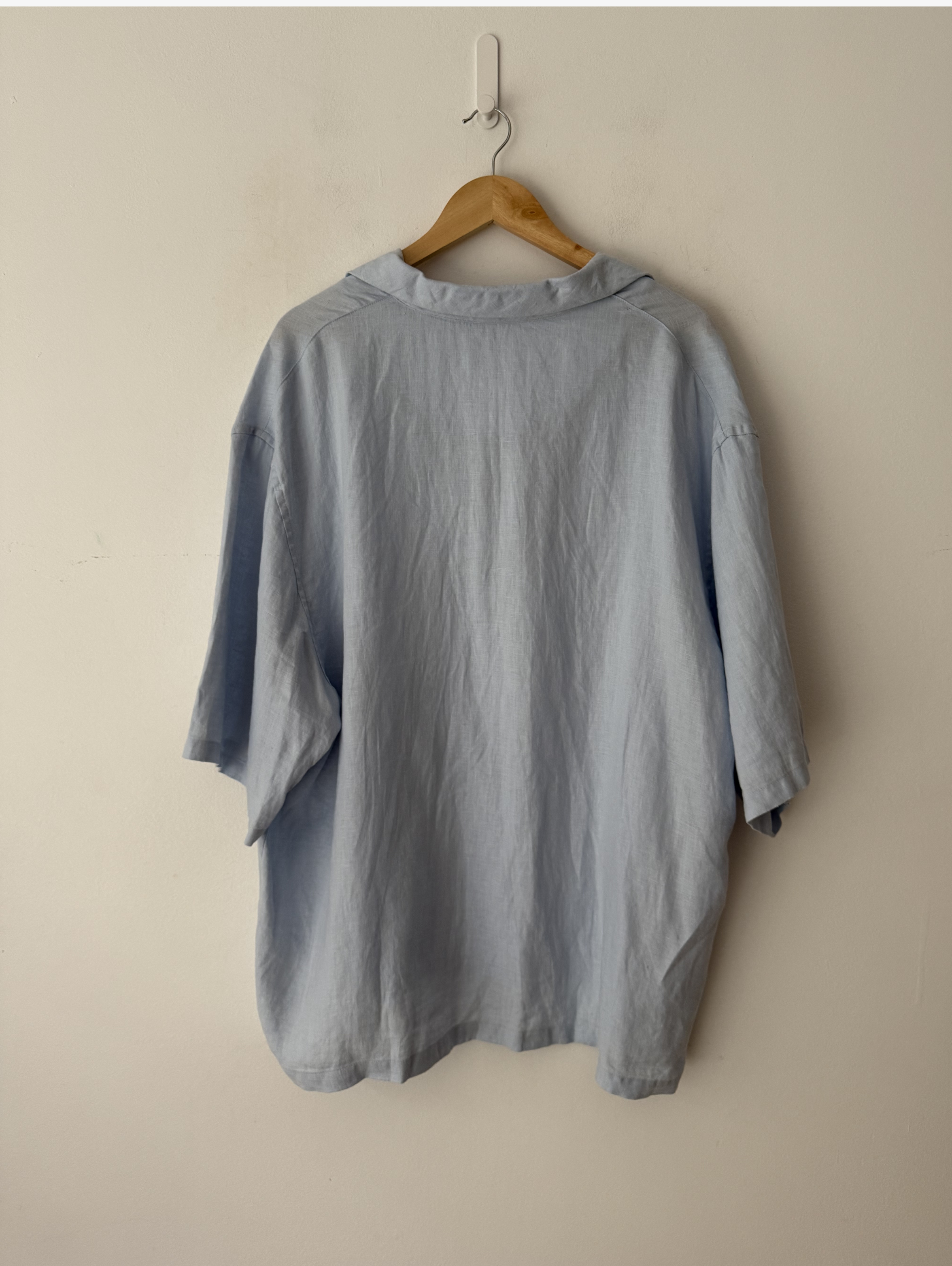 Crafted from light and tactile linen, this modern shirt features an effortless open collar, short sleeves and a relaxed fit. The light-blue hue is easy to wear – whether pared back with denim or styled with tailoring to offset the formality.