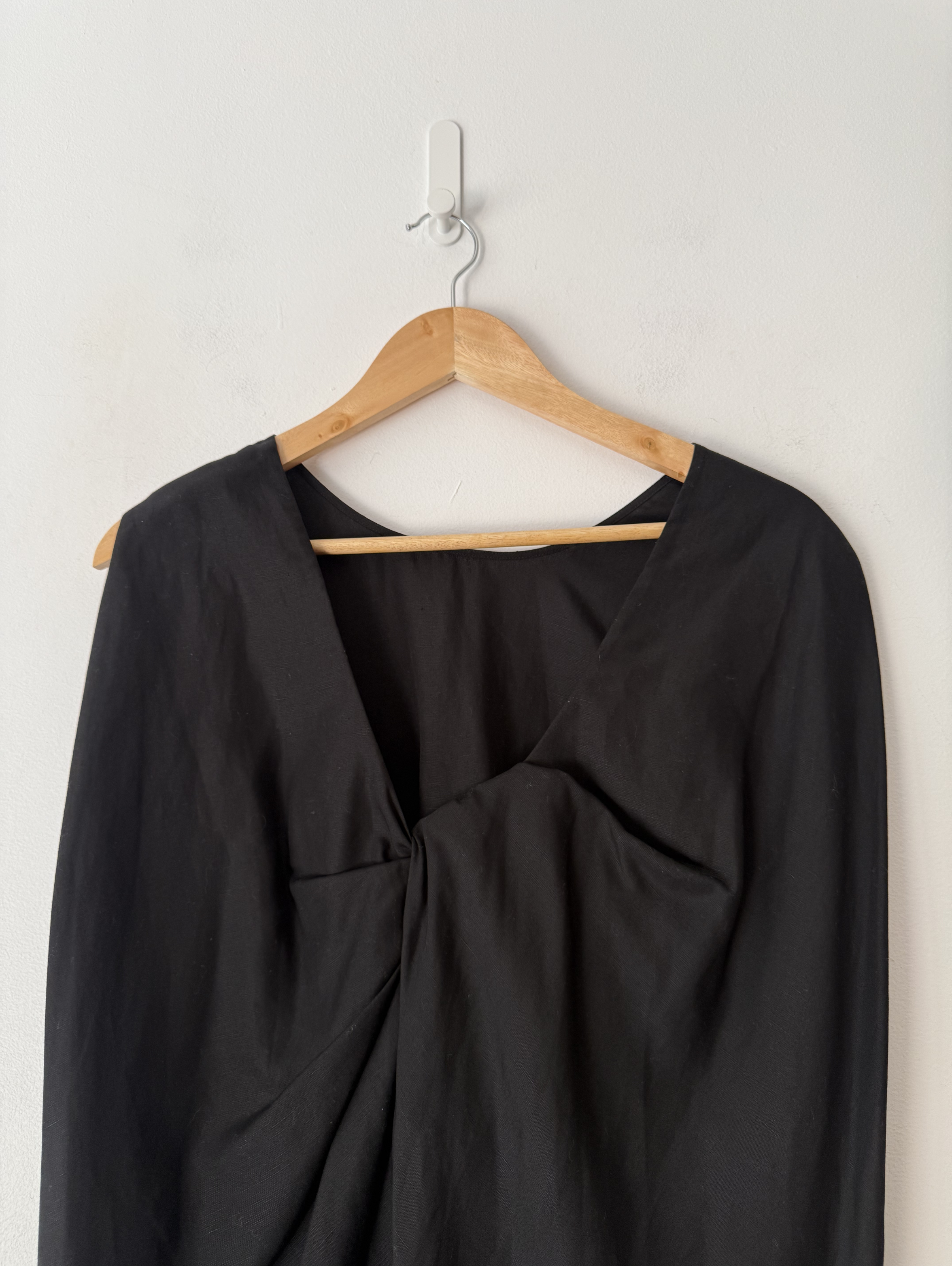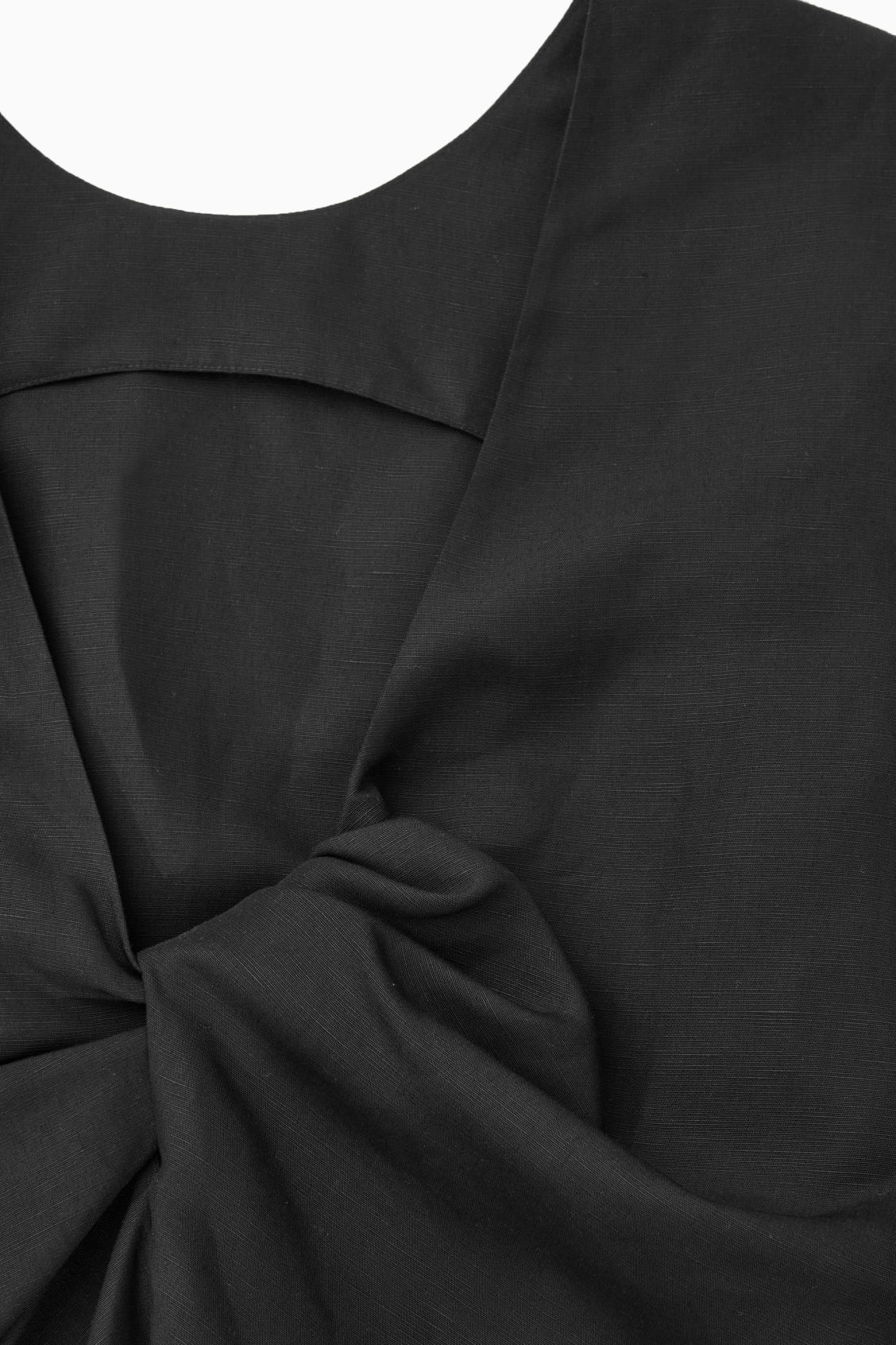 COS's Spring Summer 2023 collection spotlights wardrobe heroes interpreted through COS' modern lens. Case in point is this sleeveless top, which is understated from the front but turns to reveal a V-shaped, twisted back that's draped and gathered for a voluminous shape. It's crafted from a floaty blend of TENCEL™ Lyocell and linen that's ideal for summer.