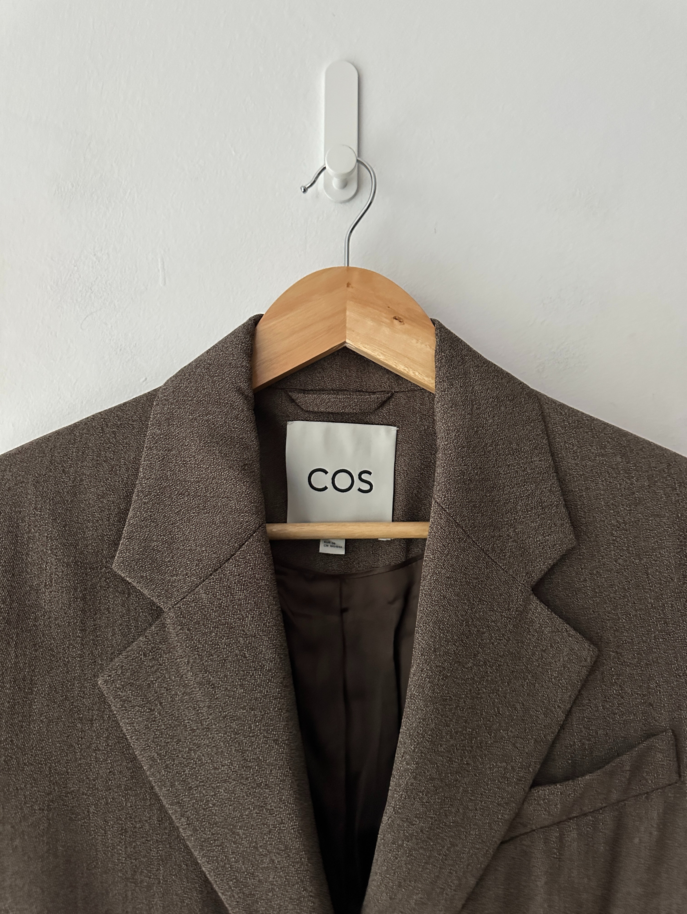 A refined, classic longline silhouette featuring a notched lapel collar, long sleeves with buttoned cuffs, and flap pockets.