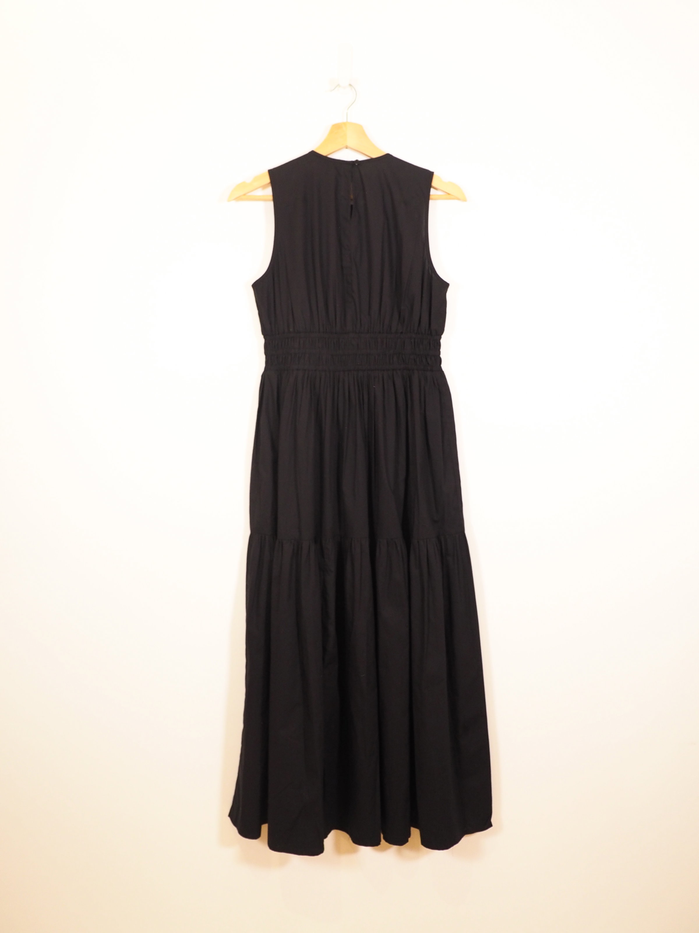 This season we’re really into shirring. Designed to gently cinch you in at the waist, Elora is covered in soft gathers that cascade into a tiered skirt that’s so easy to wear. She’s made from organic cotton poplin in classic black. Cut to a midaxi length, the shape is relaxed so we’d recommend sizing down if you want a more fitted look. The only thing left to do now is book a holiday.