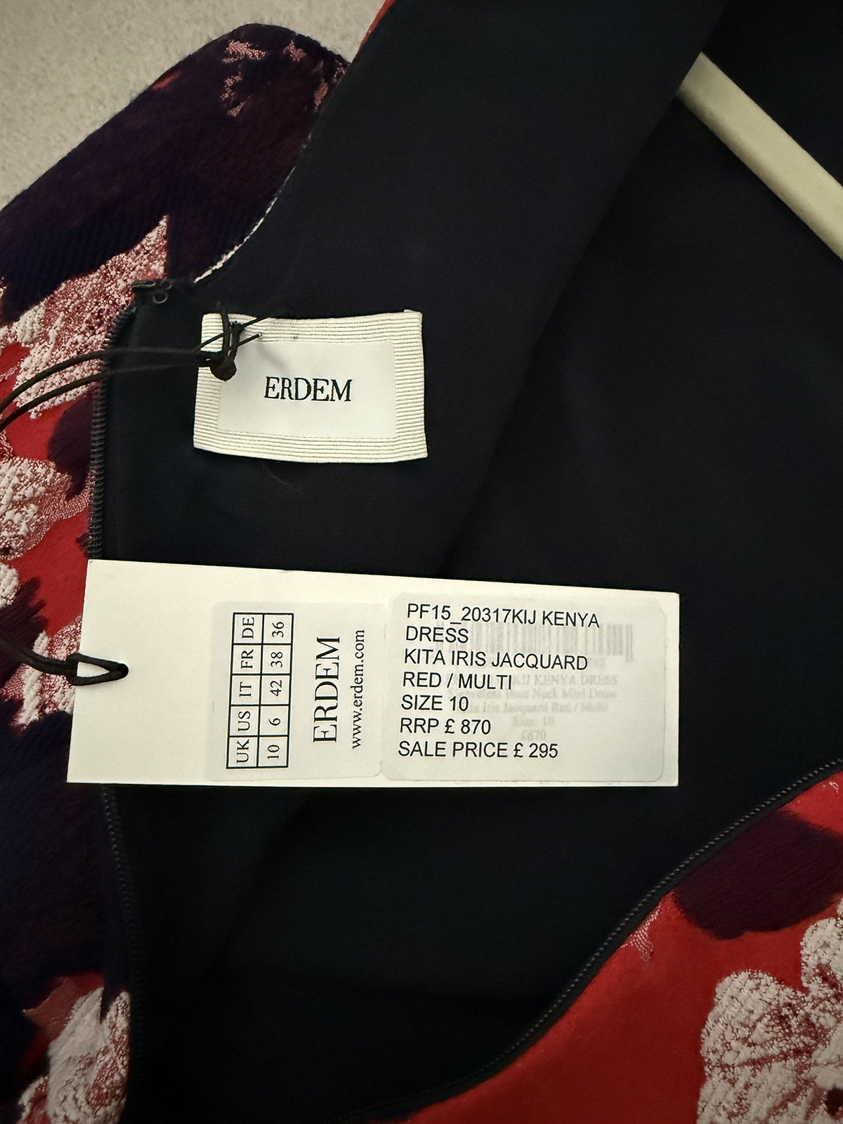 Erdem Kenya dress in Kita Iris Jacquard. Composition: Outer 62%, acrylic 16%, polyester, 13% acetate 9% polyamide; Lining: 100% silk Size: UK10 Retail price: £870