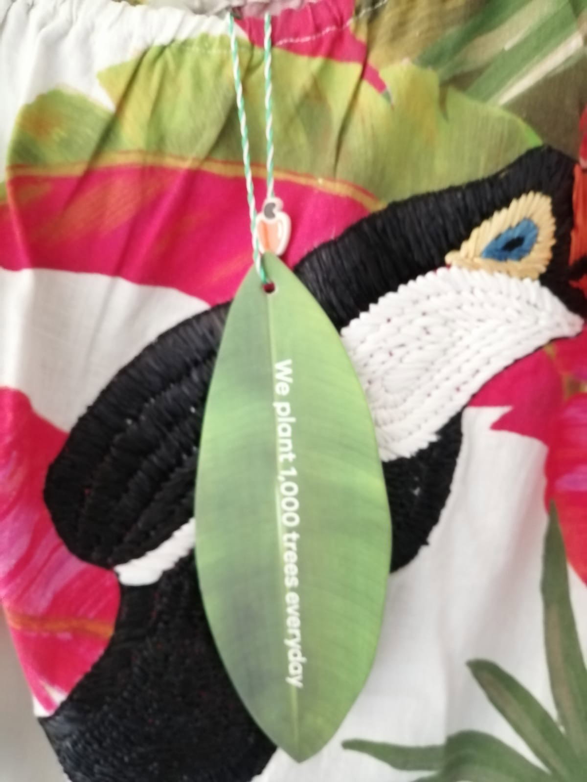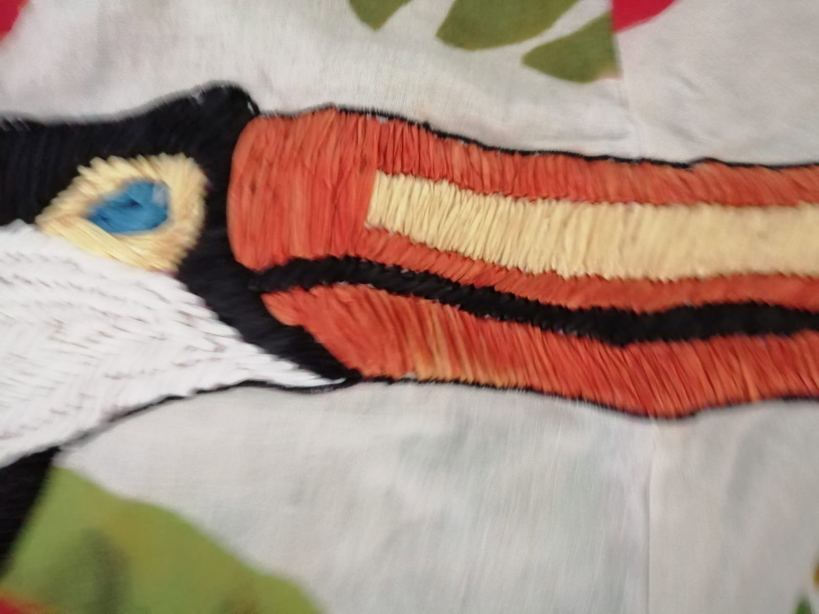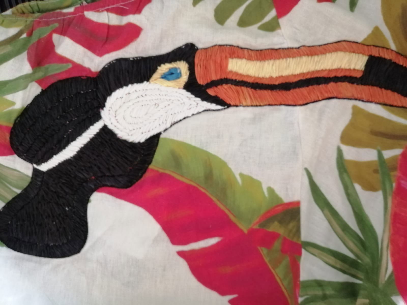 One shouldered embroidered toucan linen-mix blouse. Elasticated cuff and slip-on design.