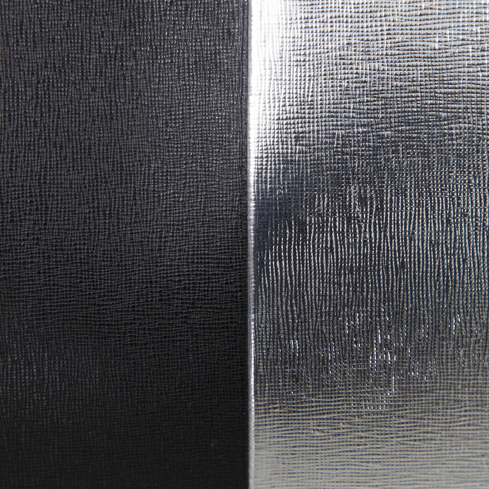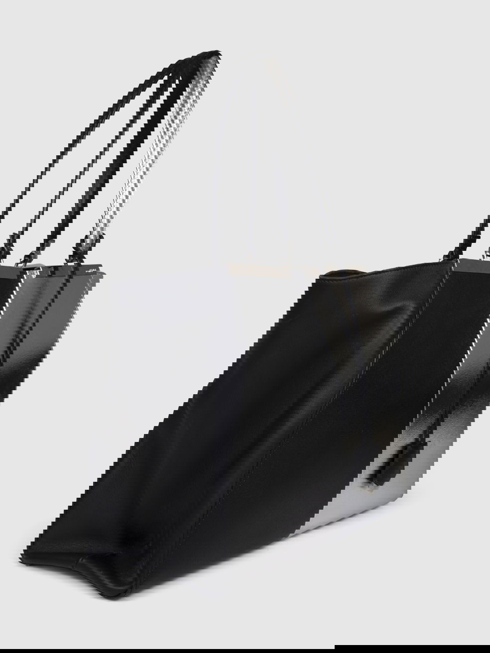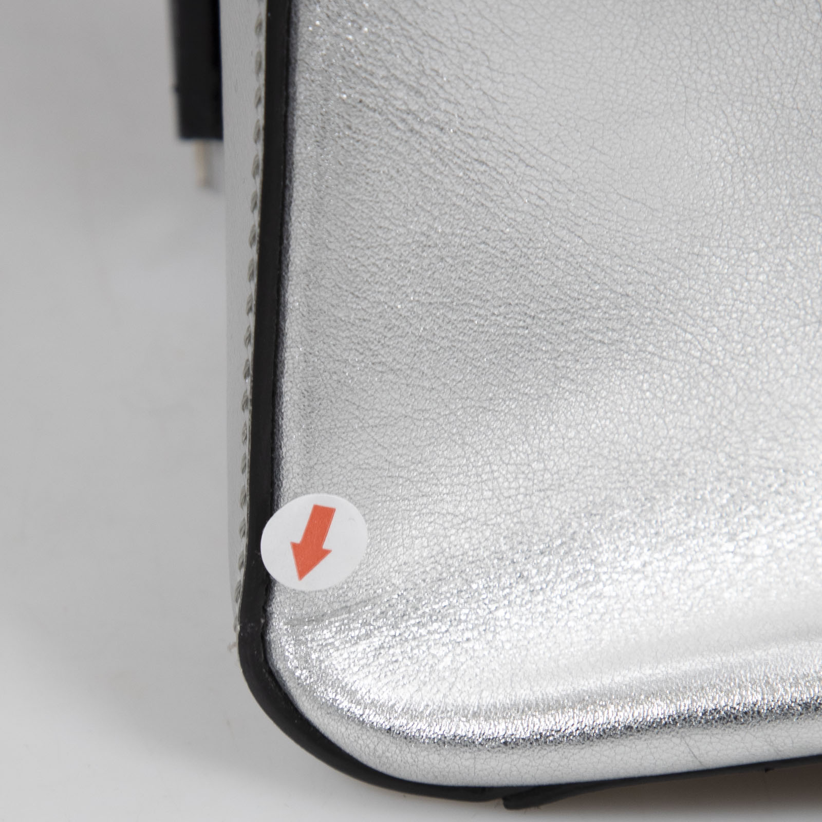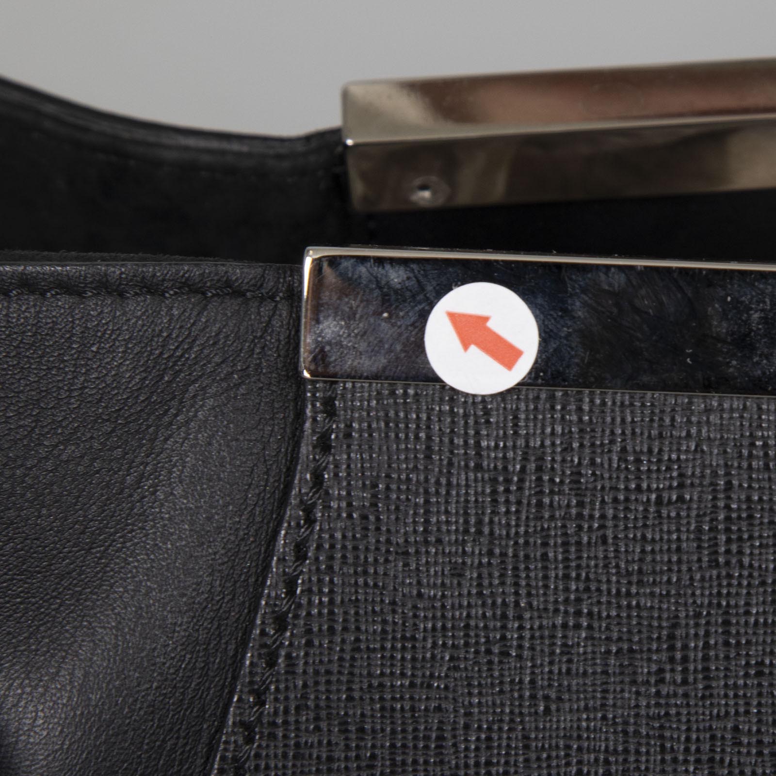 Black and silver leather tote bag in excellent, pre-worn condition. See images for signs of wear. Main compartment with snap button fastening, two internal slip pockets, one internal zip pocket. Composition: leather, interior: suede. Height: 30cm, width: 36cm, depth: 17cm, handle height: 17cm.