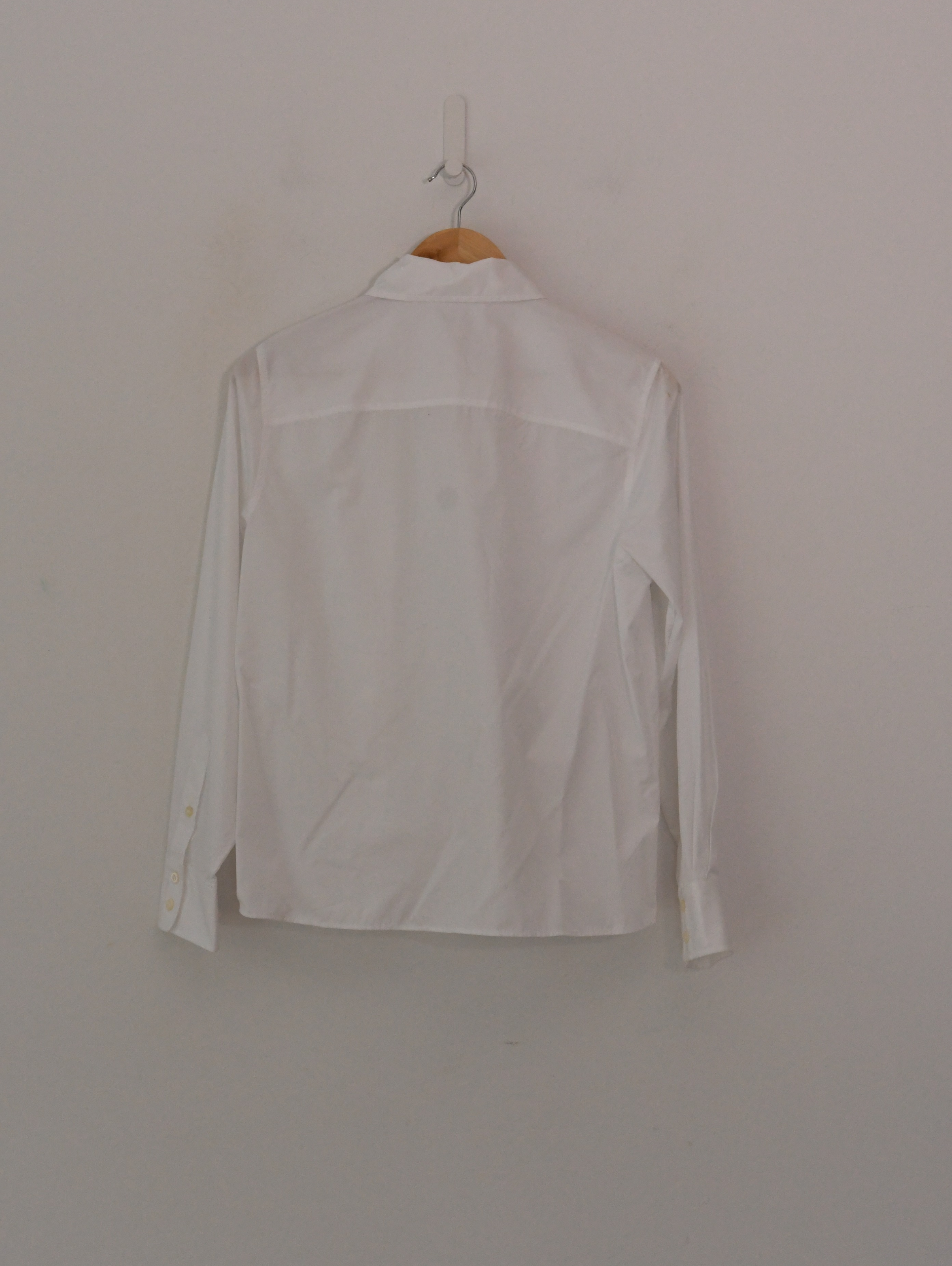 Regular fit, exaggerated collar, long sleeves, buttoned sleeve hems, soft gather at shoulders, straight yoke at back, straight hem.