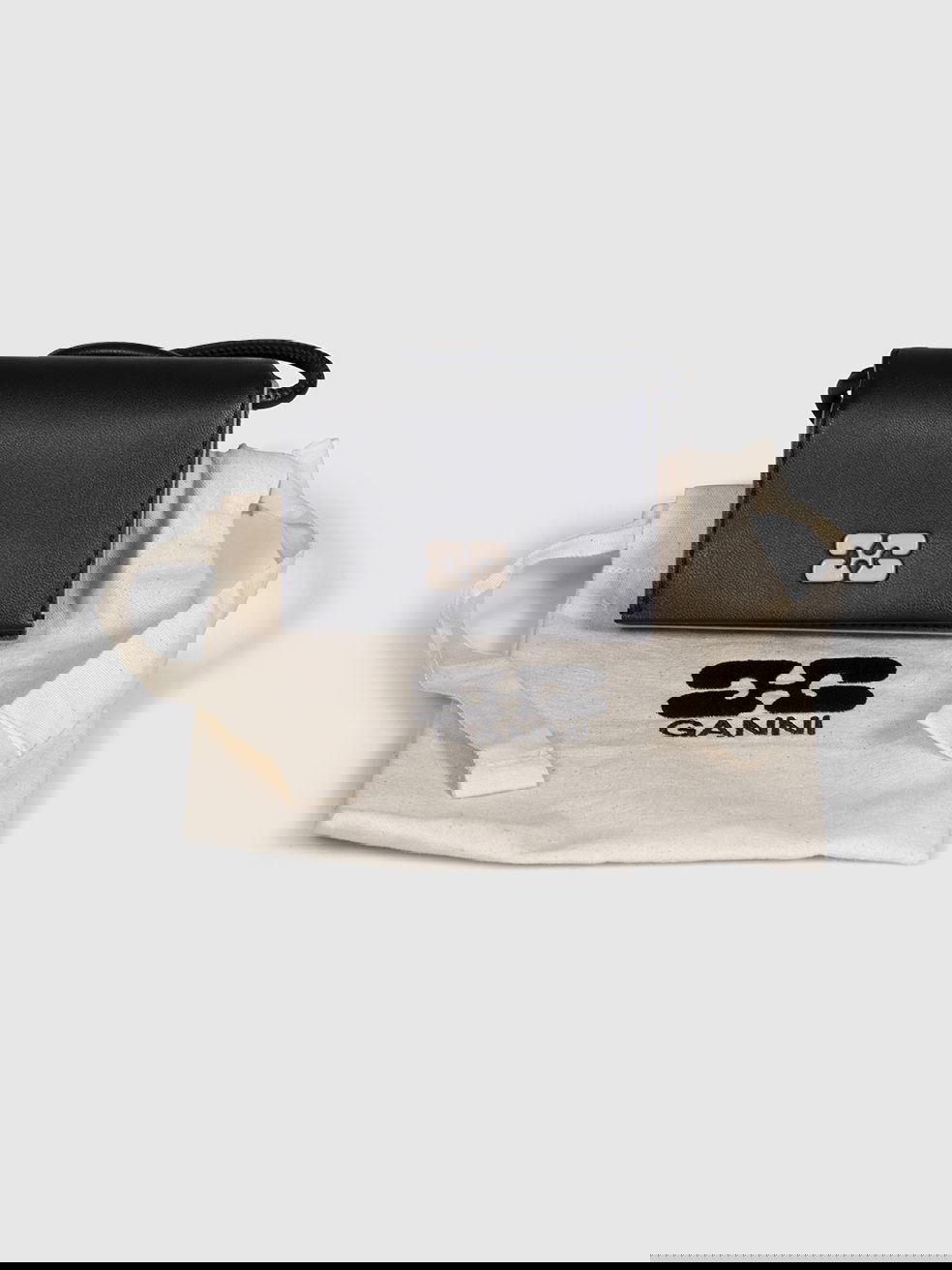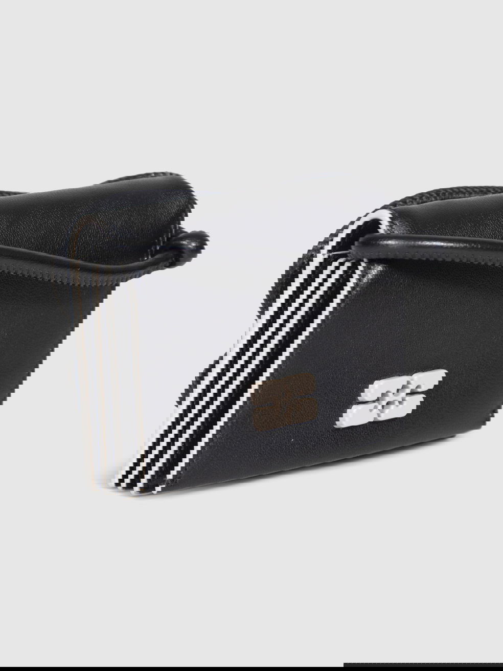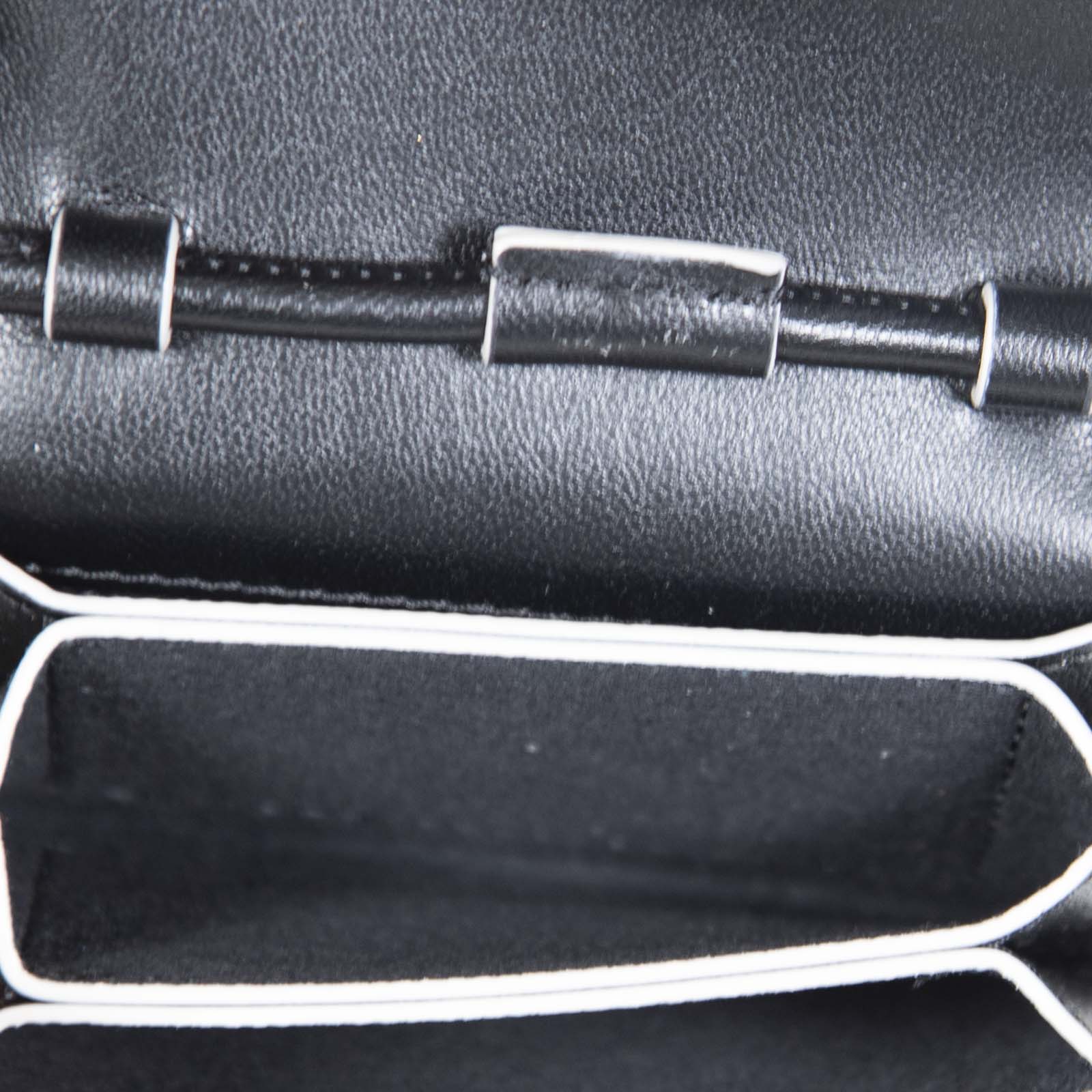 Black leather card holder with strap, in excellent, pre-worn condition. See images for signs of wear. Flap with snap button. Three compartments. Composition: 100% leather. Height: 7cm, width: 10cm, depth: 2cm, shoulder strap: 50cm.