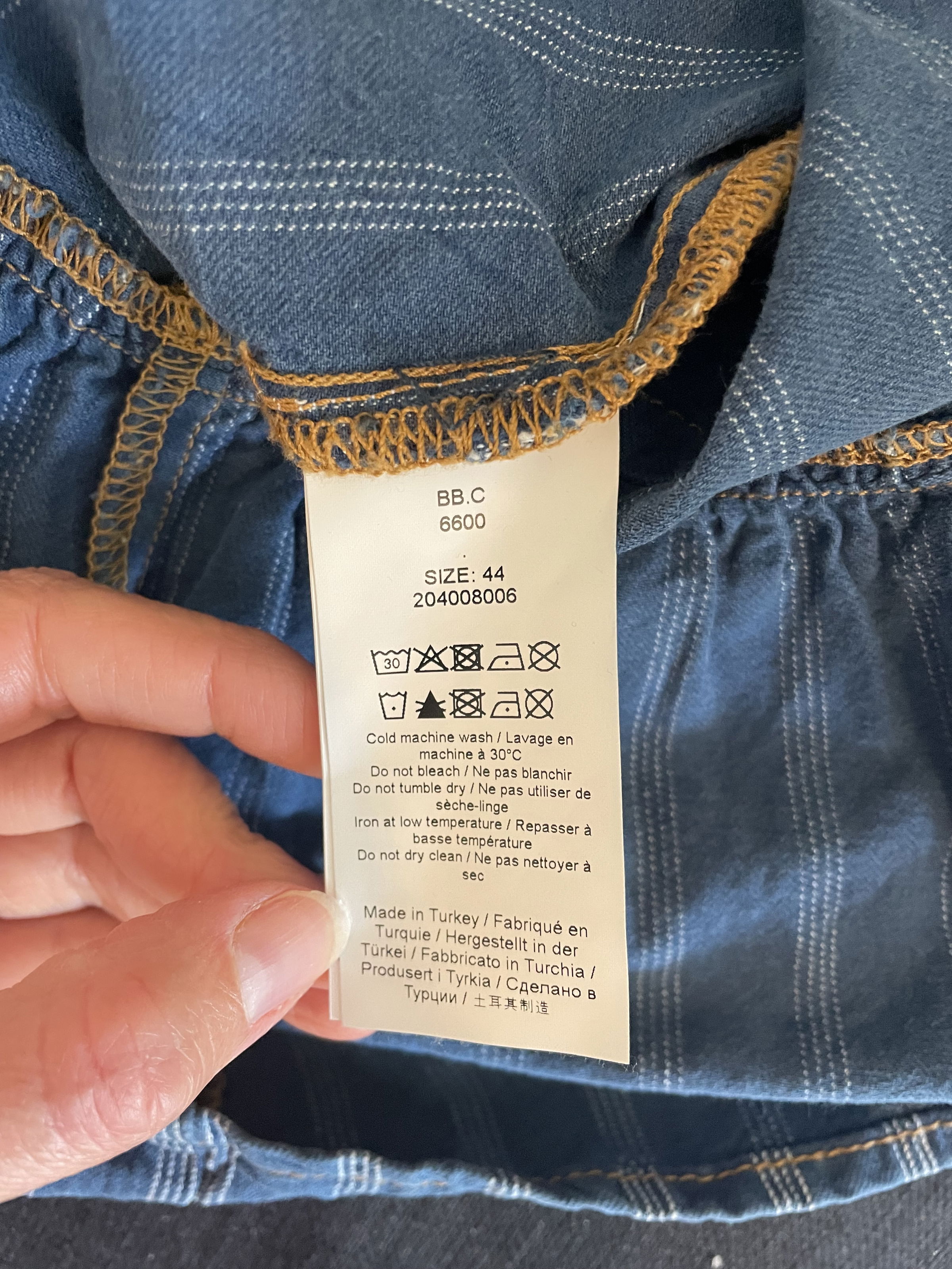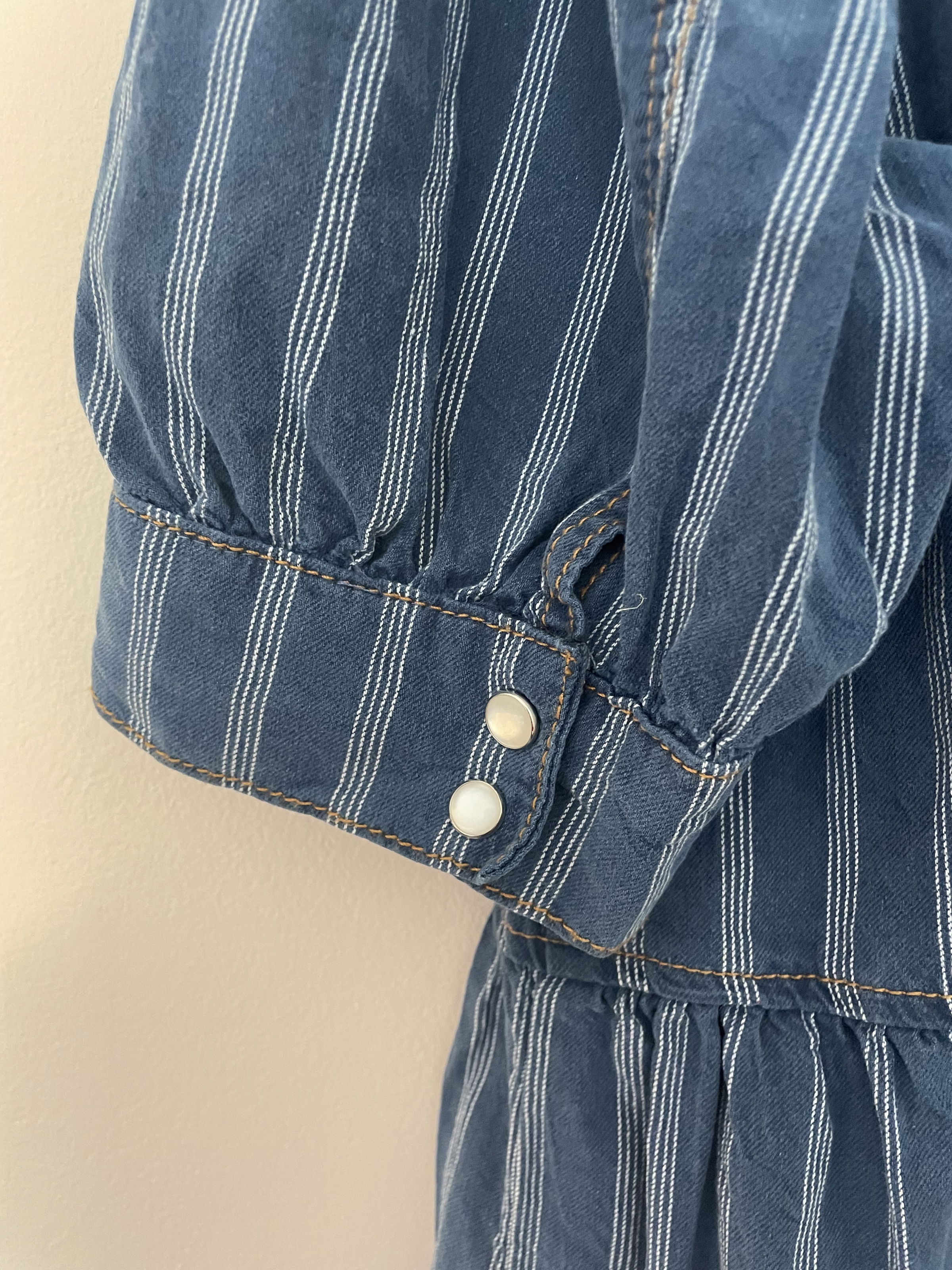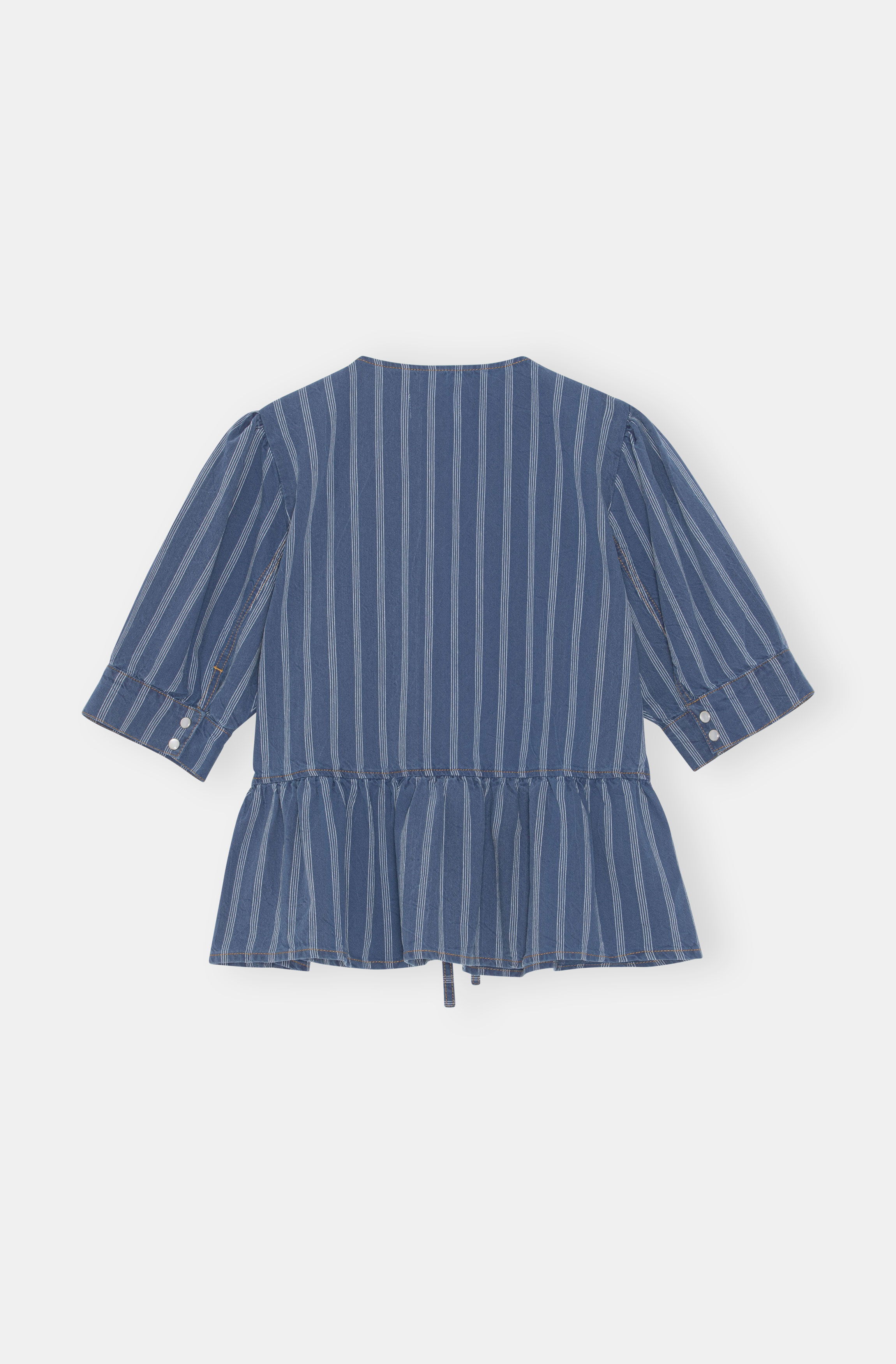 Ganni tie front peplum blouse in really nice soft denim with white ticking stripe. Really great iconic Ganni style. Hardly worn so in great condition.