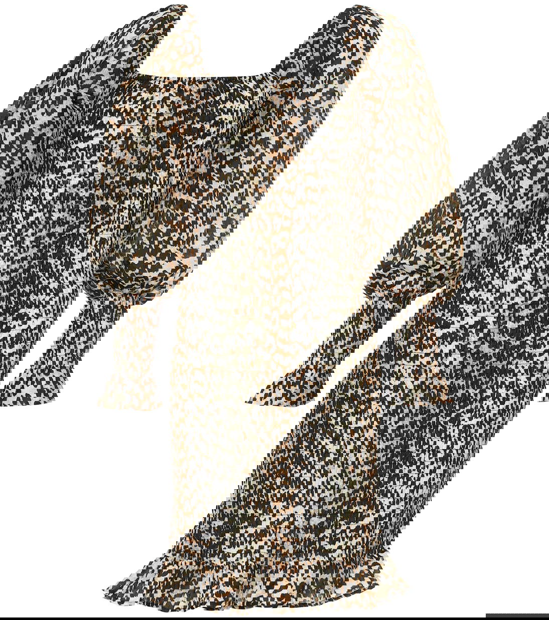 This Denim Peplum Blouse is made from certified organic cotton. The blouse features an open round neckline with tie closures and slightly puff sleeves with snap buttons. Designed for a straight fit with a peplum silhouette.