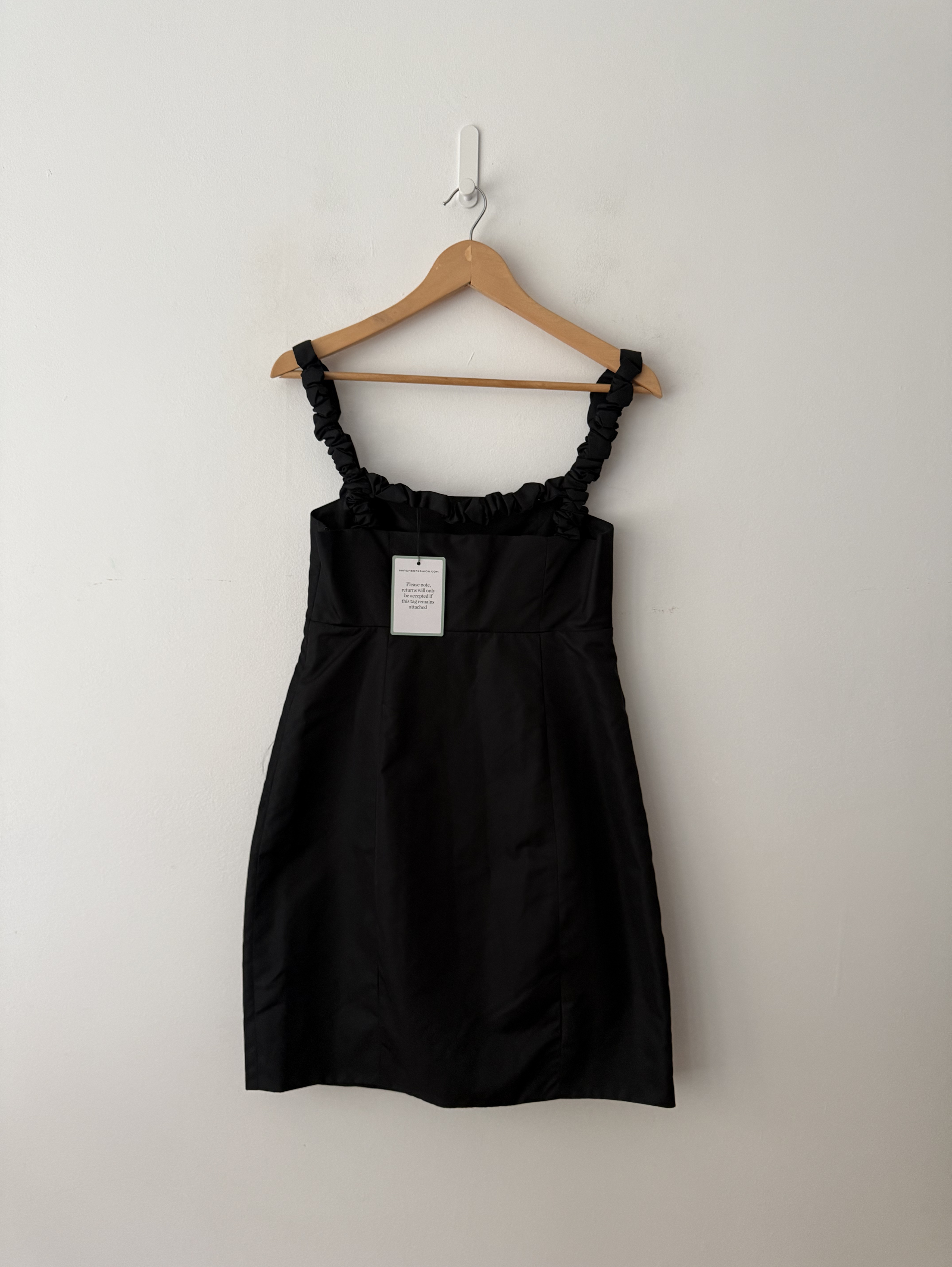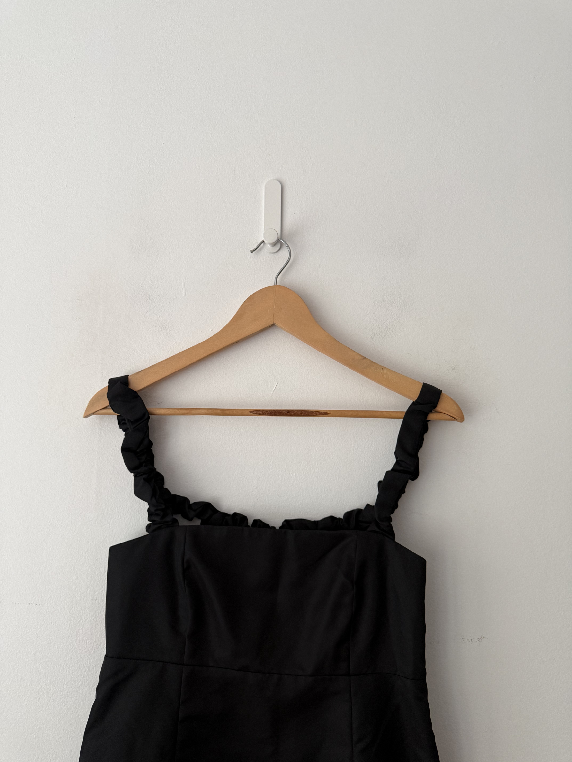 Black Mini Cocktail Dress with Ruched Spaghetti Straps.