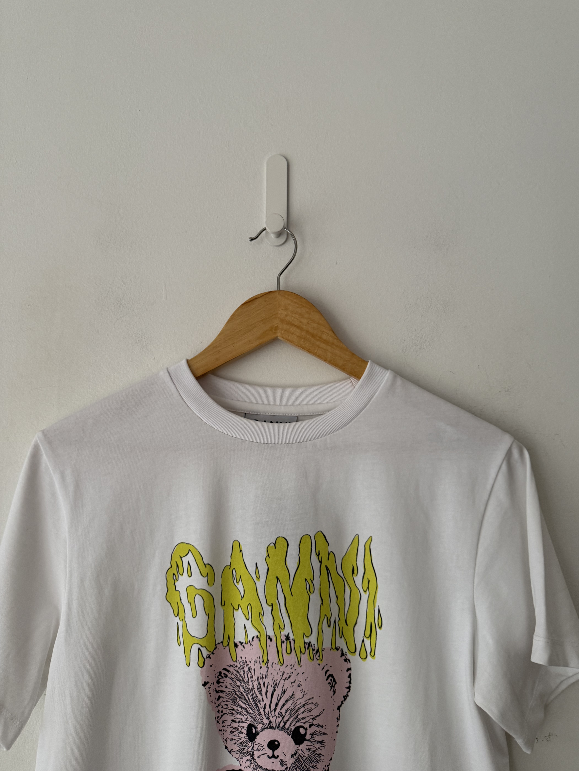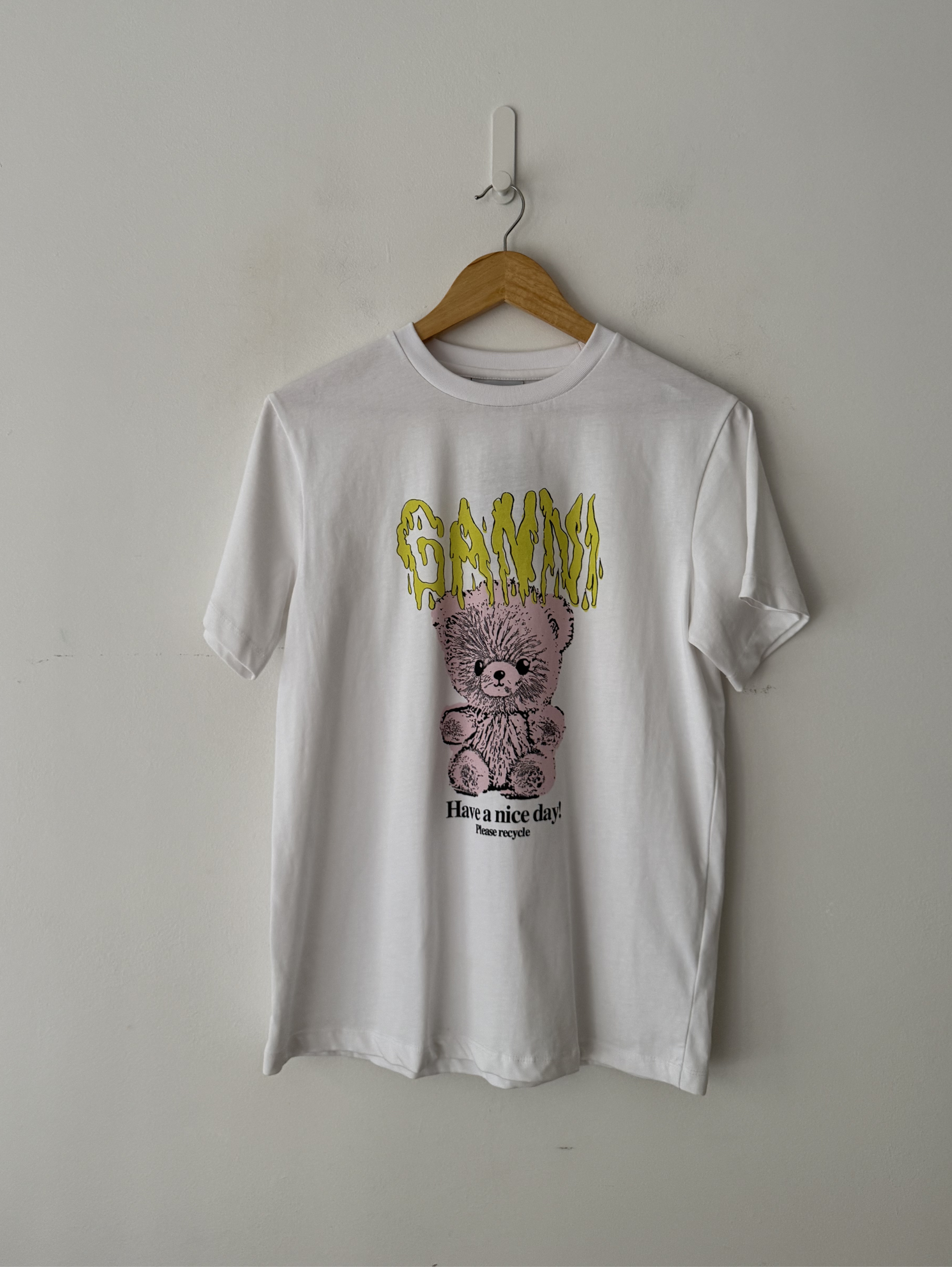 100% organic cotton, crew neck with short sleeves and teddy bear logo.
