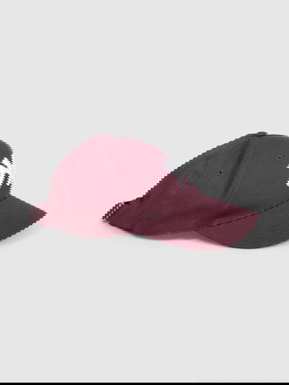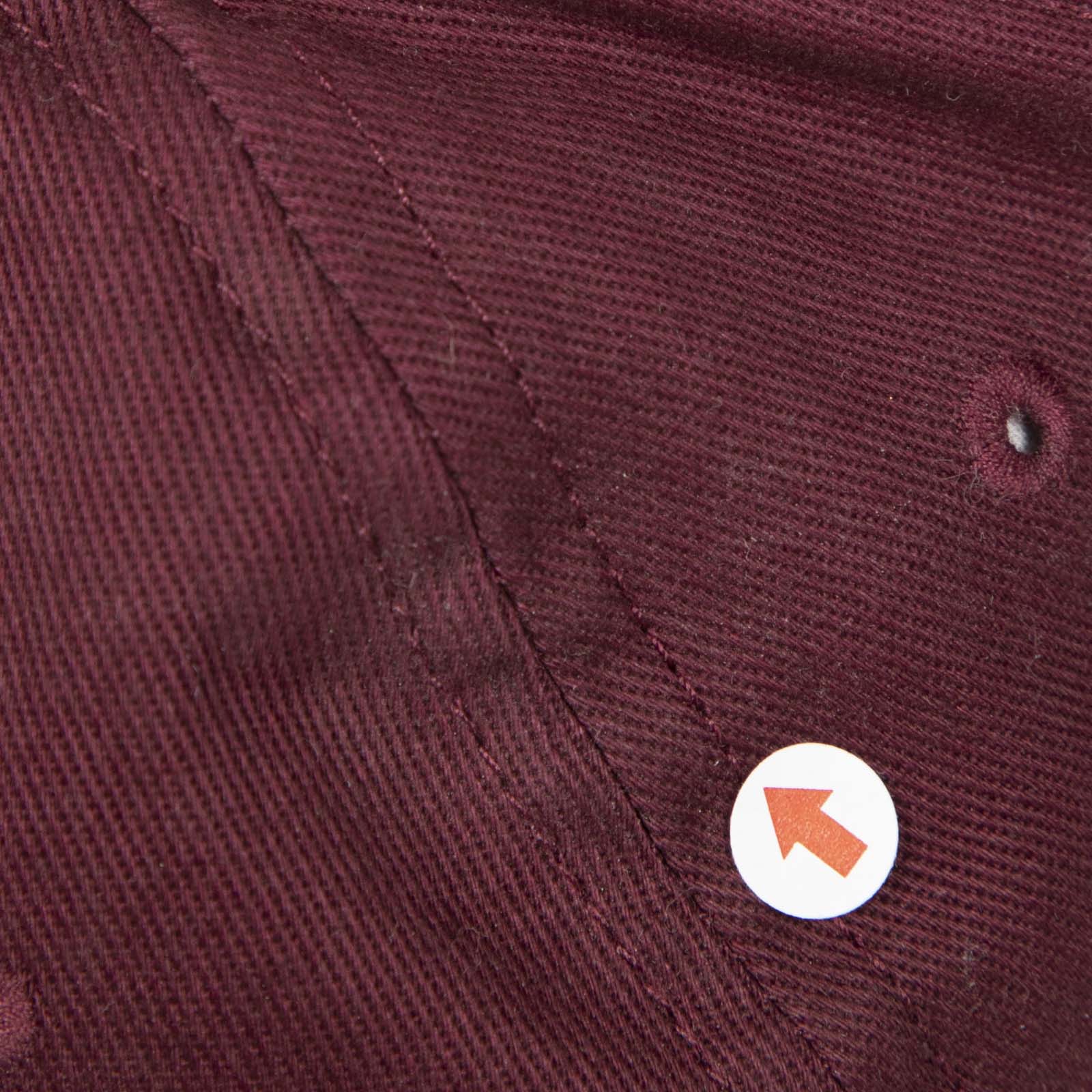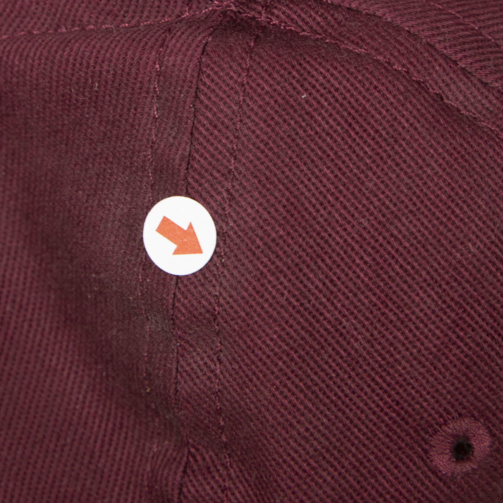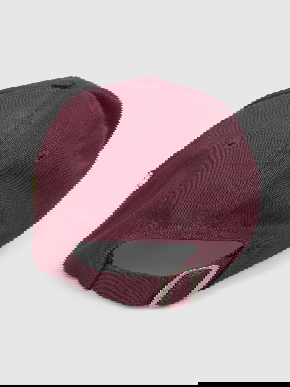 Burgundy baseball cap in excellent, pre-worn condition. See images for signs of wear. Adjustable back. Composition: 100% cotton. Measurements: circumference 61cm, brim length 8cm, brim width 18cm, height 13cm.