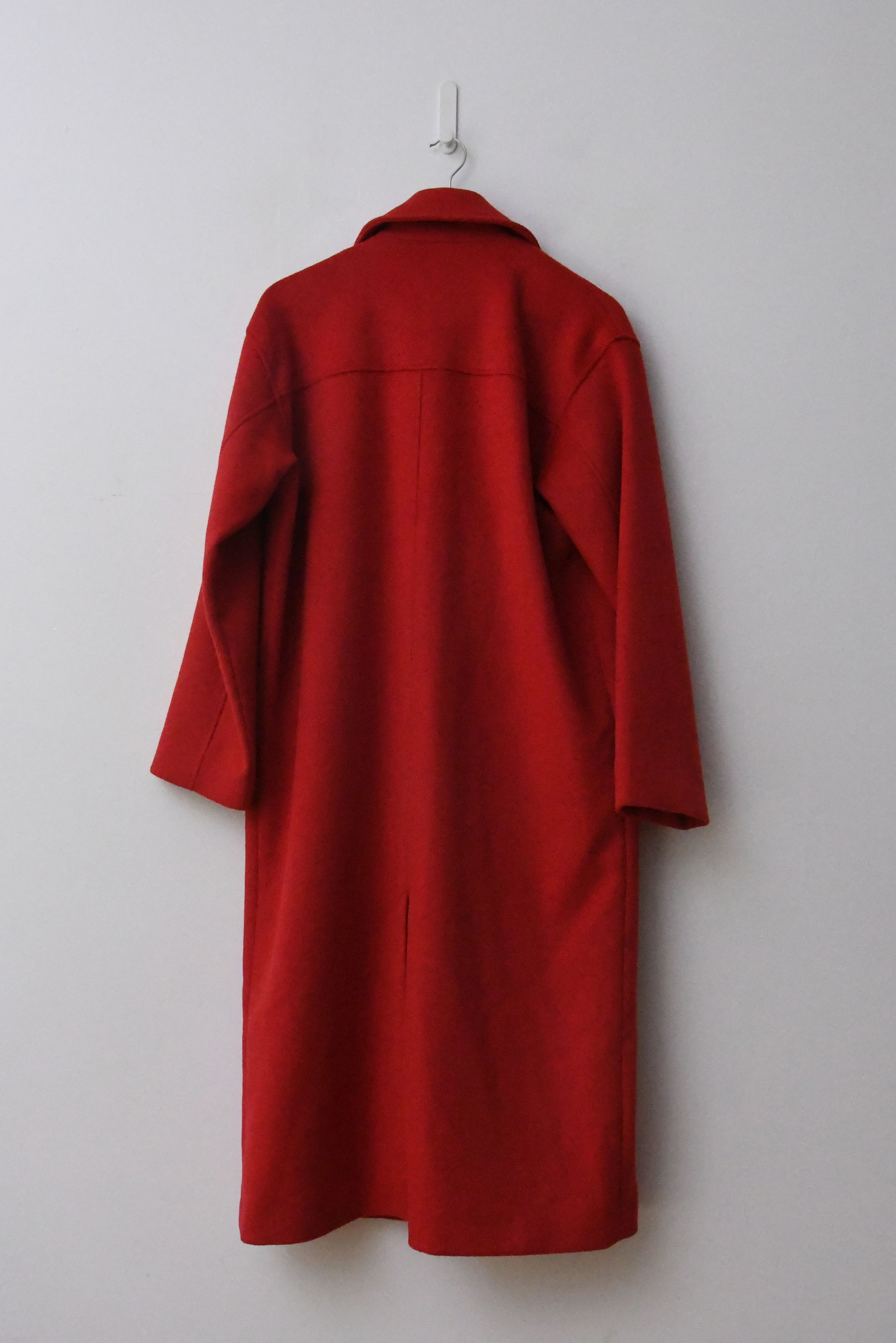 Button through relaxed Cocoon Coat. Four front patch pockets. Dry Clean Only.