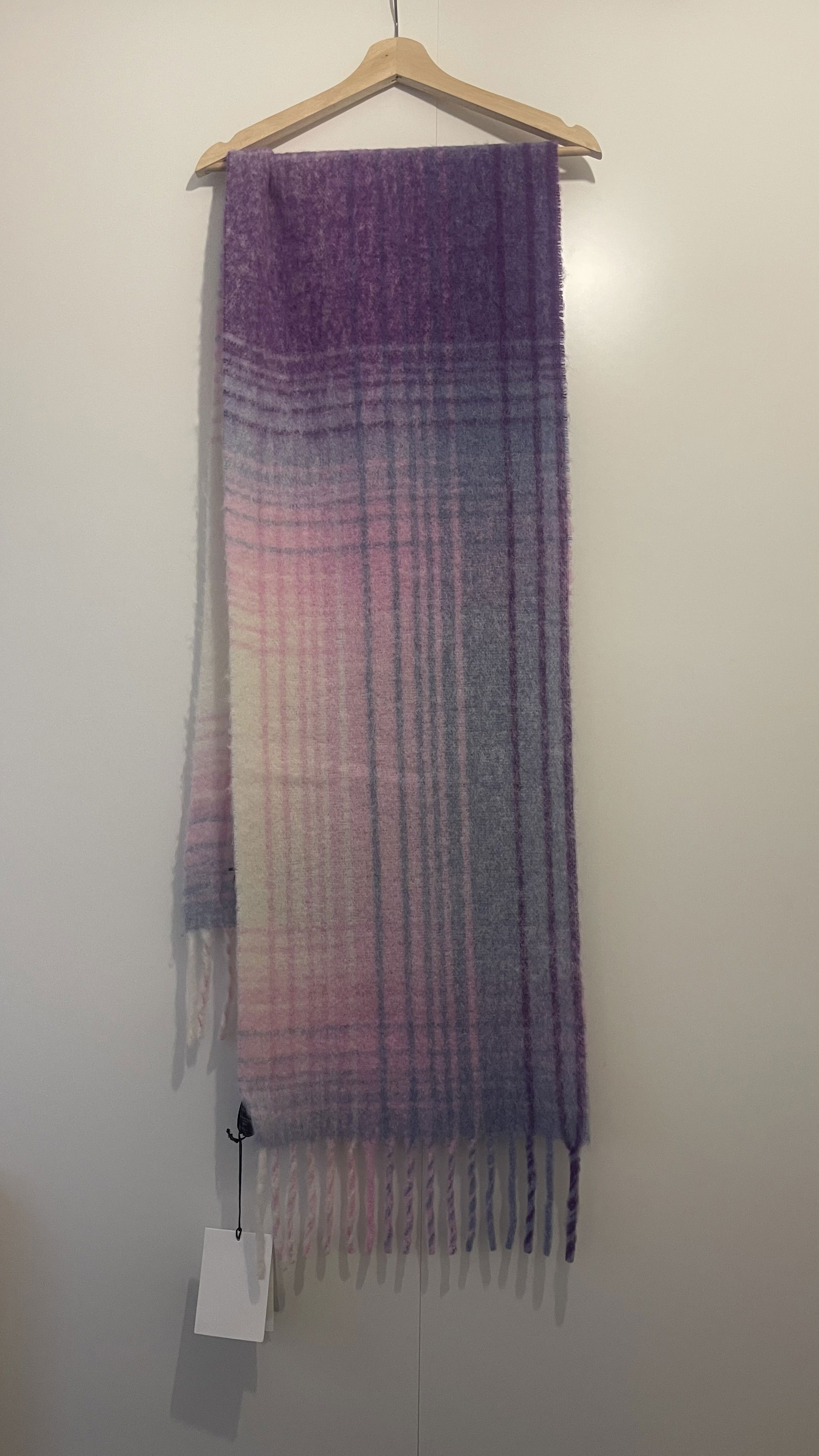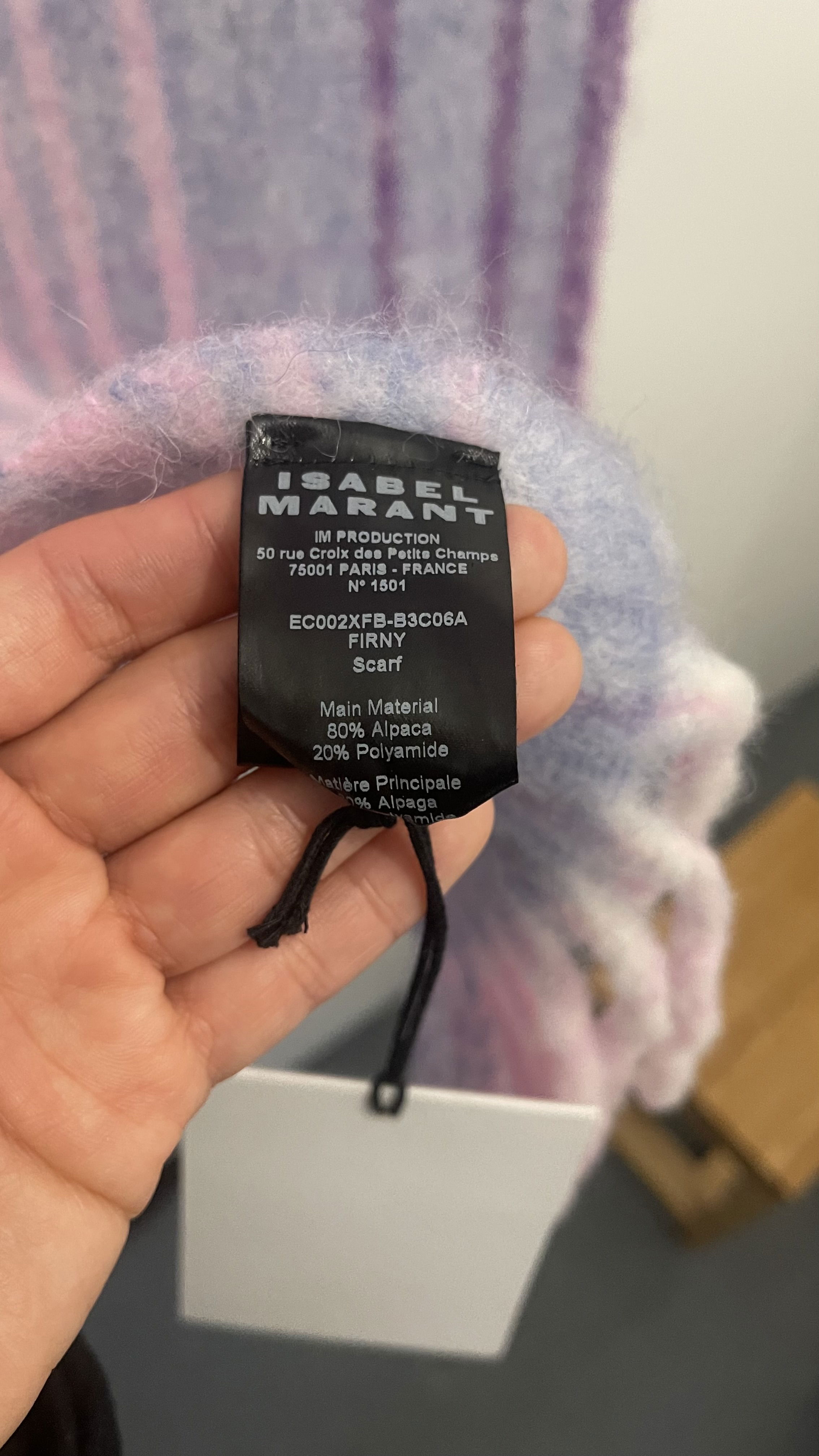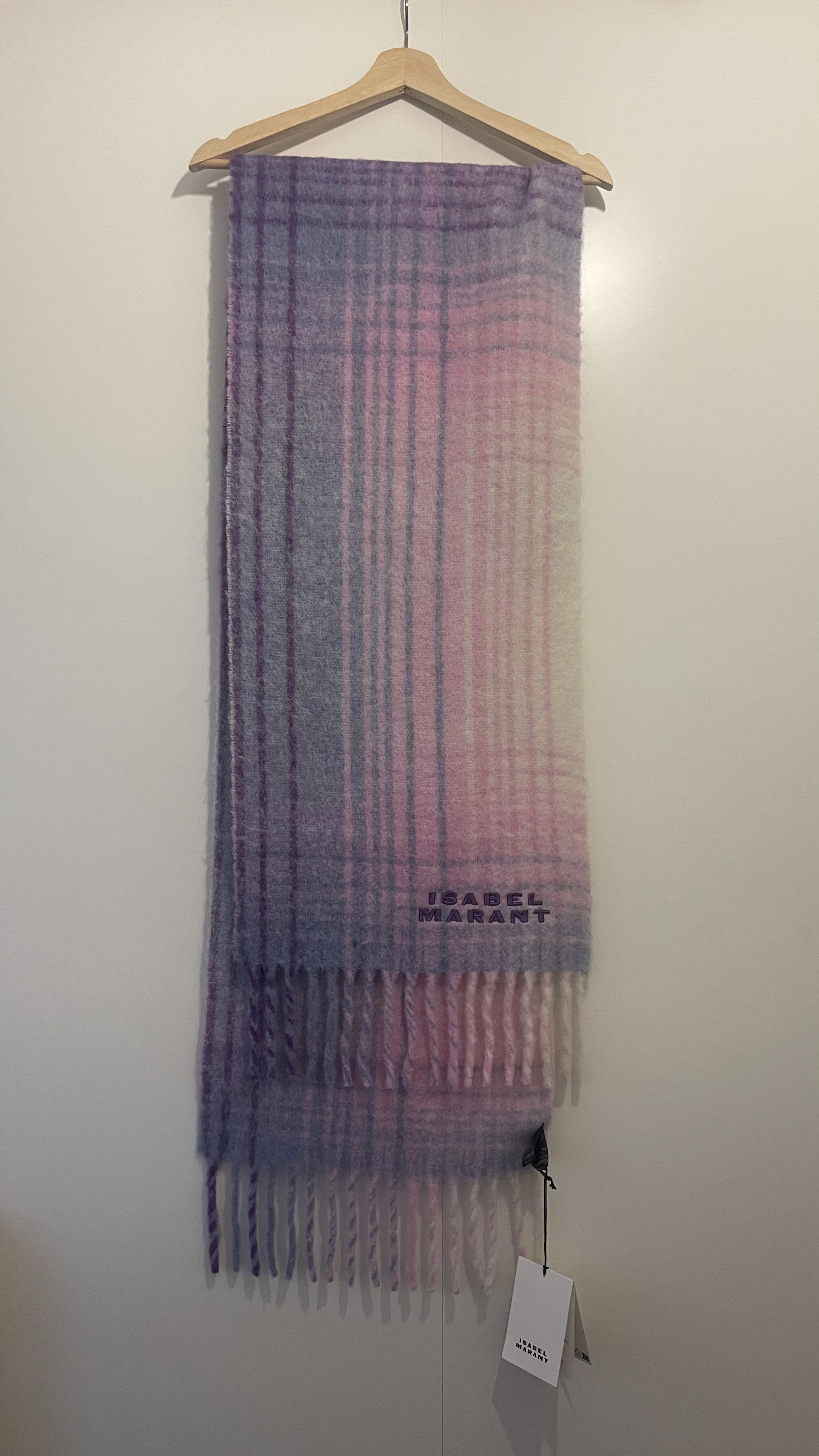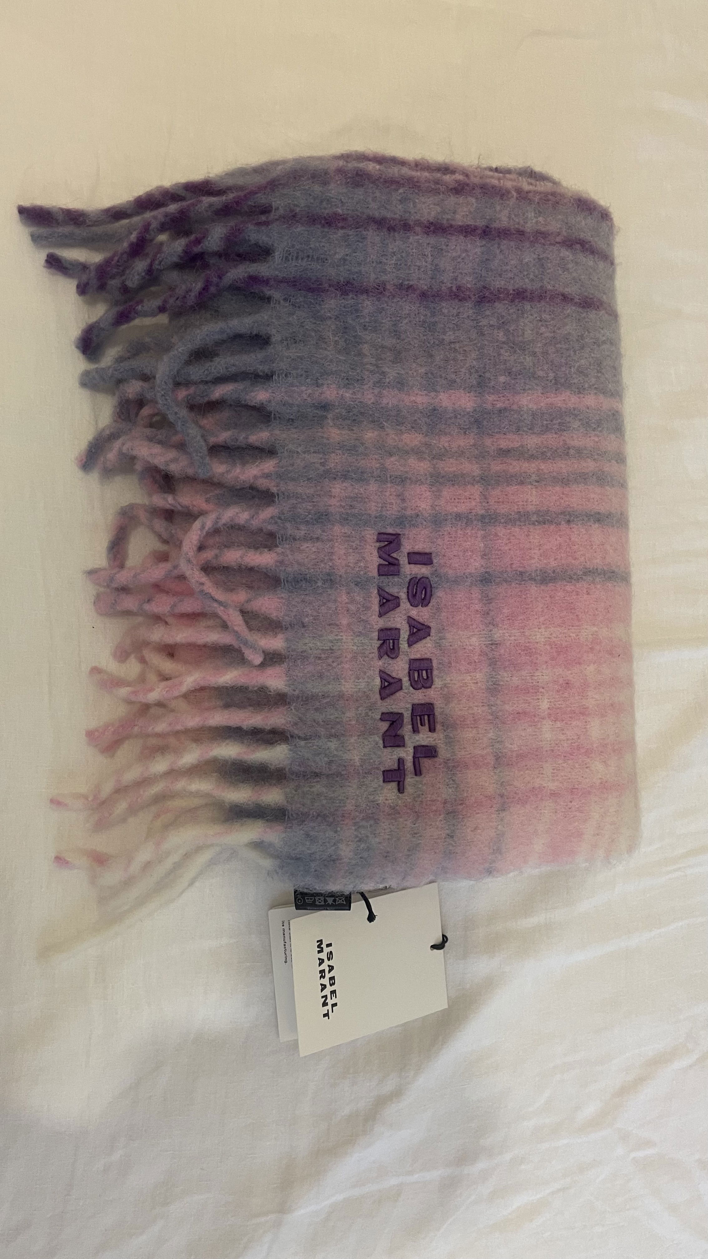 Firny Scarf Colour: Lilac-Ecru Size: 37 x 214 cm / 14.6 x 84.3 in. Checkered alpaca scarf (80% alpaca, 20% polyamide) Contrasting embroidered "Isabel Marant" logo Fringed edges