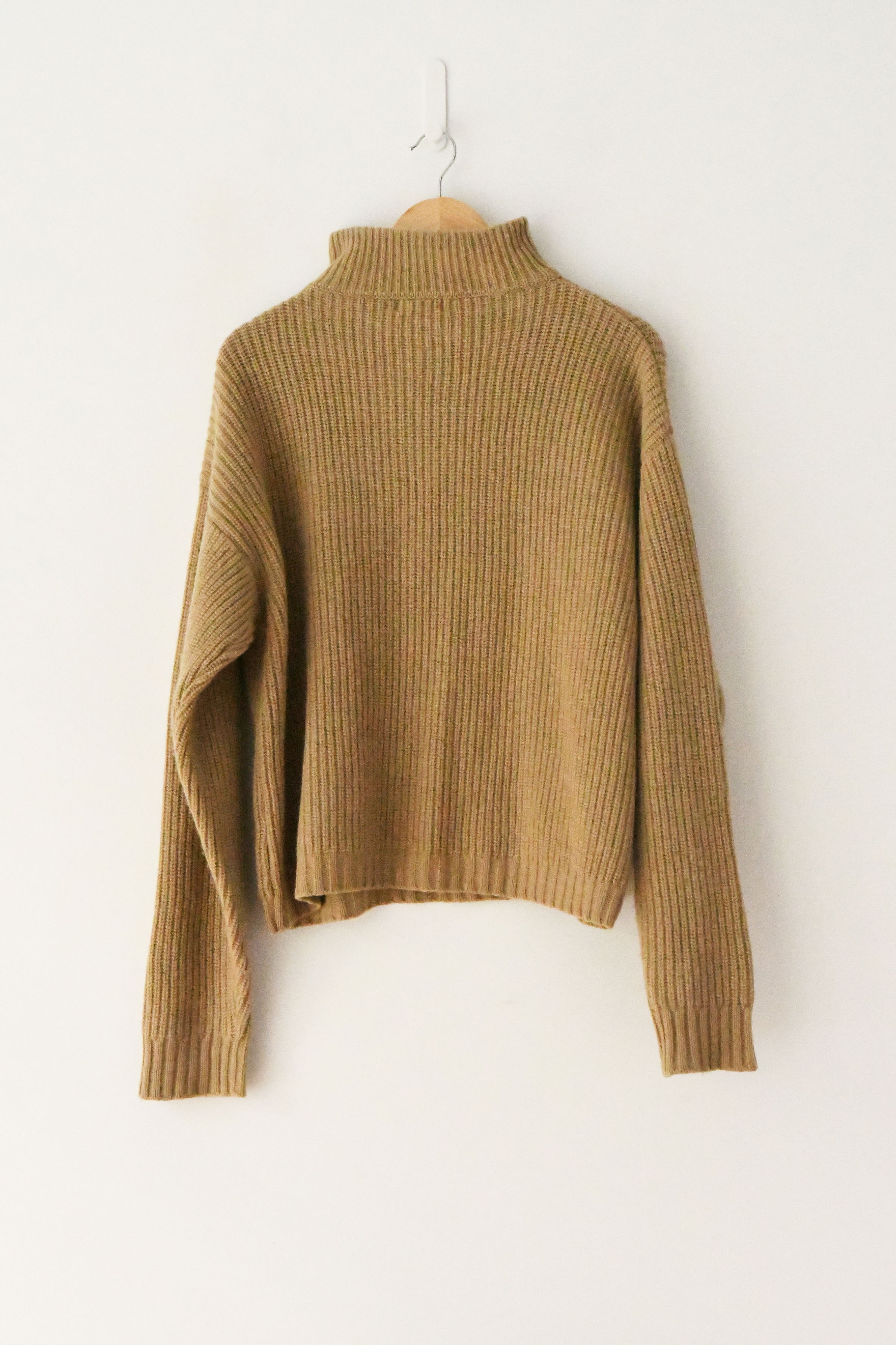 Ribbed zip neck merino wool jumper with cuffed hem. Dry Clean Only.