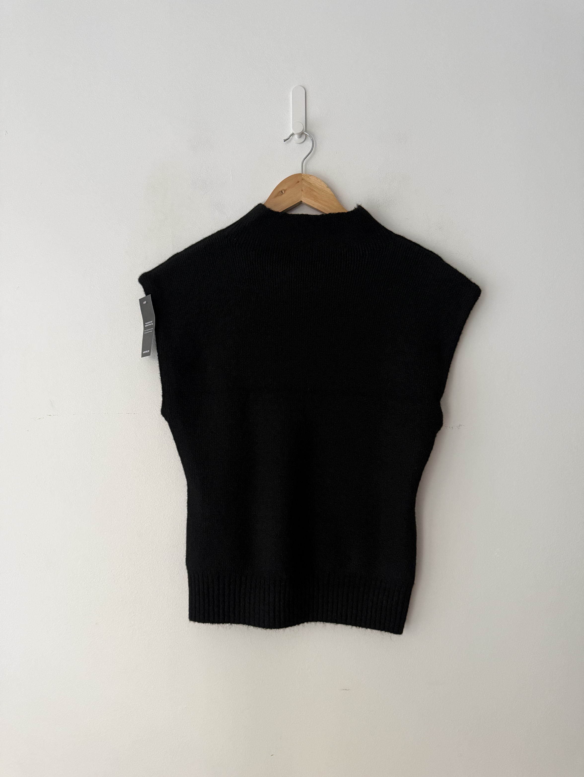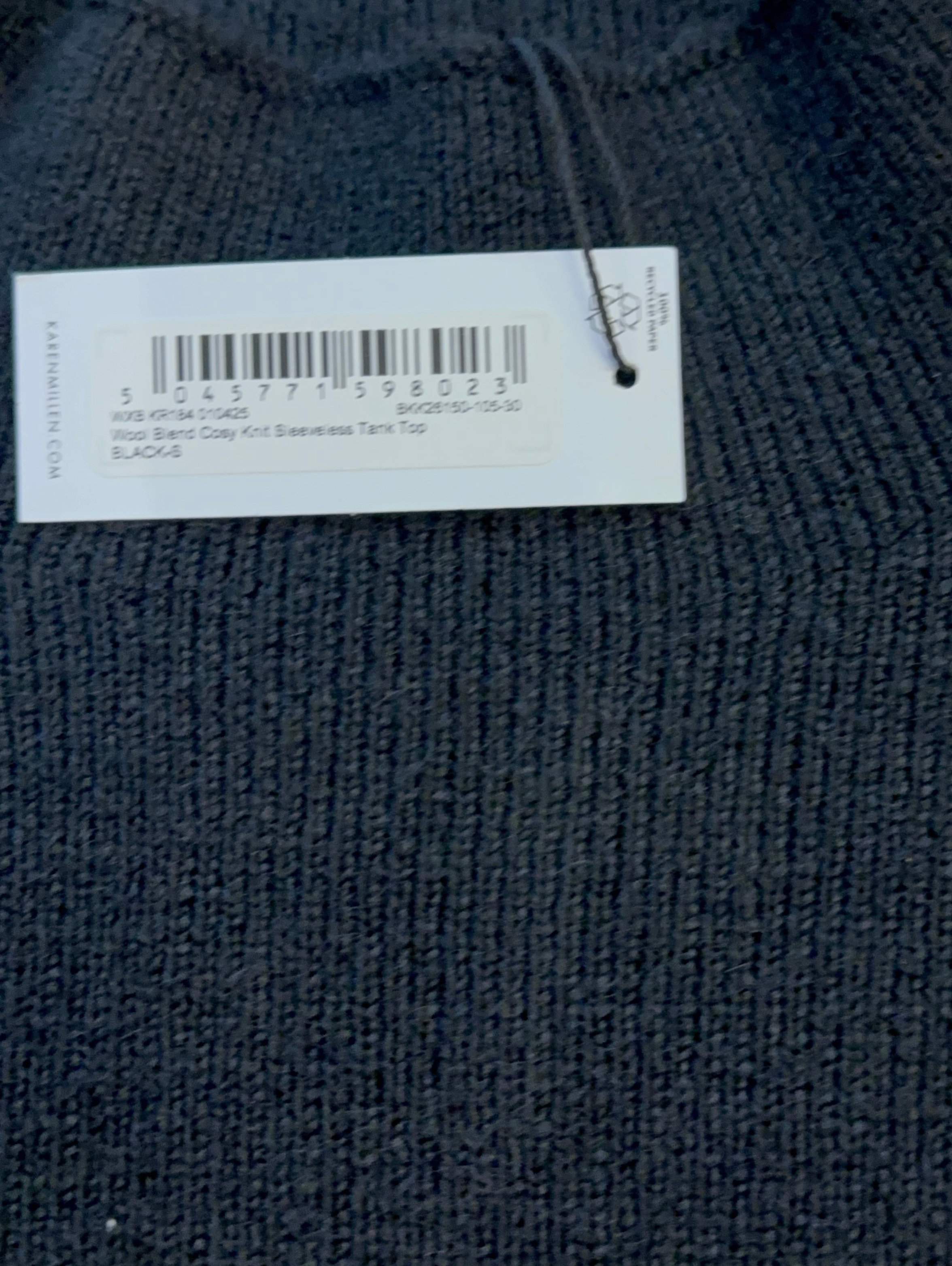 This Karen Millen sleeveless tank top embodies refined casual elegance with its high neck and clean silhouette. The cosy knit construction creates a flattering shape that works beautifully tucked into high-waisted denim, as styled in the image, or paired with tailored trousers.