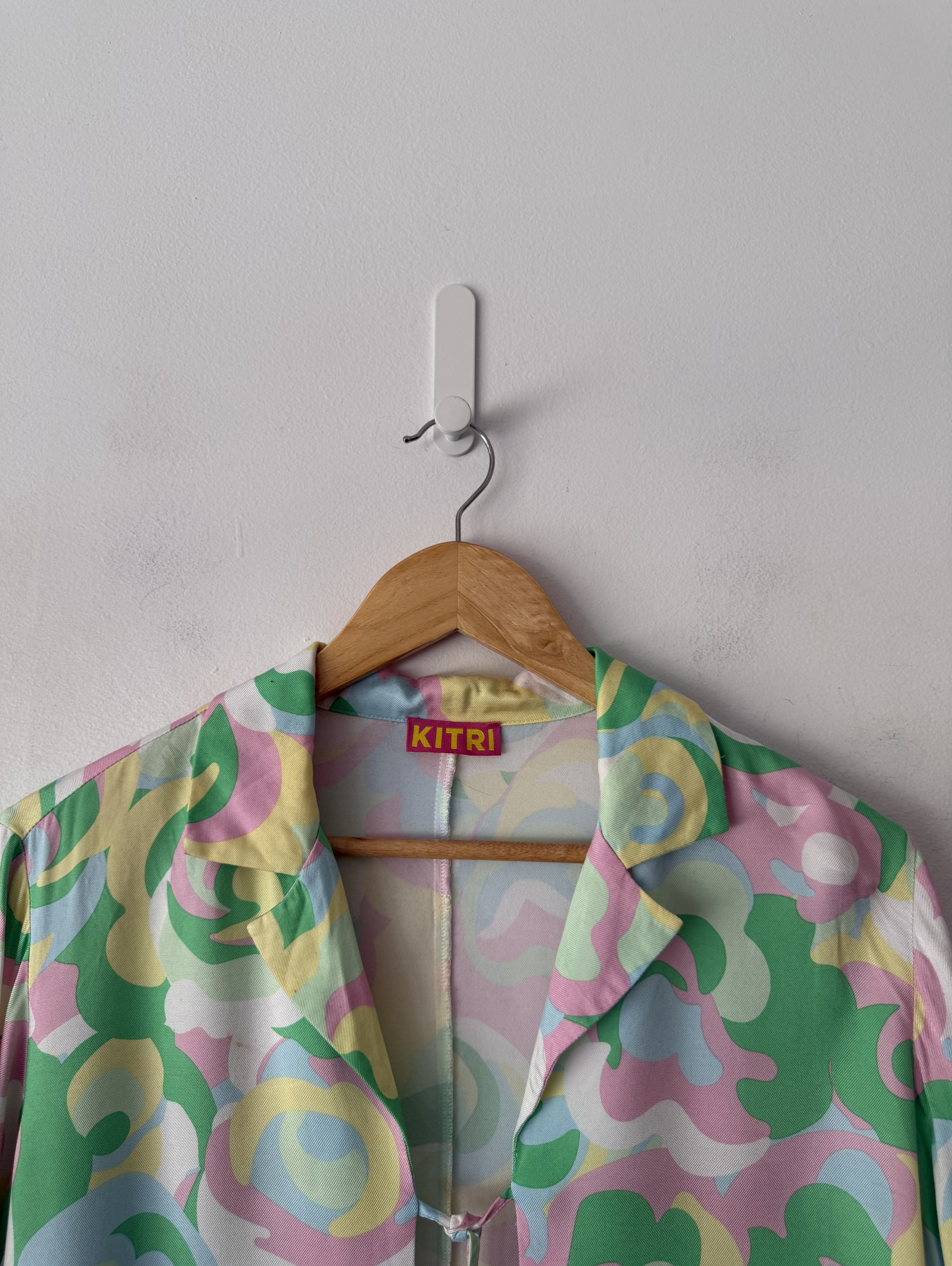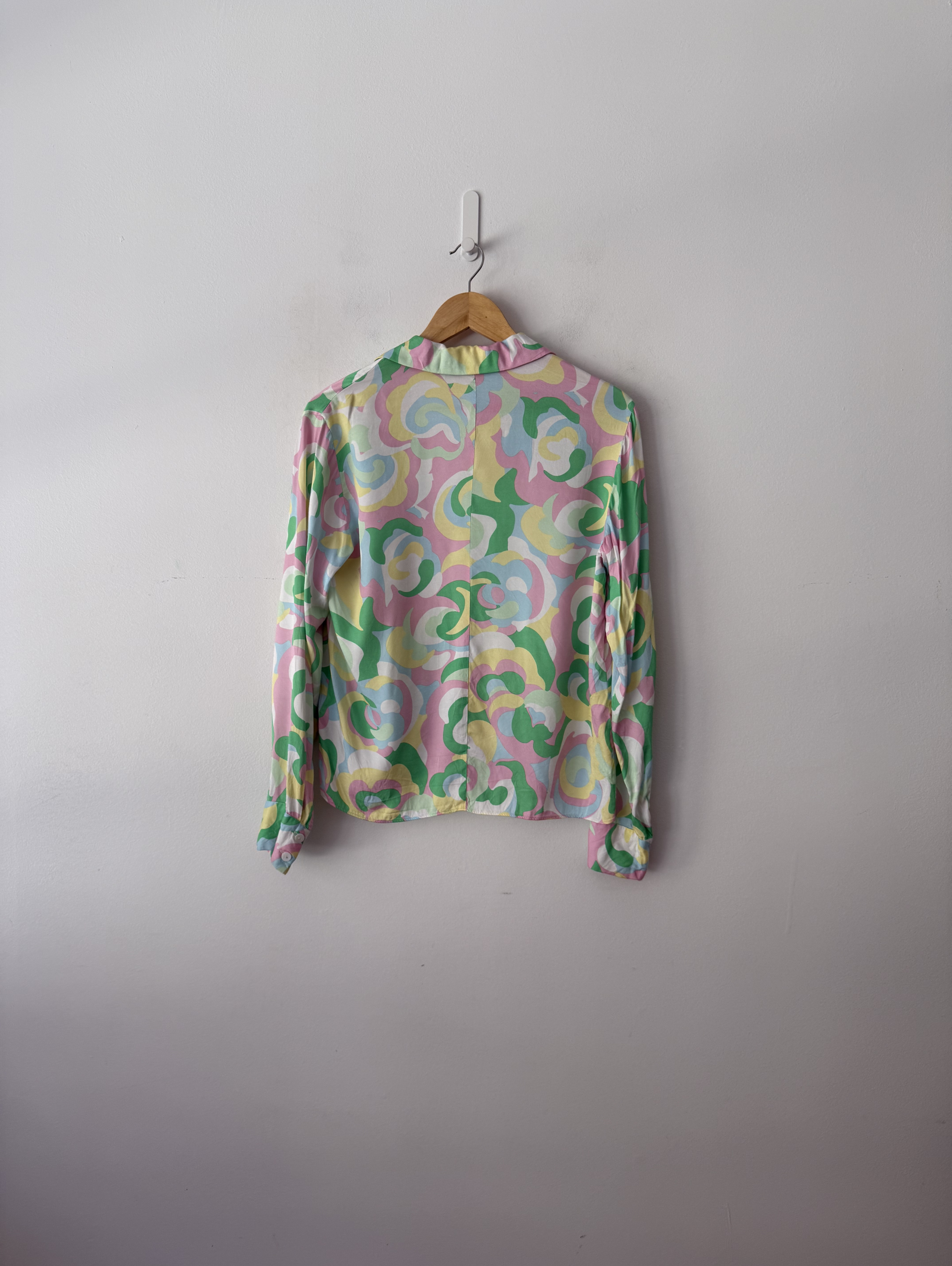 Long sleeve tie-front shirt with floral swirl print. ( See my other items for matching skirt)