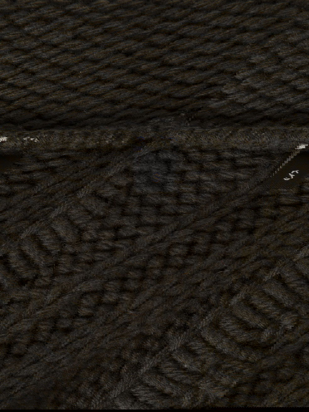 Green knitted wool cardigan with fabric panel sleeves and pockets. In excellent, pre-loved condition. Composition: 71% Wool, 17% Cotton, 11% Polyamide, 1% Textile residue. Measurements: Shoulder: 37cm, Bust: 45cm, Sleeve Length: 61cm, Waist: 45cm, Length: 24cm.