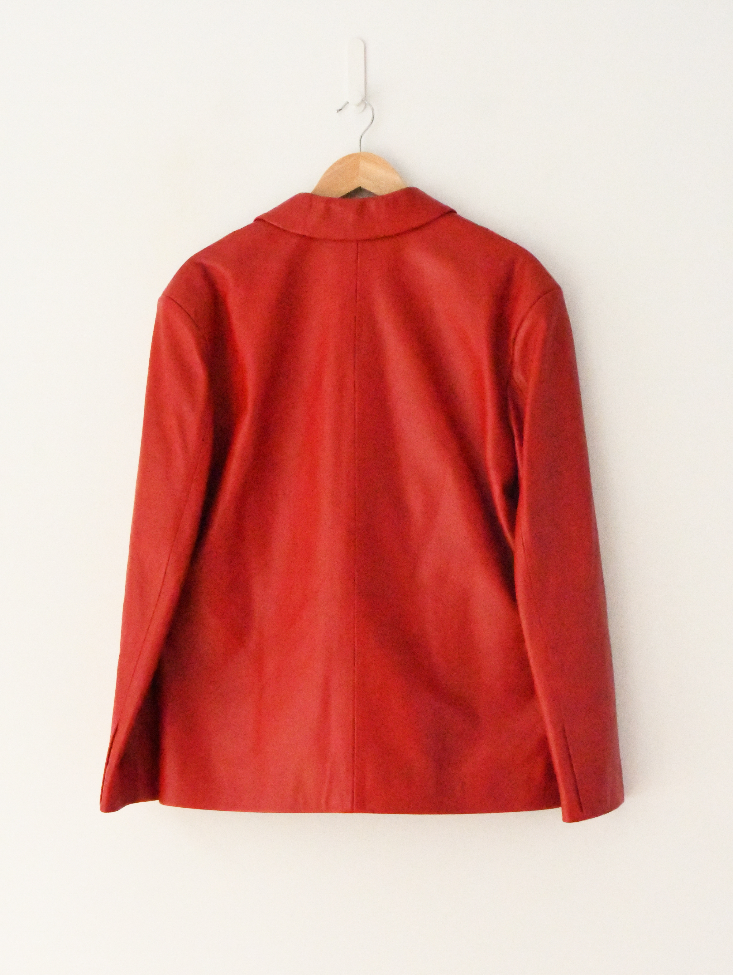 Super Stylish Red Leather Blazer with two button fastening and patch pockets. Dry Clean only.