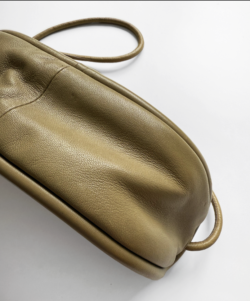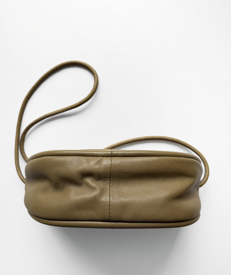 Khaki green leather cross body bag in excellent, pre-worn condition.