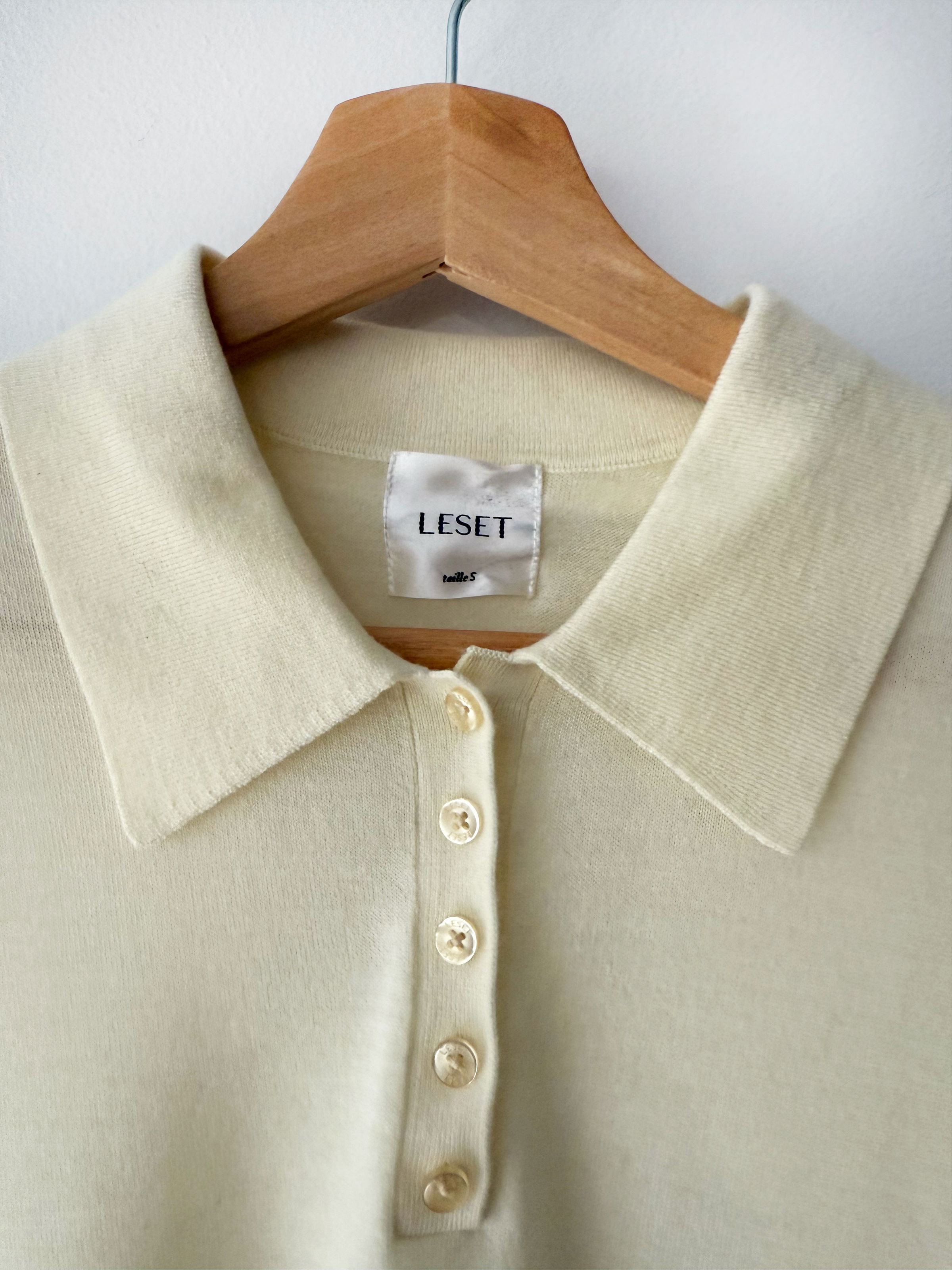 Cream wool polo shirt in excellent, pre-worn condition. Composition: 100% Extrafine Merino Wool. Dry clean only. RRP £325.