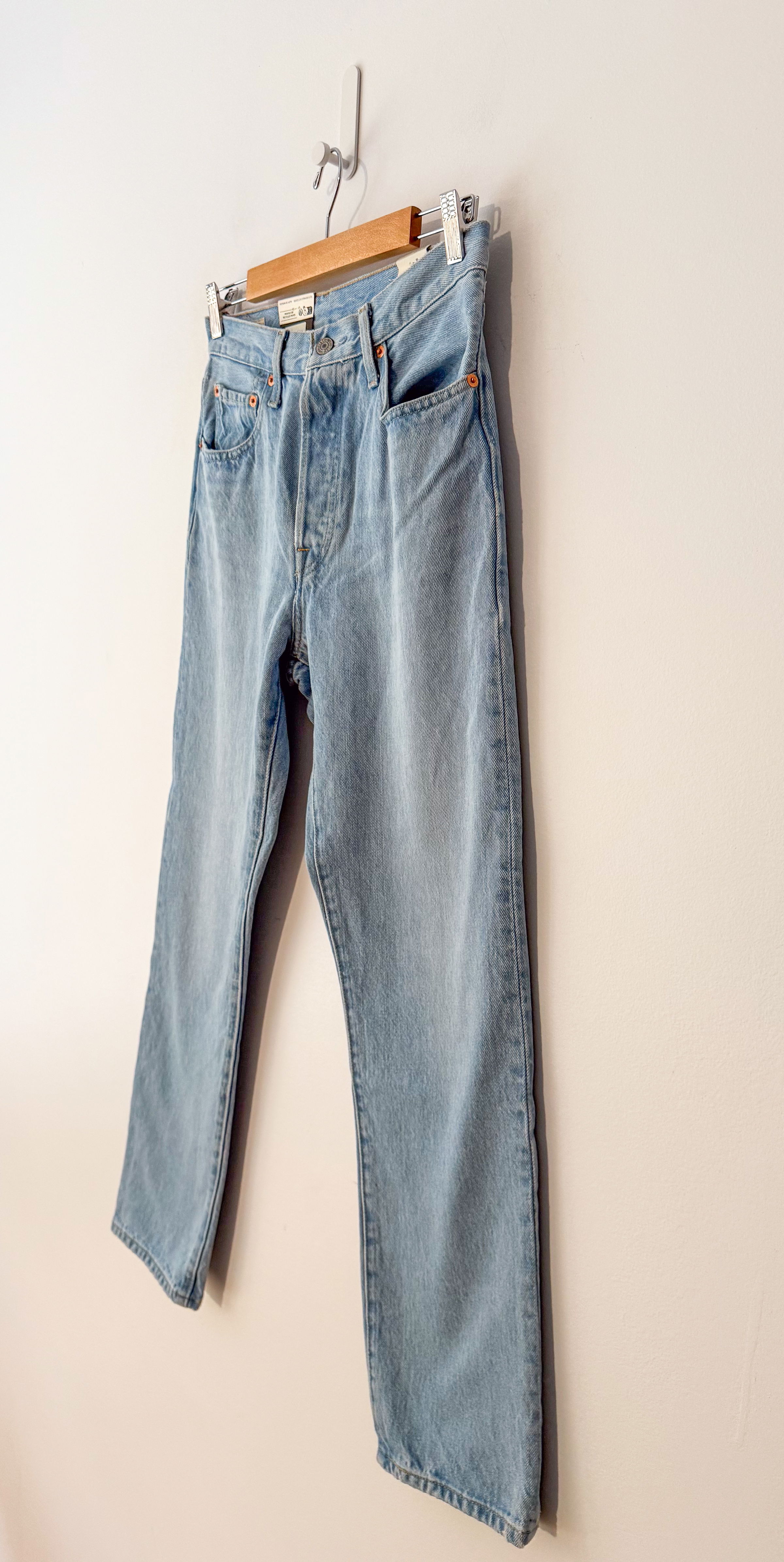 Fitted through your hip and thigh. Straight, cropped leg High rise. 100% Cotton Denim. Non-stretch. Button fly. 5-pocket styling