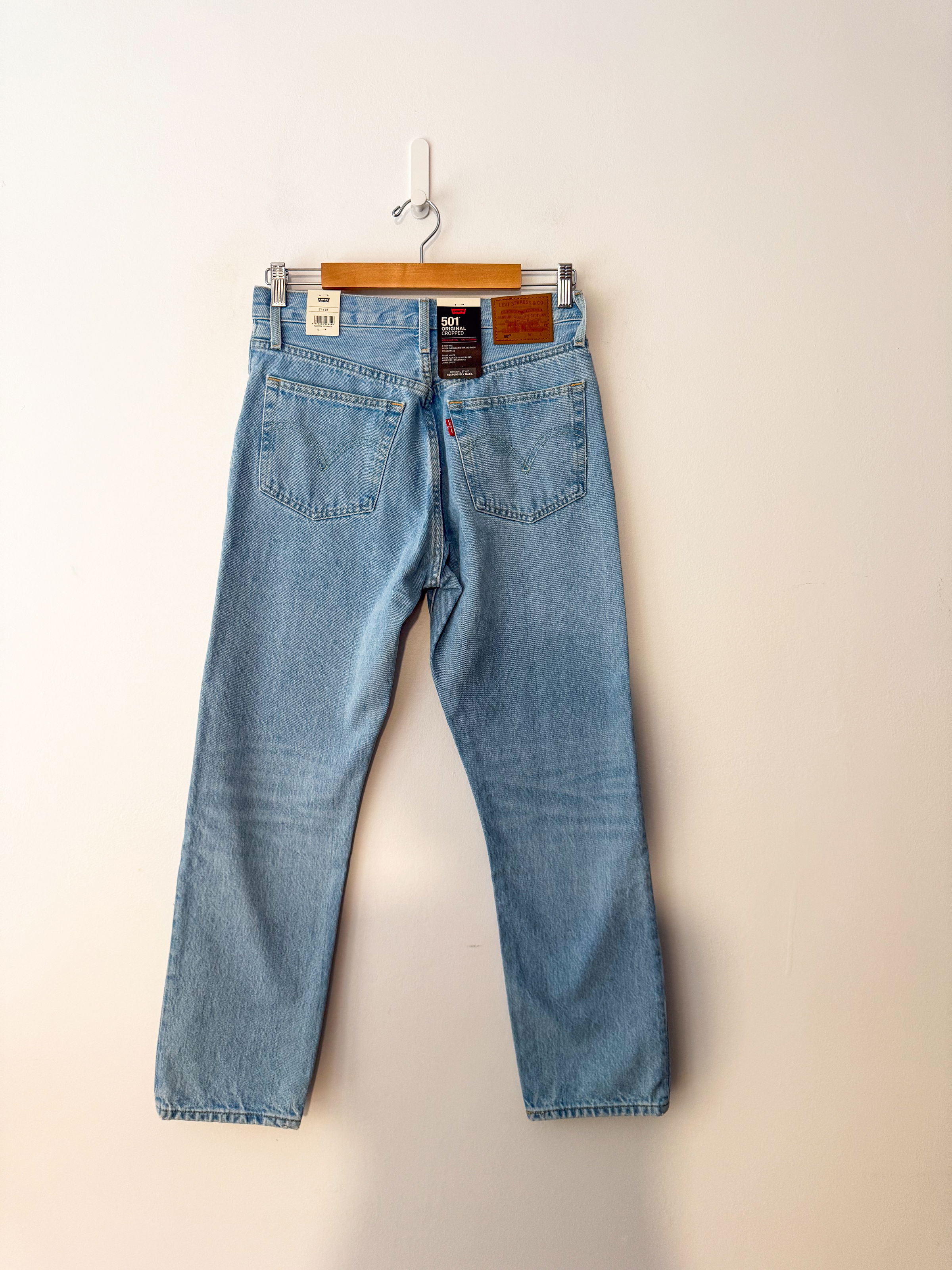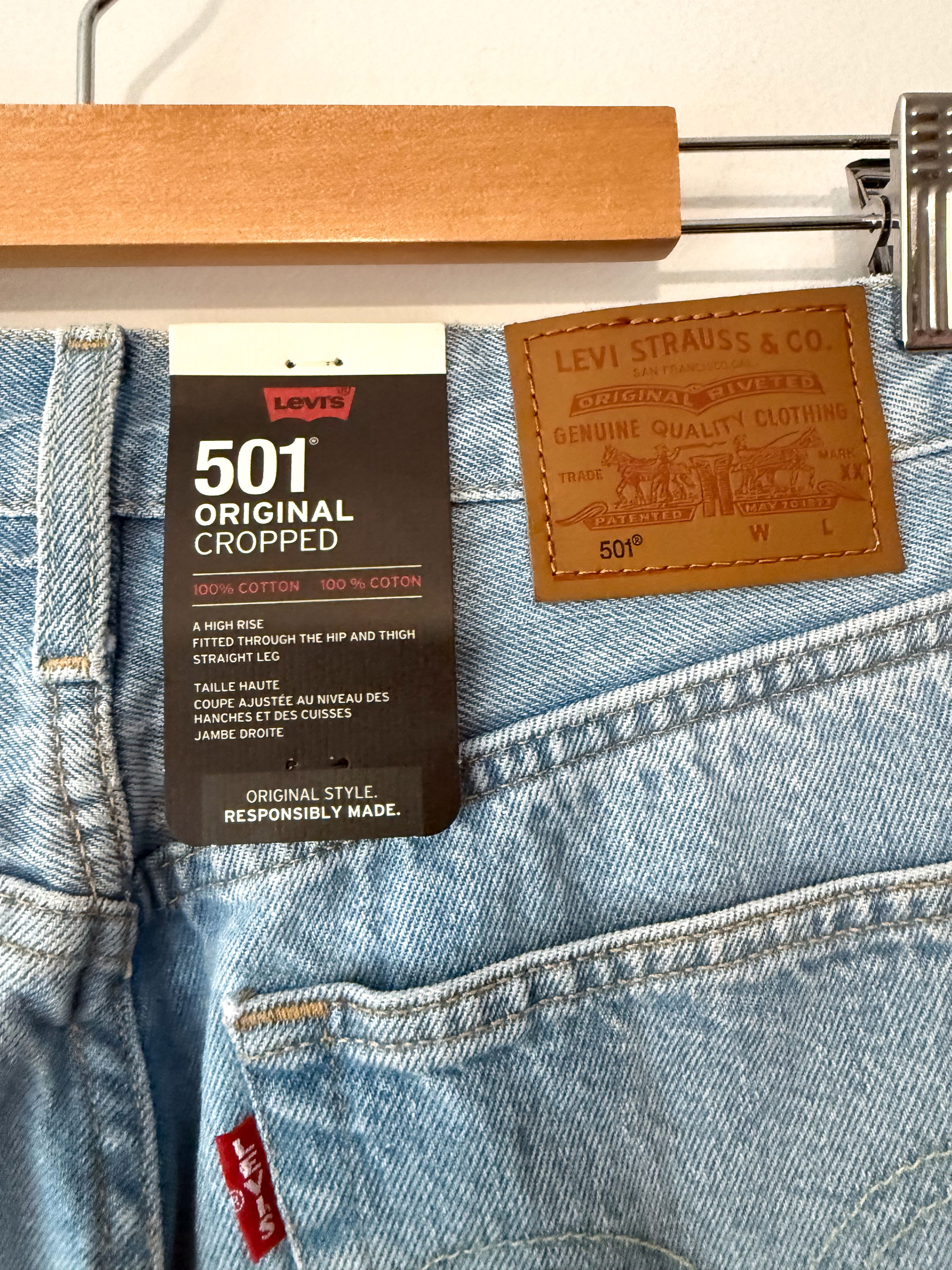Close your eyes. Think "jeans." Now open. They were 501® Originals, right? With a classic straight leg and iconic styling, they're literally the blueprint for every pair of modern jeans-burned into the world's collective cortex ever since Levi Strauss (the man himself!) introduced them in 1873. To this day they've never gone out of style. And they never will. Plus, this style features a flattering cropped silhouette. The original blue jeans with a cropped cut Our signature straight fit A blank canvas for customization and self-expression This lightweight garment is made from supersoft, ultra-comfortable fabric. Warning: Spontaneous napping may occur.